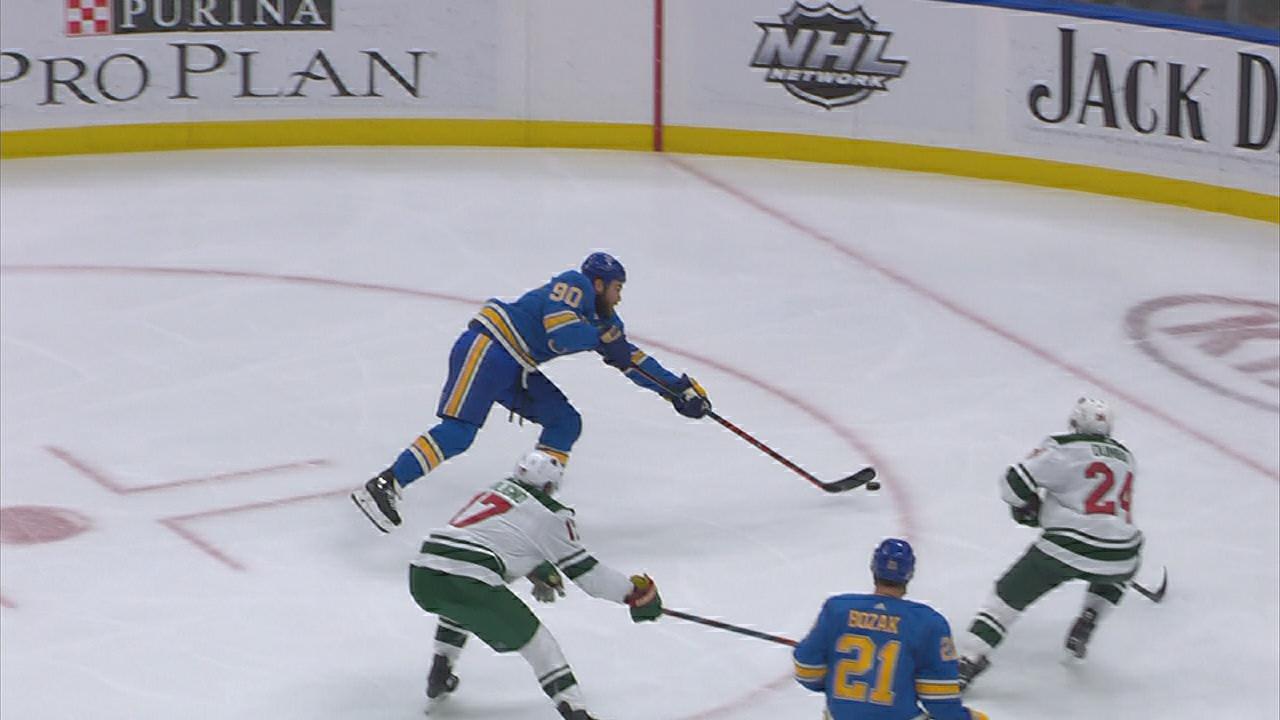 Ryan O'Reilly takes Vladimir Tarasenko's cross-ice pass and wrists it past Devan Dubnyk on the power play, bringing the Blues within one
