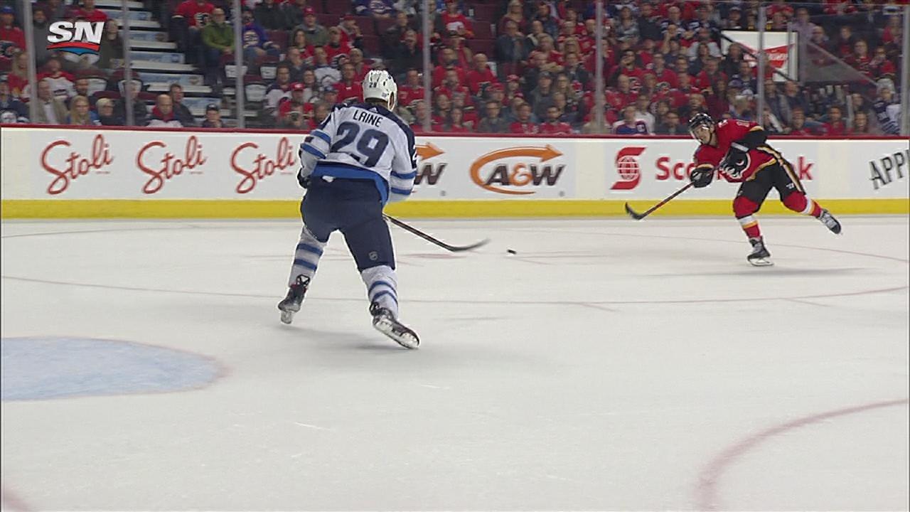Derek Ryan snags Johnny Gaudreau's feed on a give-and-go and guides the puck into the empty net, putting the Flames up 6-3 late in the 3rd