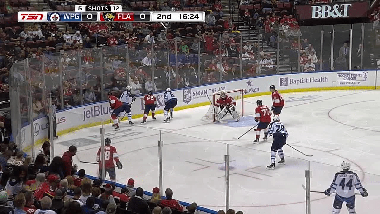 Mark Schiefele makes a nice cross-ice feed to Josh Morrissey, who rips it into the twine to give Jets a 1-0 lead in the 2nd period
