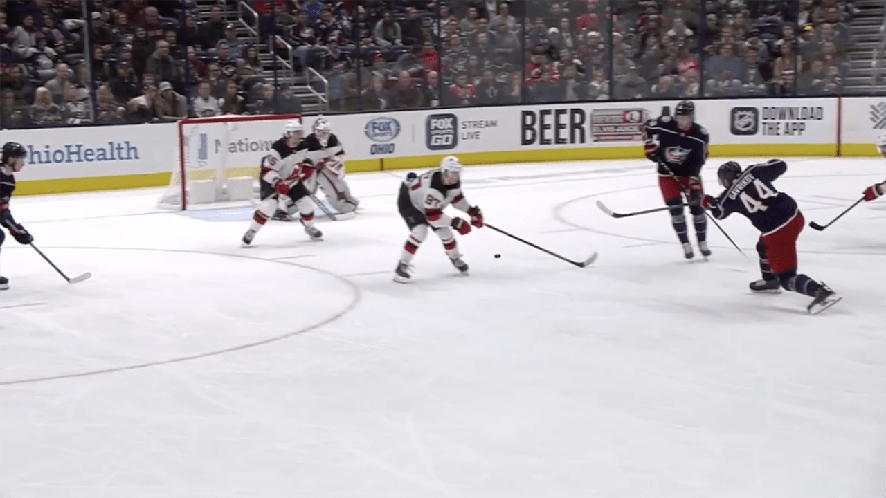 Vladislav Gavrikov carries into the high slot and fires a wrister that beats Gilles Senn to extend the Blue Jackets' lead to 3-1 in the 2nd