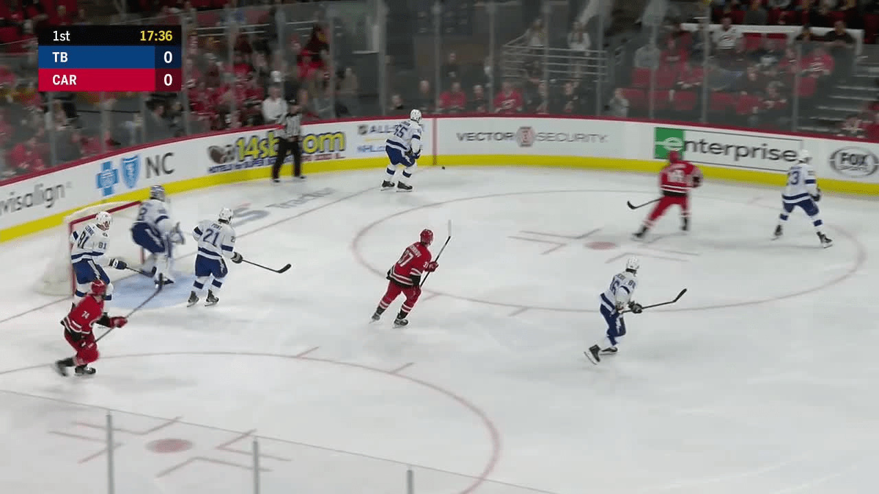 Mitchell Stephens gets a pass from Carter Verhaeghe and sends the puck through Petr Mrazek's five-hole to start the scoring in the 1st period