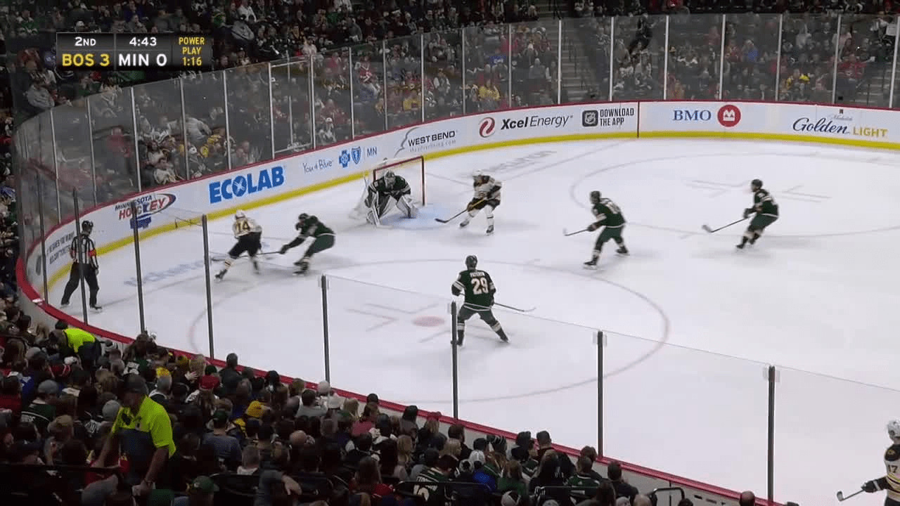 David Pastrnak tied his career high in goals as he notched his 38th of the season sweeping up the loose puck in front with a wrist shot