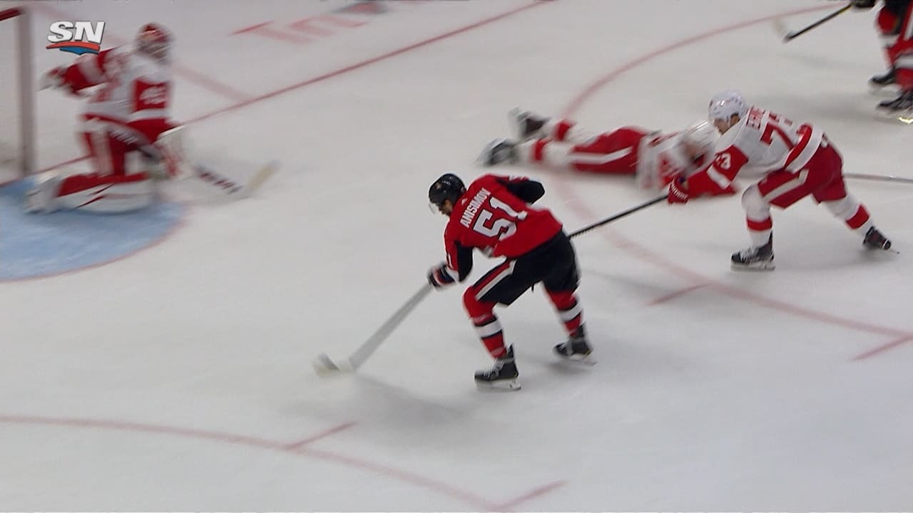 Artem Anisimov receives a pass from Jayce Hawryluk and fires the puck in from the slot for his second goal of the game to make it 3-2 Senators