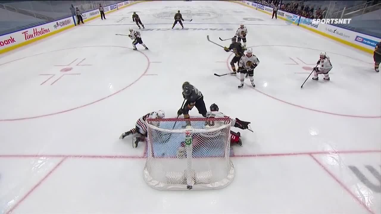 R1, Gm1: William Carrier finds the loose puck sitting inside the crease and jams it into the net to extend the Golden Knights lead in the 2nd