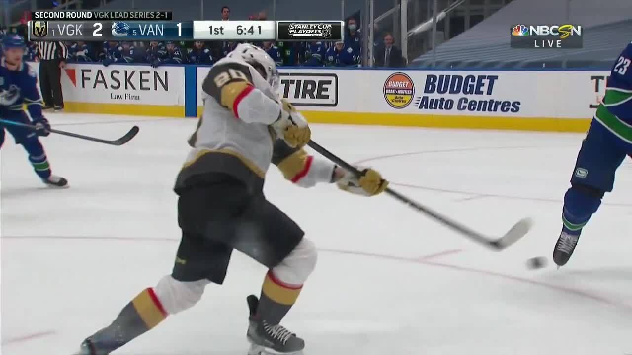 R2, Gm4: Chandler Stephenson takes Shea Theodore's return feed on the odd-man rush and goes top shelf, giving the Golden Knights a 2-1 lead