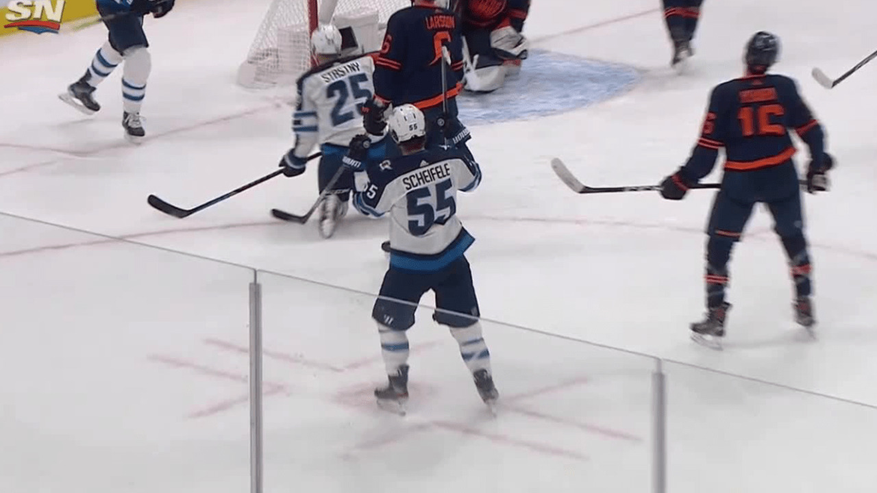 Mark Scheifele fires a wrist shot from the left circle past Mike Smith on the power play to trim the Jets' deficit to 2-1 in the 1st