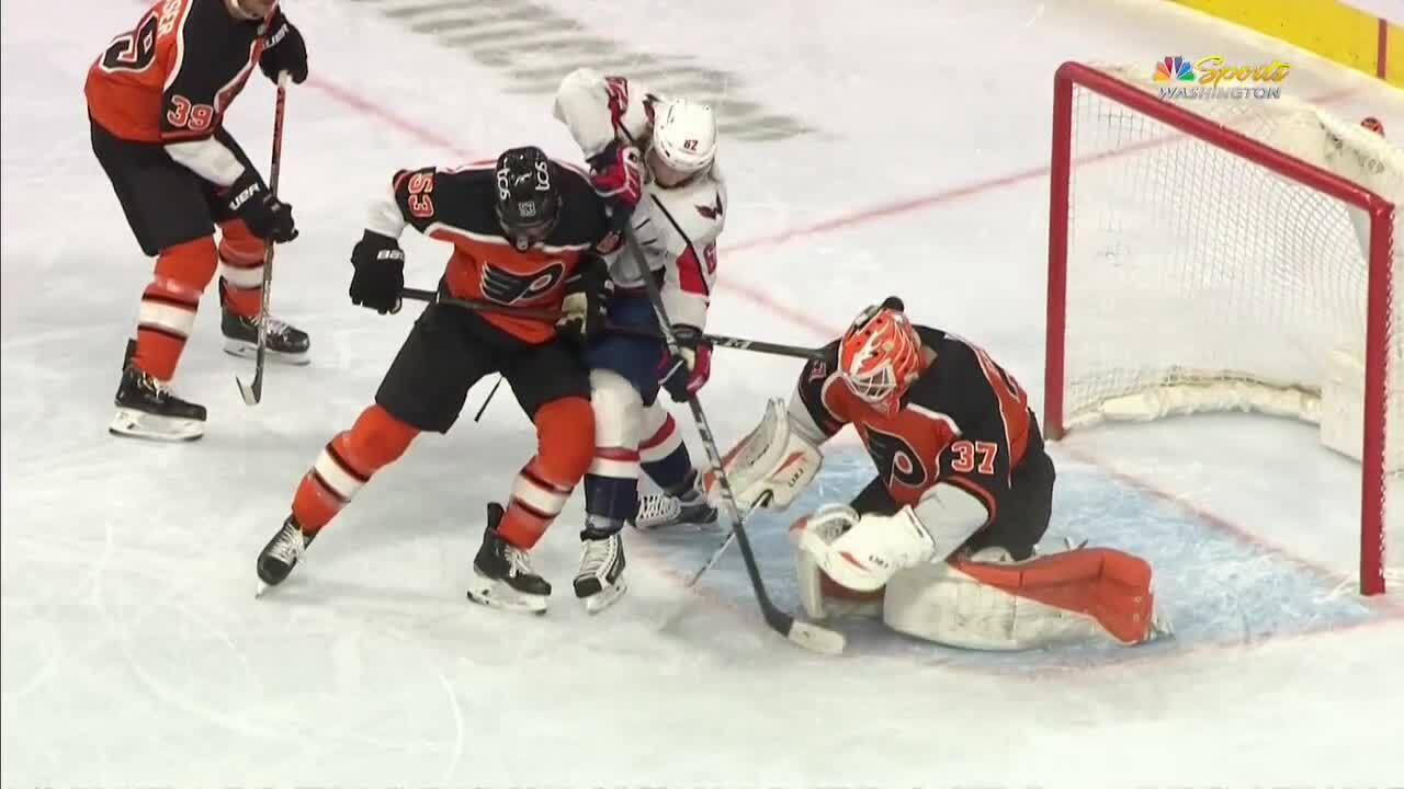 Nick Jensen fires a puck from the point and Carl Hagelin taps the rebound home past Brian Elliott, giving the Capitals a 2-0 lead in the 1st