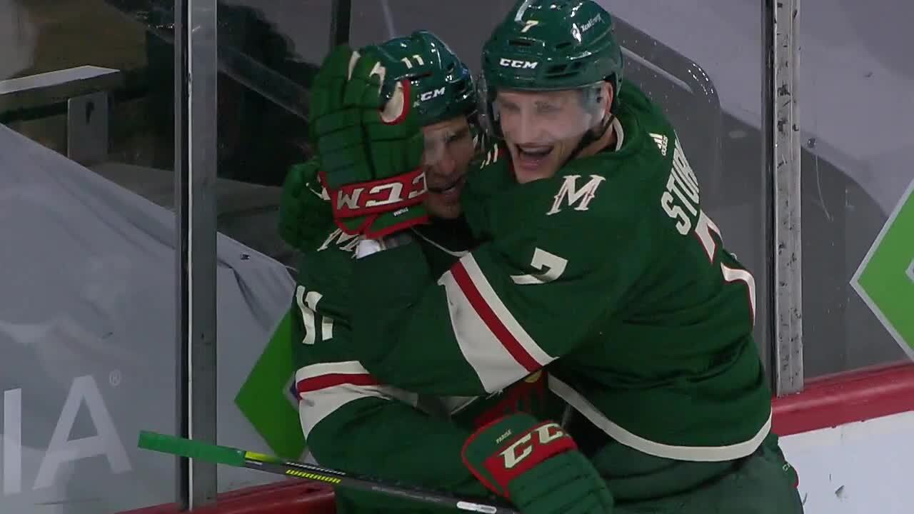 Zach Parise streaks in and puts the puck through the five-hole of Martin Jones for a 3-1 lead in the 1st and his 400th point with the Wild