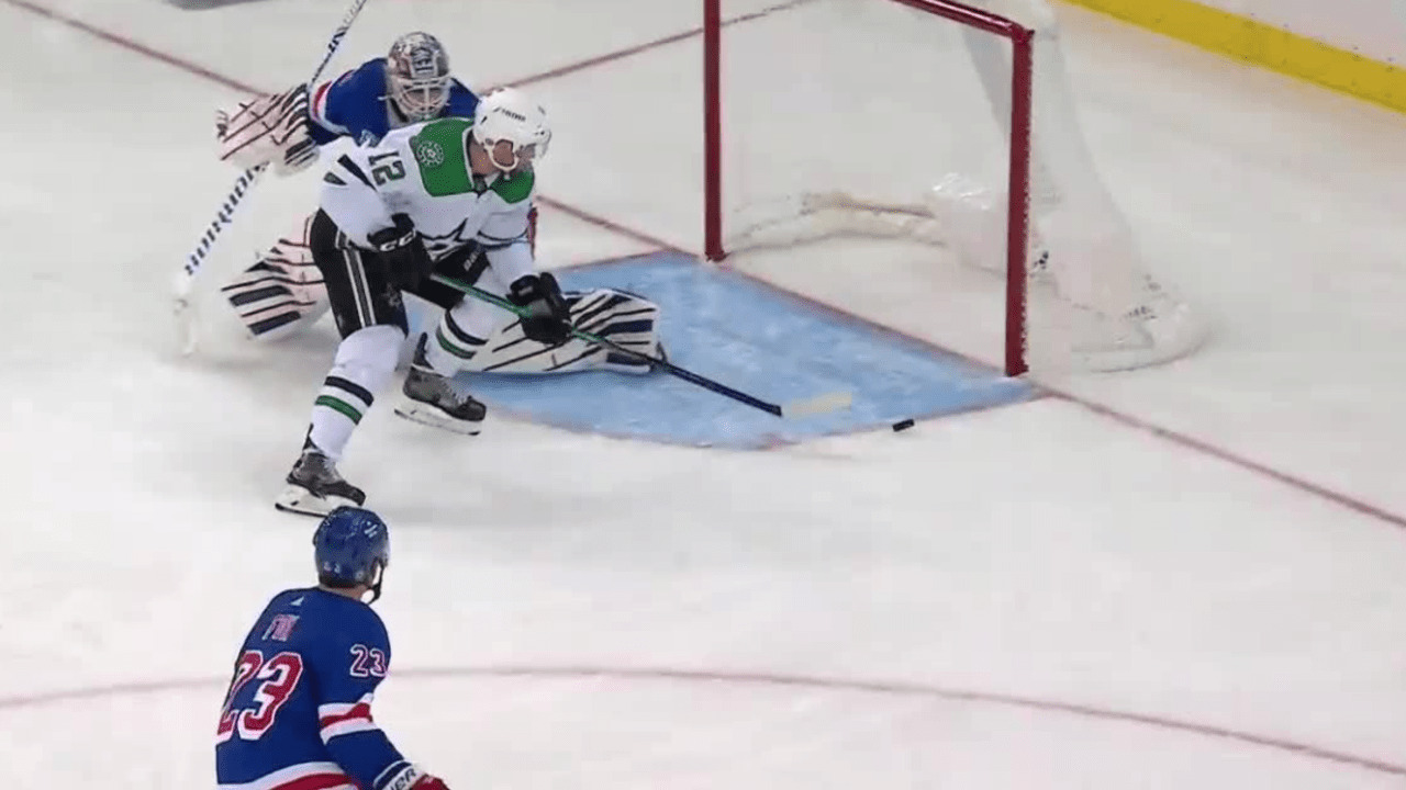 Radek Faksa scoops up the loose puck at the doorstep and slides the puck past Igor Shesterkin to give the Stars a 2-0 lead in the 2nd