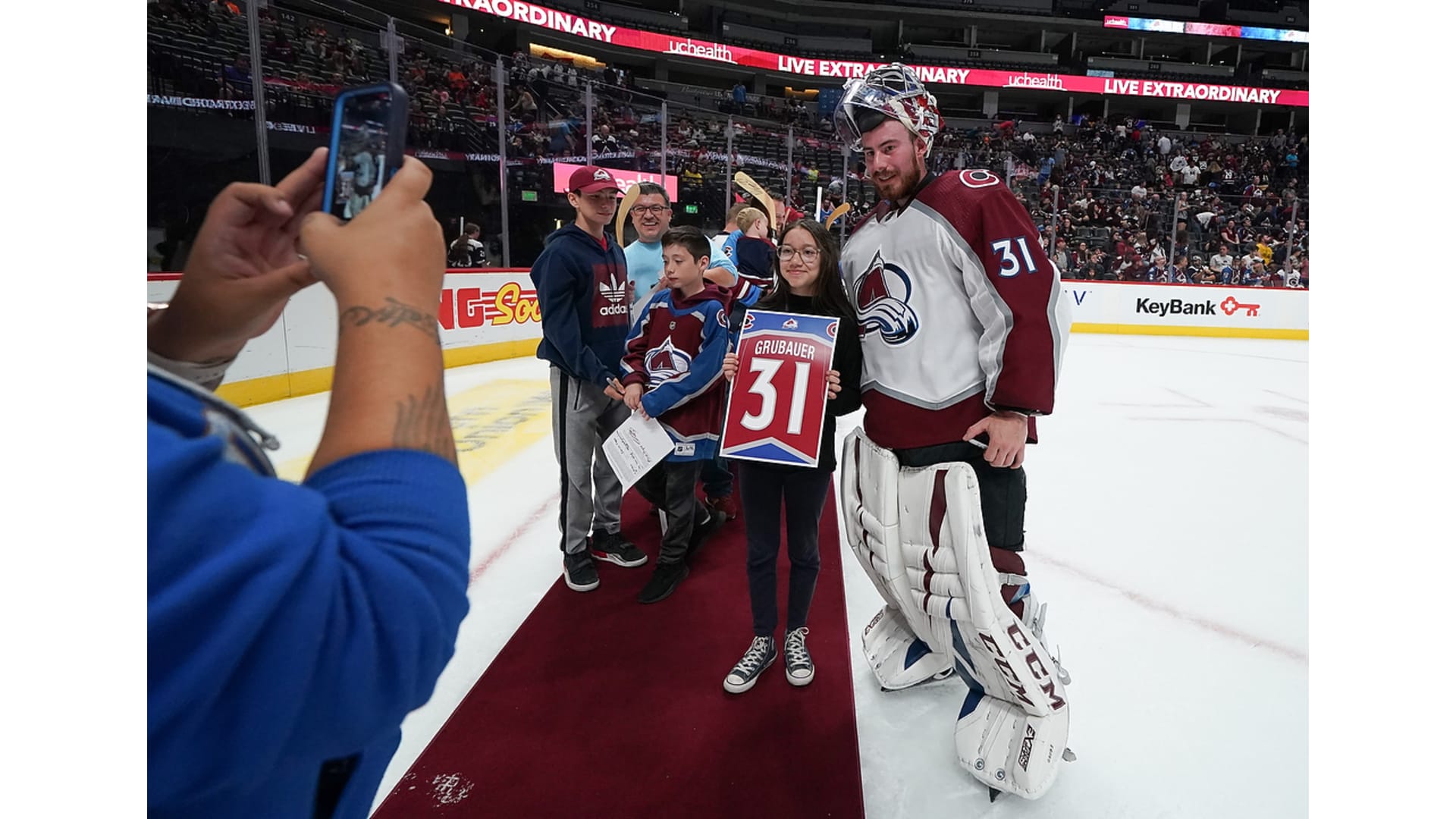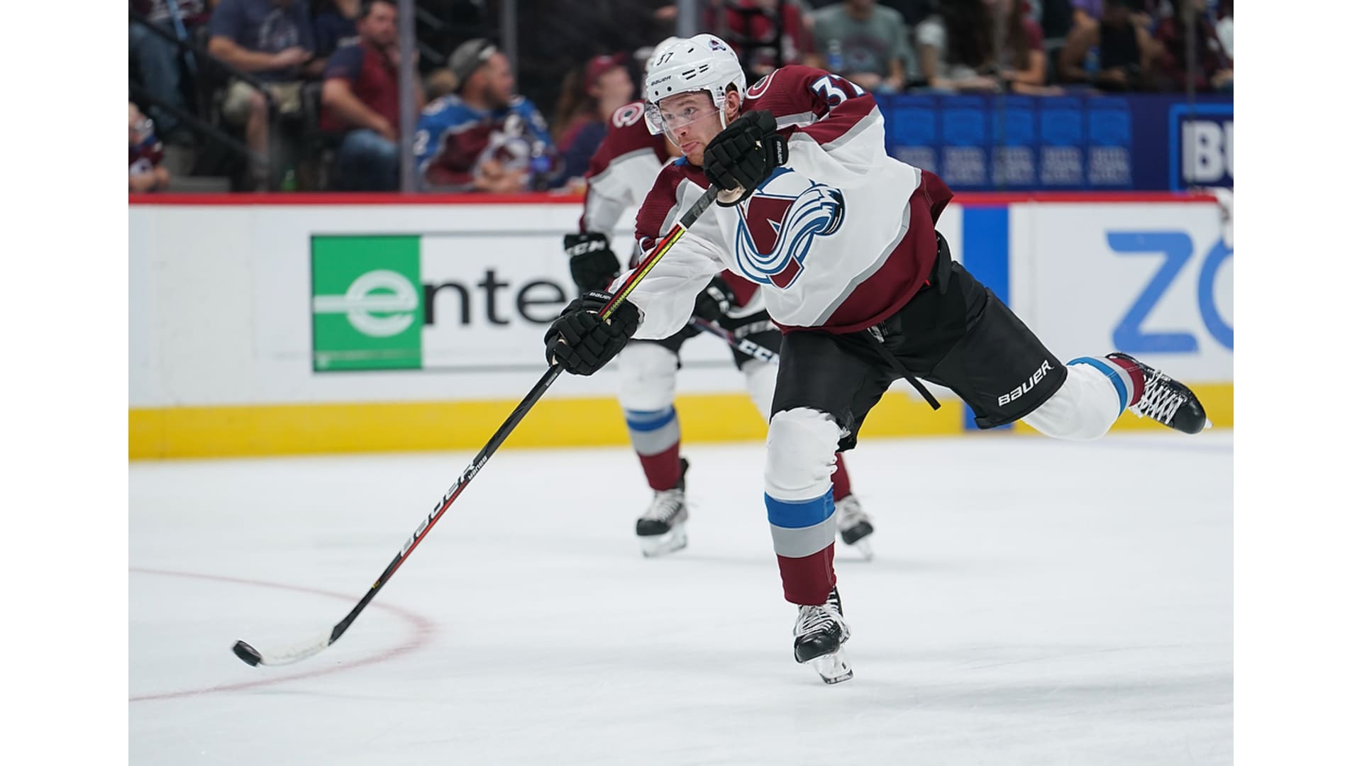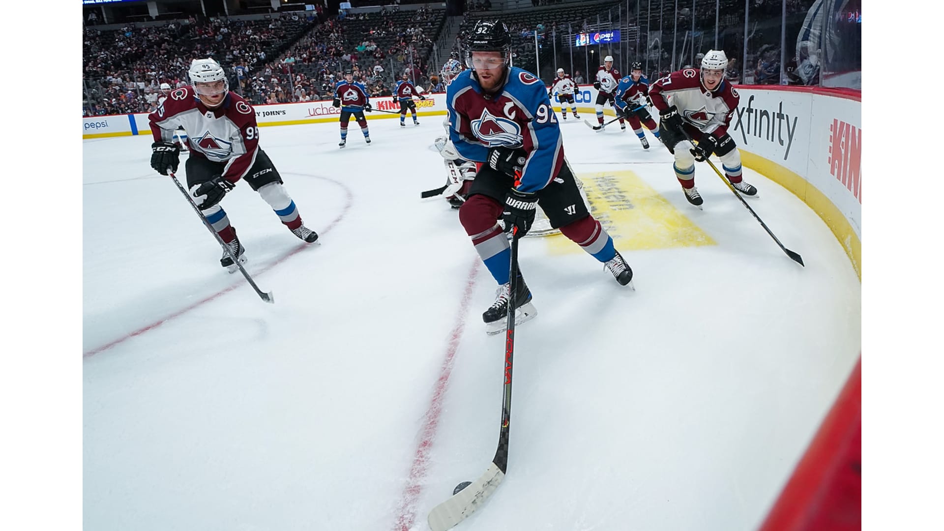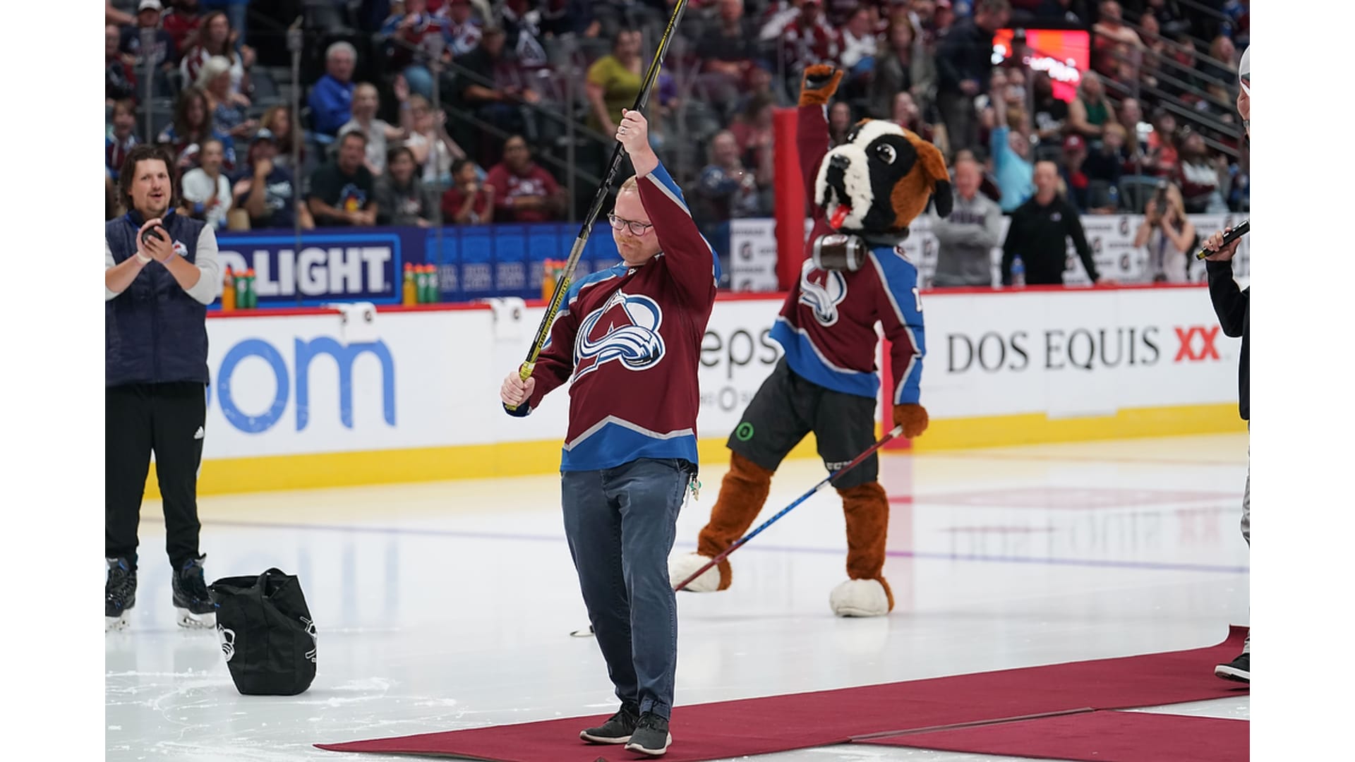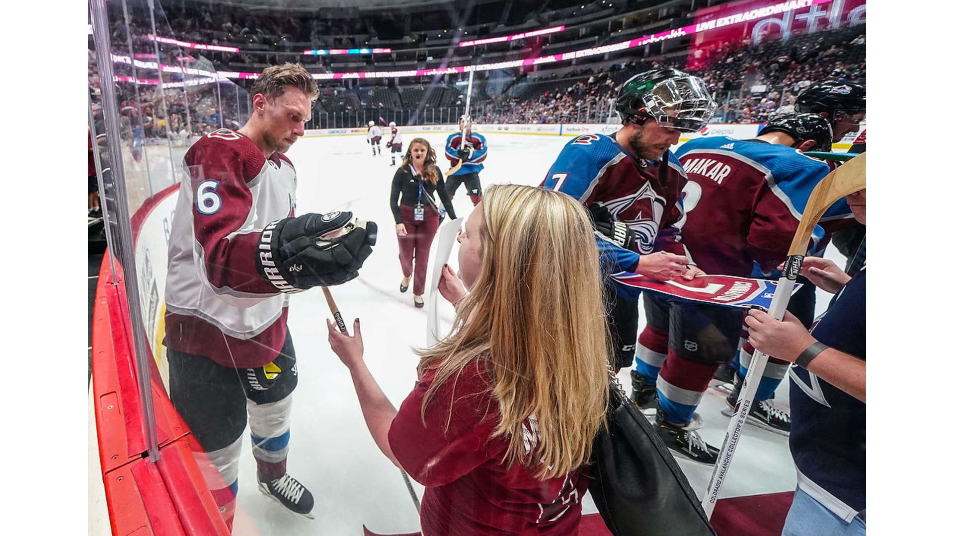 The Colorado Avalanche held its second annual Fan Fest on Thursday, Sept. 26, 2019, at Pepsi Center. This year's event featured pictures with team alumni, a Q&A session with head coach Jared Bednar, a Shoot For Your Seats contest, a full-team practice and a player's stick giveaway at the end.