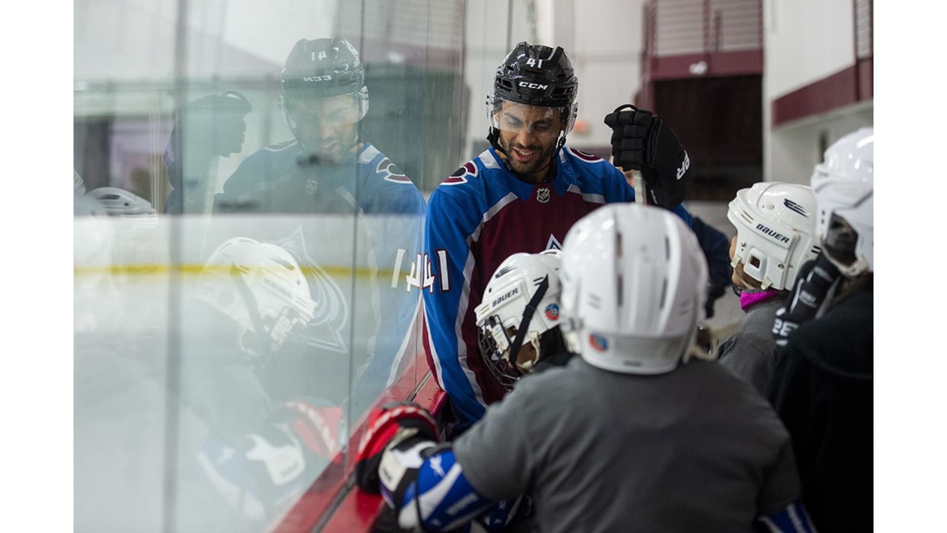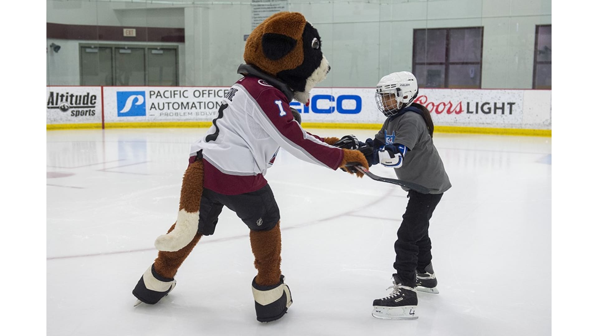Students from Playworks joined the Colorado Avalanche's Pierre-Edouard Bellemare at the Avalanche practice facility in Centennial on Friday, Nov. 8, 2019, for 2019 Break the Ice. The 50 kids skated with Bellemare and mascot Bernie and learned some basic hockey skills.