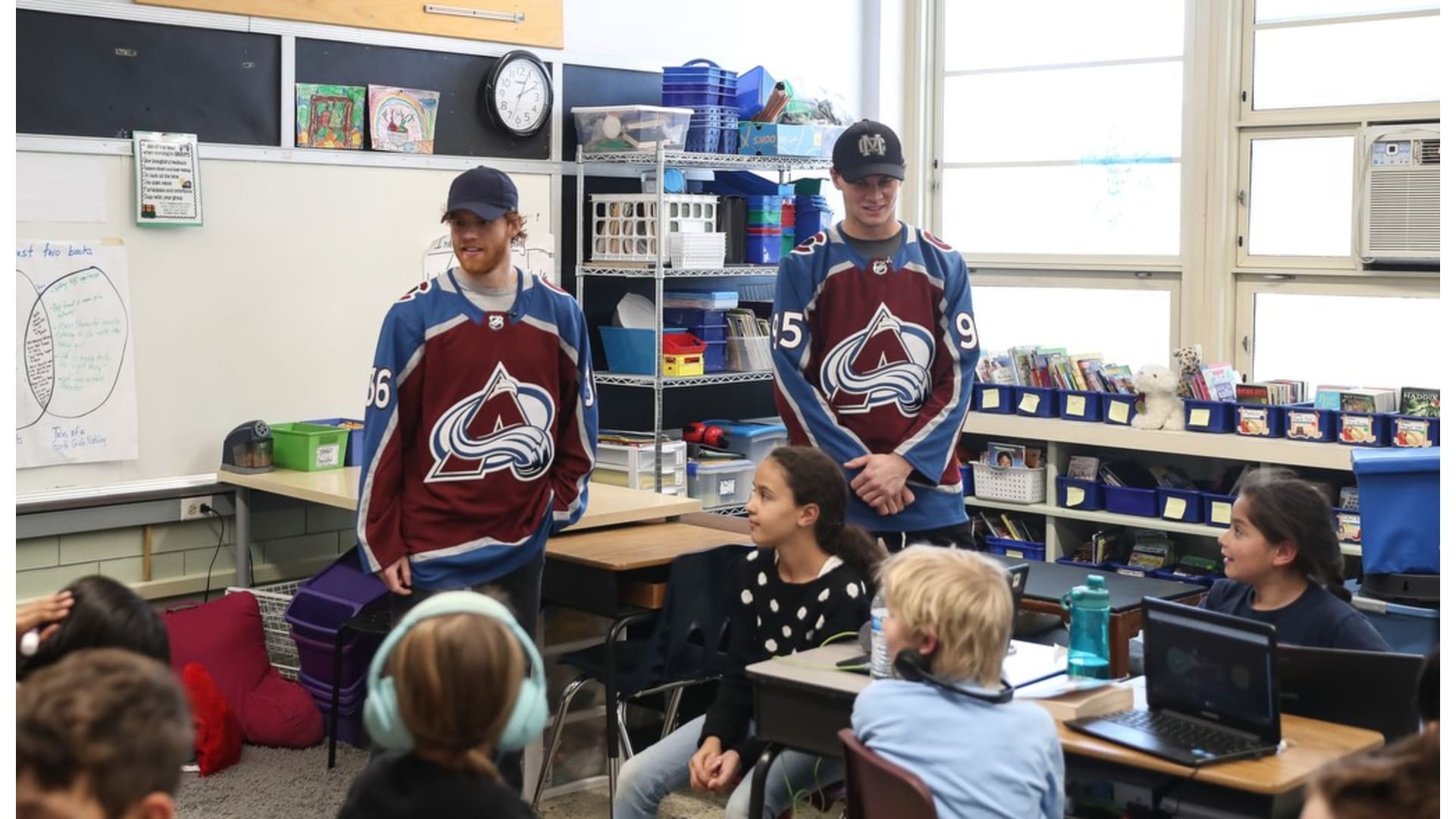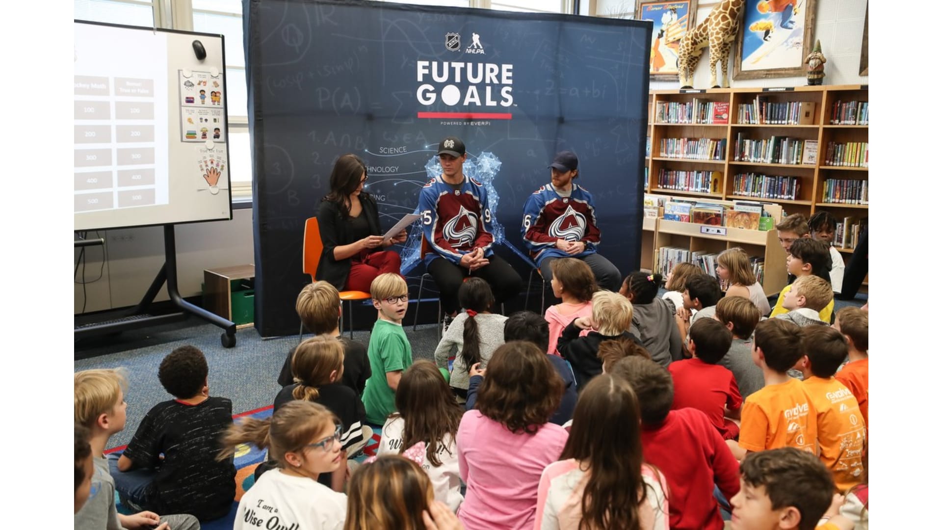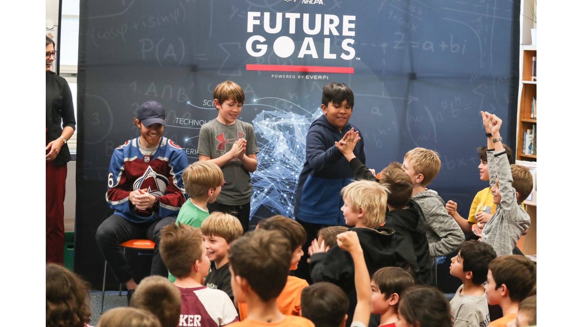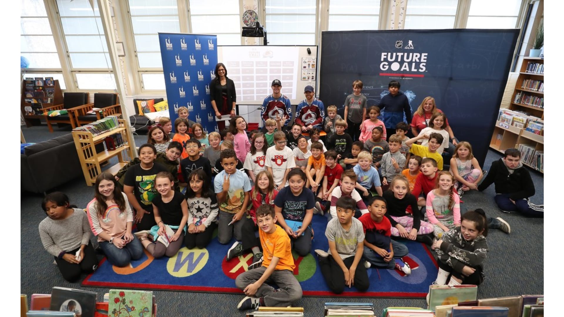 Students from University Park Elementary School participated in the Future Goals workshop with the Colorado Avalanche's Andre Burakovsky, T.J. Tynan, and in-arena reporter Rachel Richlinski. The students learned about STEM concepts through the hockey-based education program on Friday, Nov. 8, 2019.