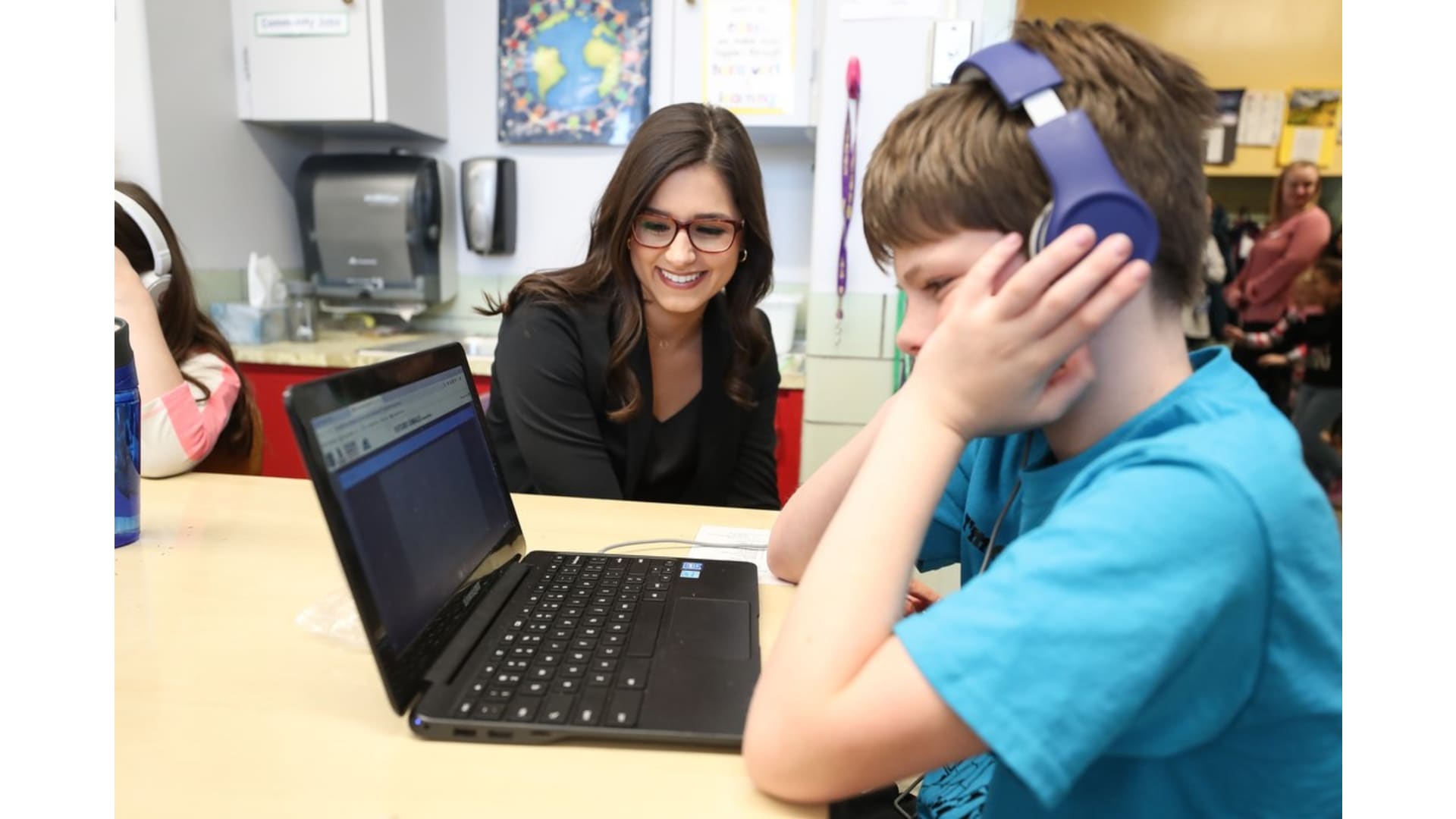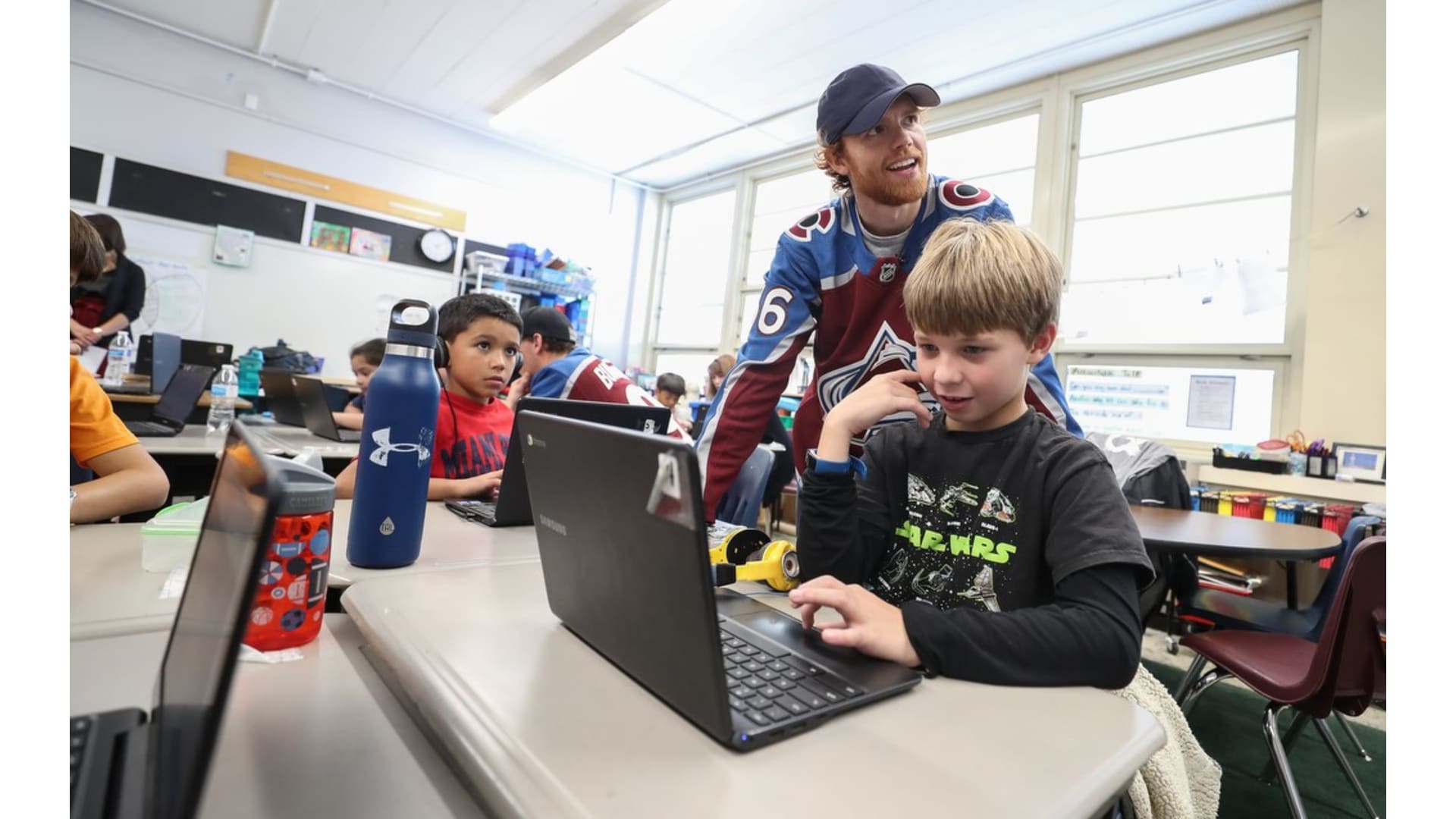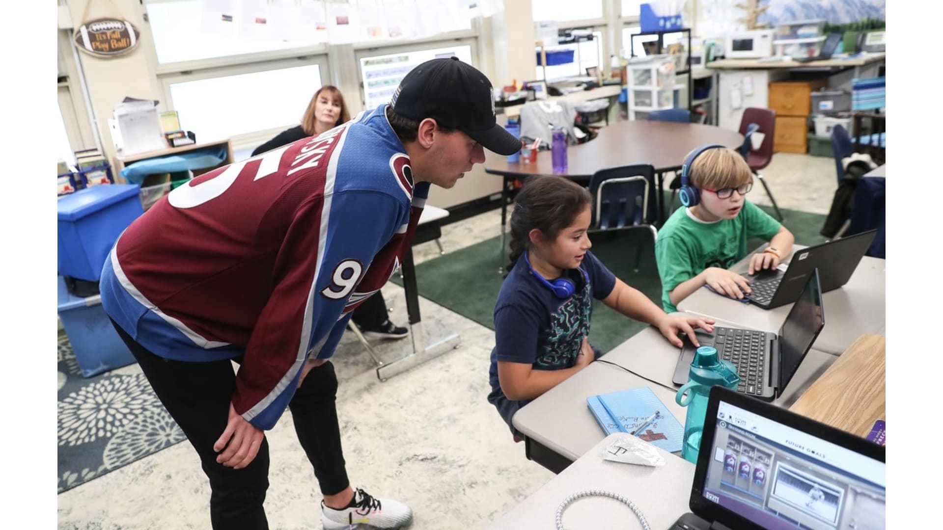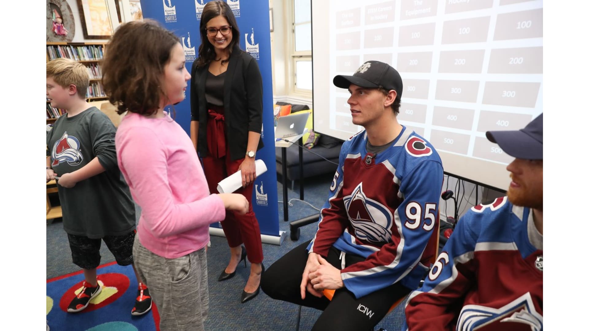 Students from University Park Elementary School participated in the Future Goals workshop with the Colorado Avalanche's Andre Burakovsky, T.J. Tynan, and in-arena reporter Rachel Richlinski. The students learned about STEM concepts through the hockey-based education program on Friday, Nov. 8, 2019.