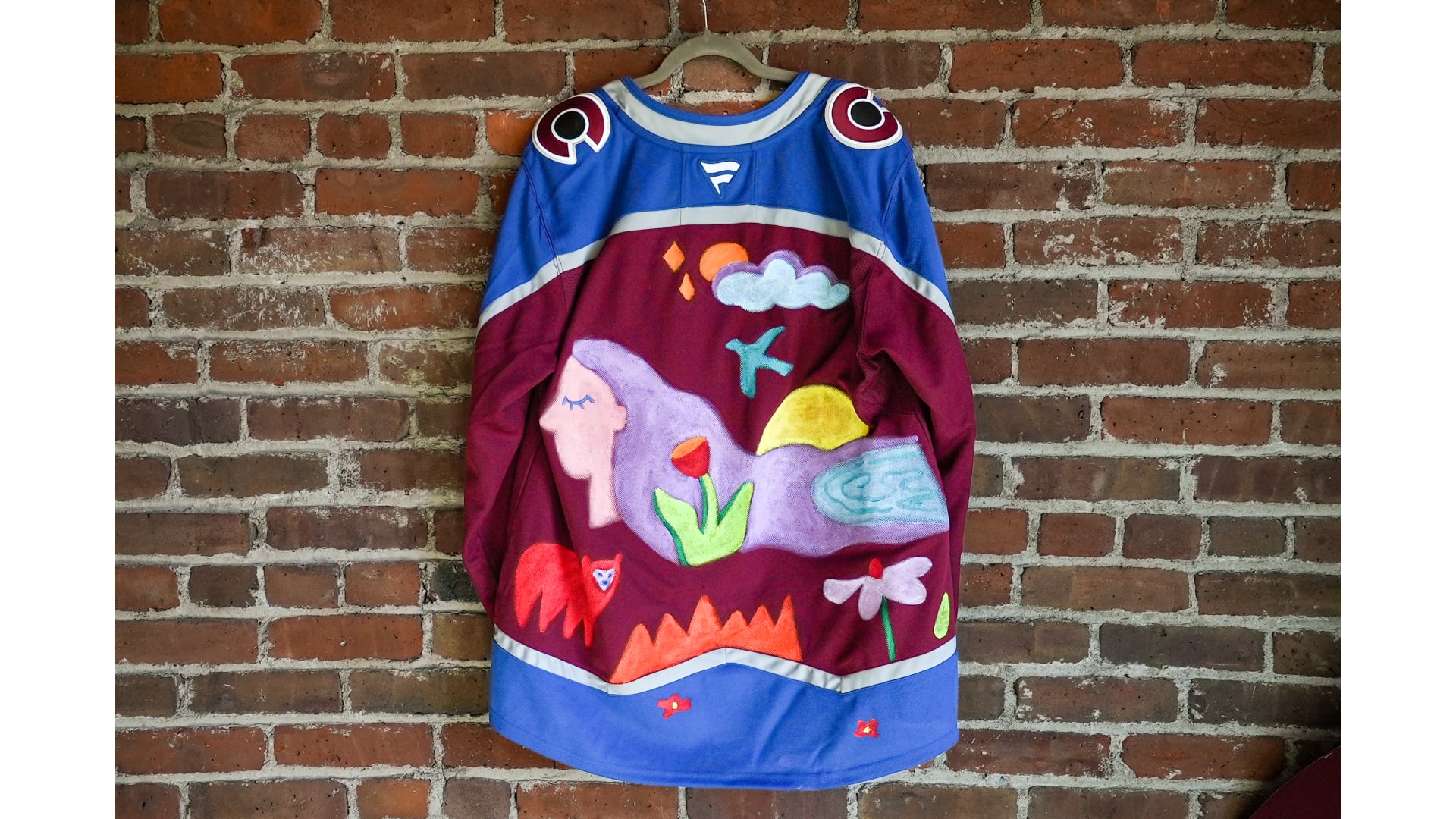 The inspiration behind this design comes from the most powerful woman of all, Mother Earth. There are fun illustrations of animals, plants, the sun, etc., all representing this powerful source. The jersey and hat are painted with acrylic paint and use a bold color palette, giving it a lighthearted feel.