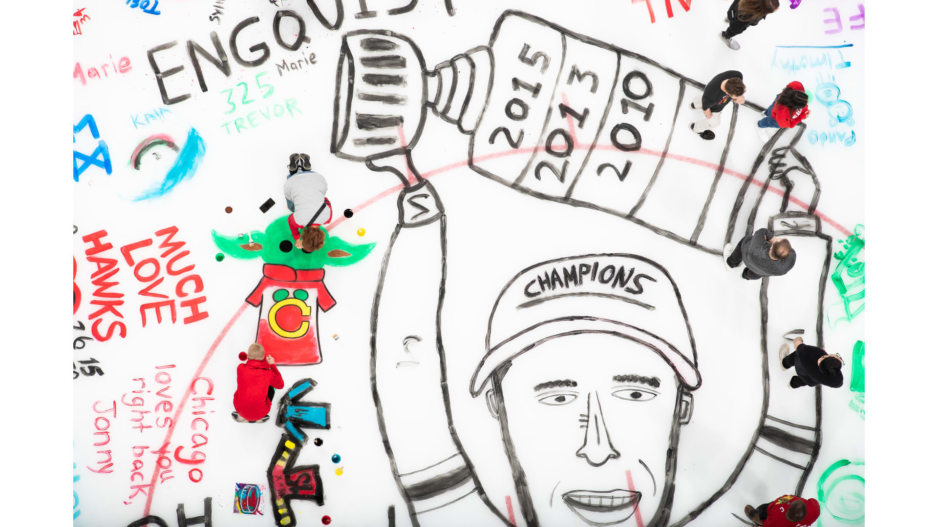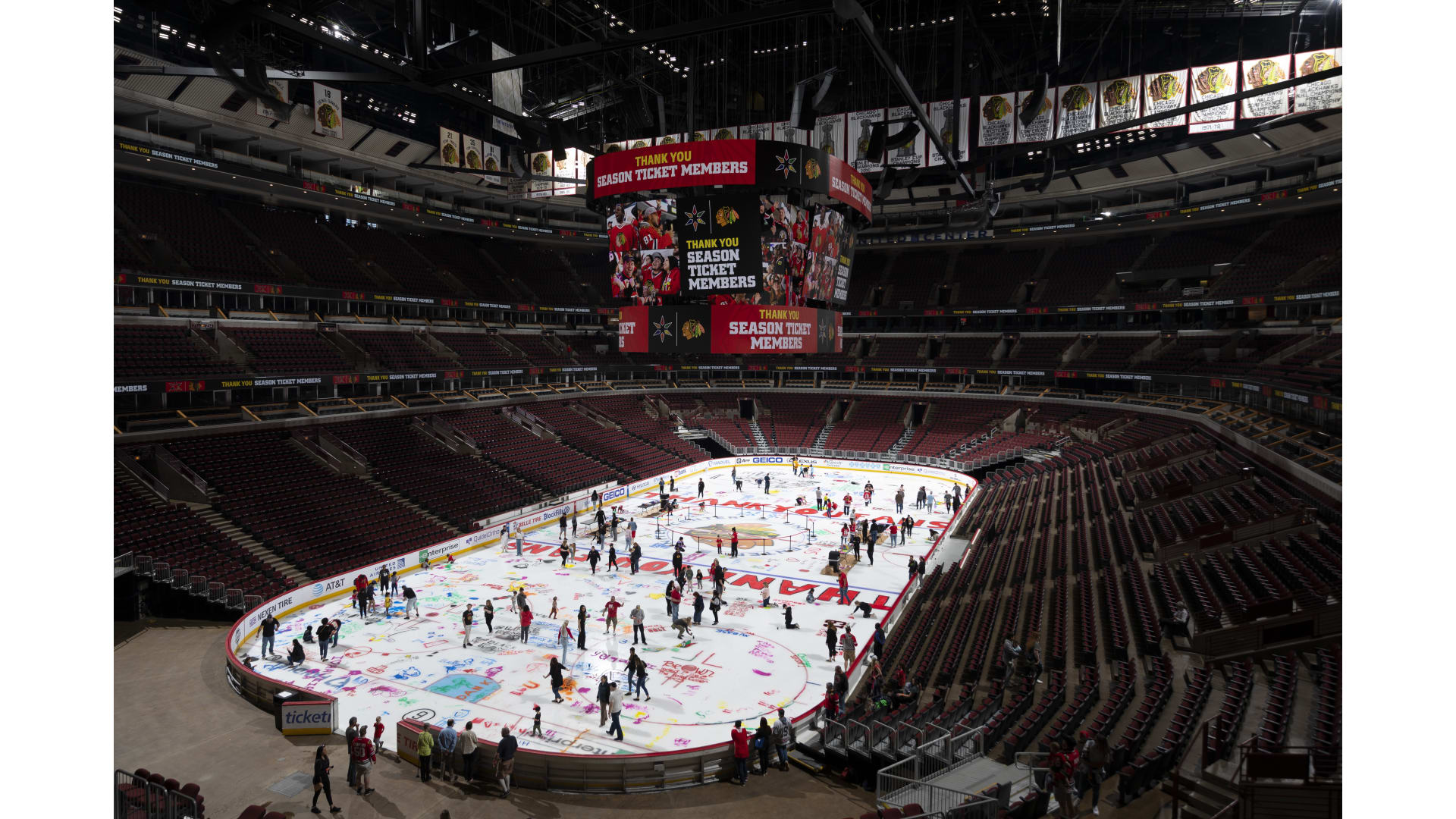 The Chicago Blackhawks welcomed fans to take part in their annual tradition to paint the ice at the United Center.