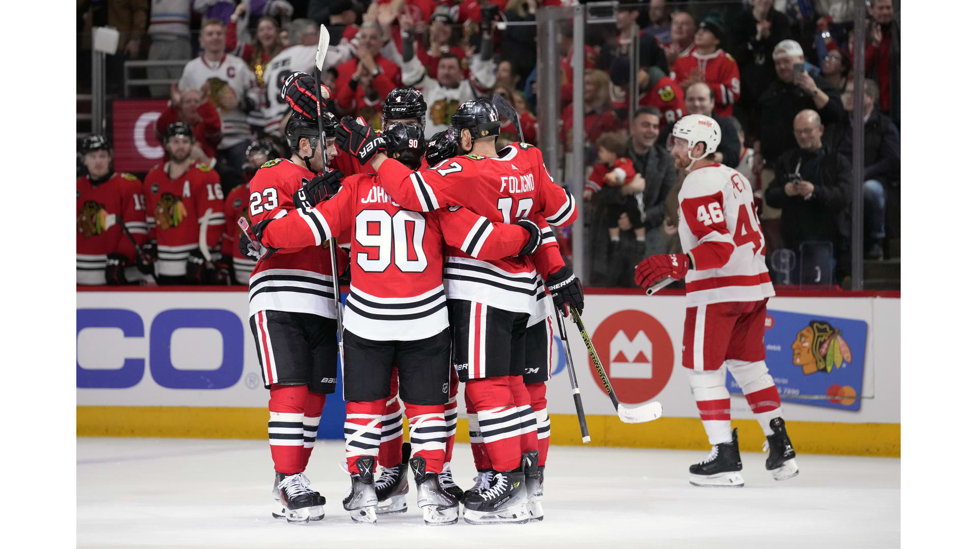 MacKenzie Entwistle and Nick Foligno gave the Blackhawks a 2-1 lead entering the final period of play, but Alex DeBrincat leveled things 2-2 with just under five minutes to play to force overtime and Patrick Kane found the game-winner in his first game back in Chicago.