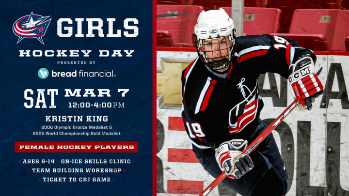 To promote and celebrate the girl's hockey community, the Columbus Blue Jackets host Girls Hockey Day, presented by Bread Financial, at Nationwide Arena for approximately 60 female hockey players between the ages of 6 to 14 years old.