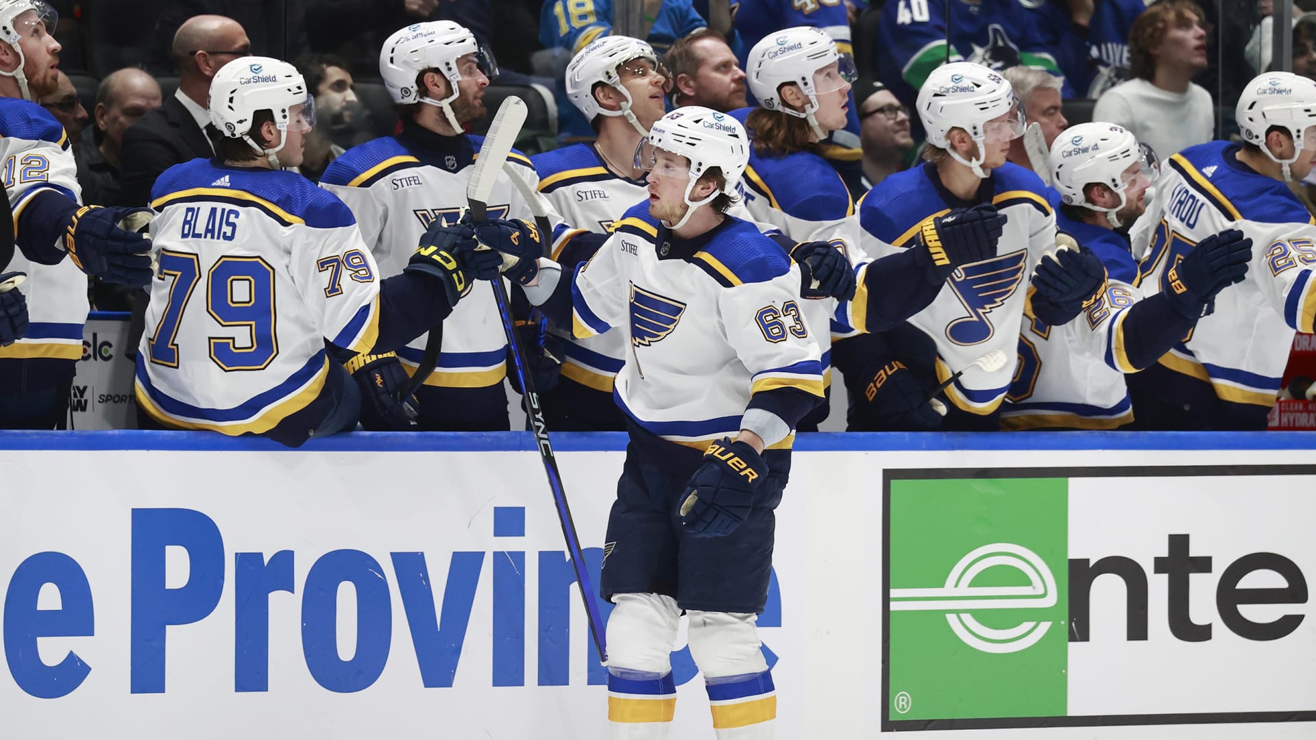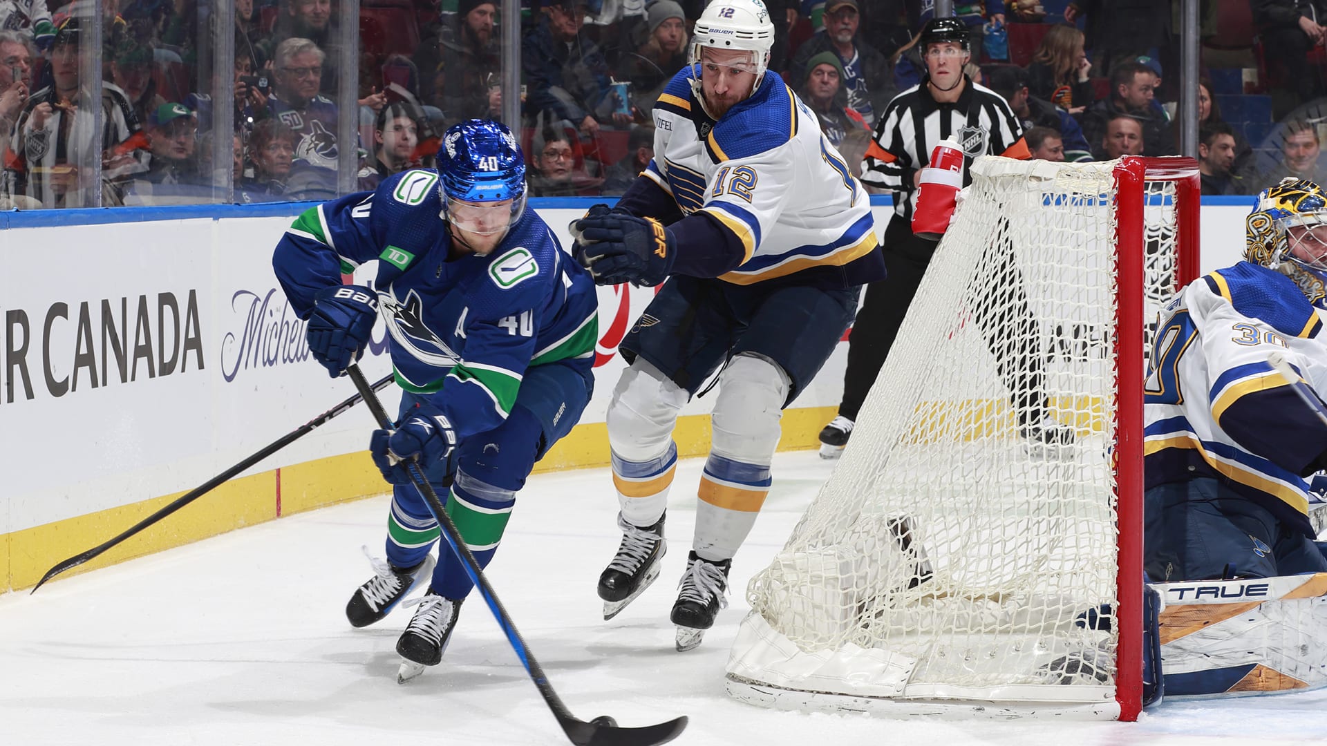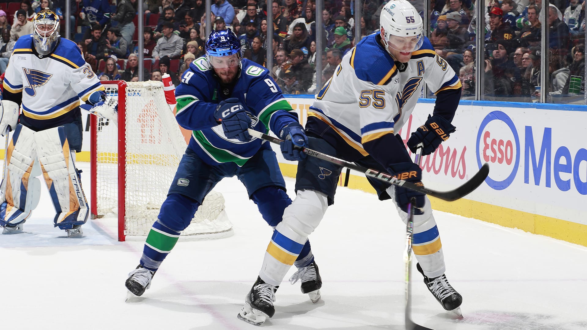 The St. Louis Blues beat the Vancouver Canucks 4-3 in overtime at Rogers Arena on Jan. 24, 2024. (Photos: Getty Images)