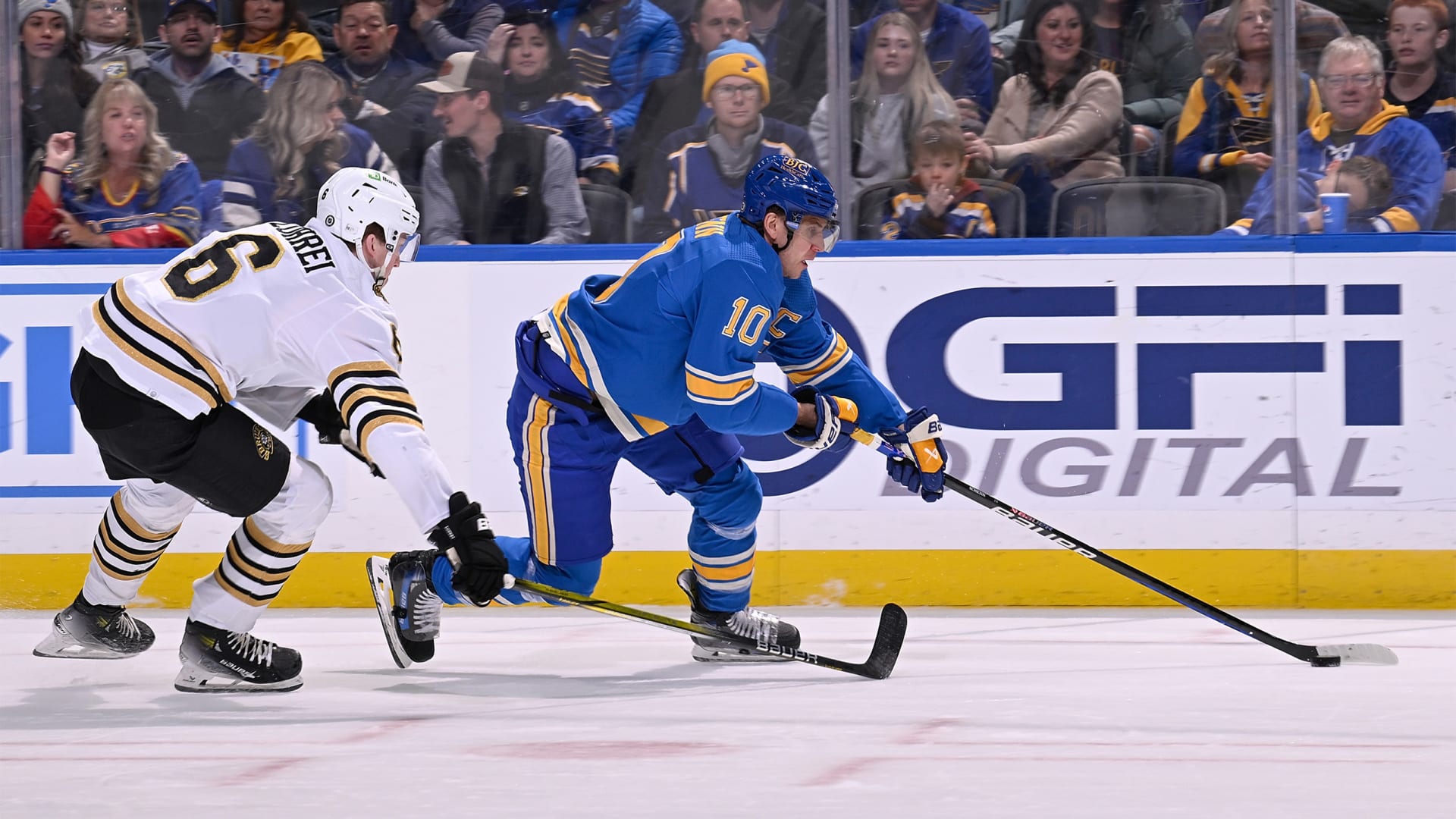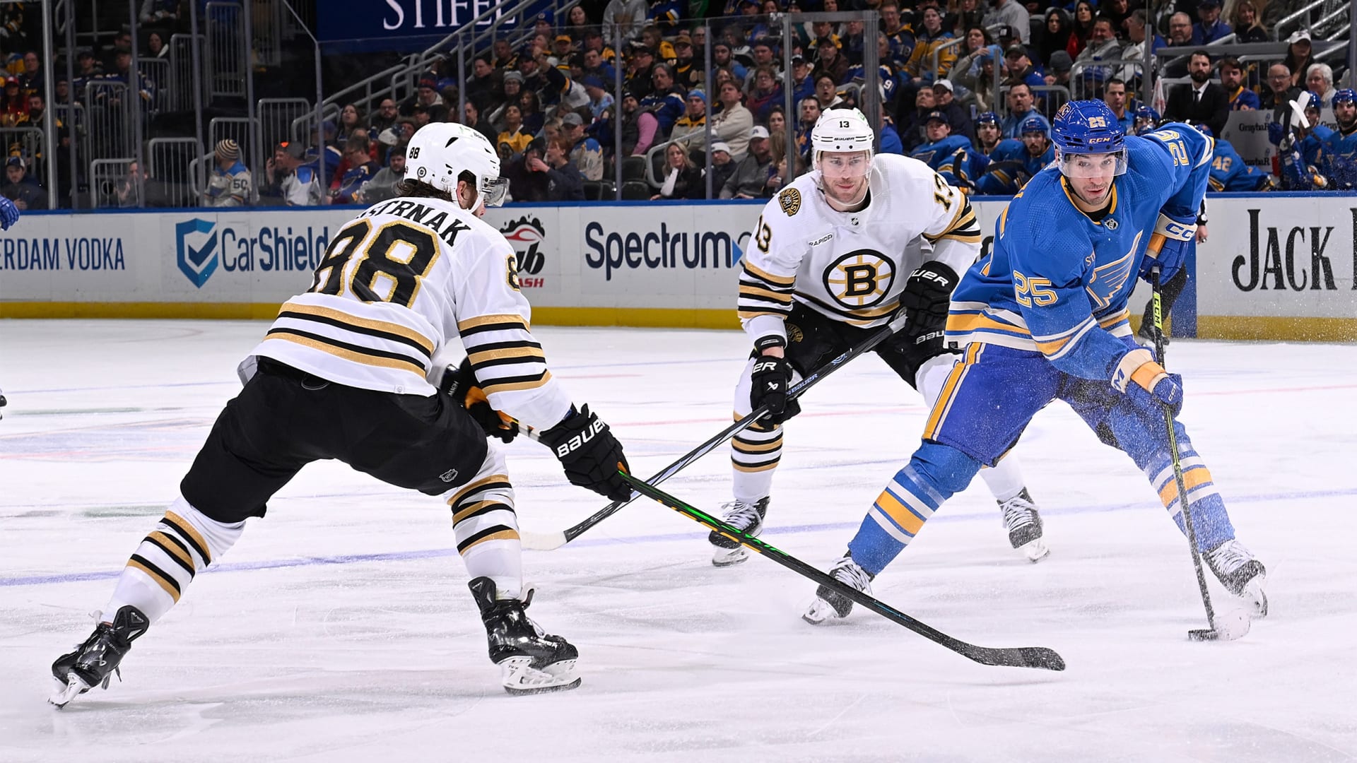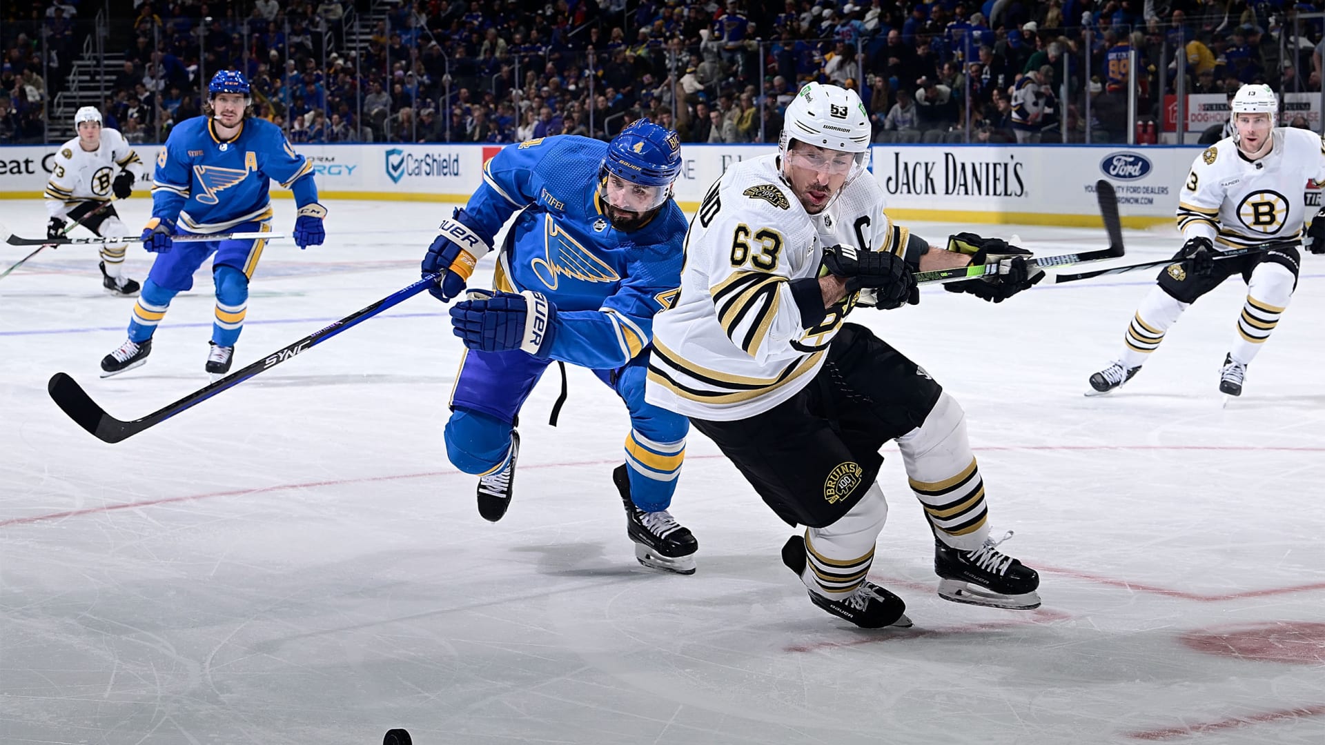 The St. Louis Blues lost to the Boston Bruins 4-3 in overtime on January 13, 2024 at Enterprise Center in St. Louis, Missouri. (Photos: Scott Rovak, Joe Puetz, Lexie Knight)