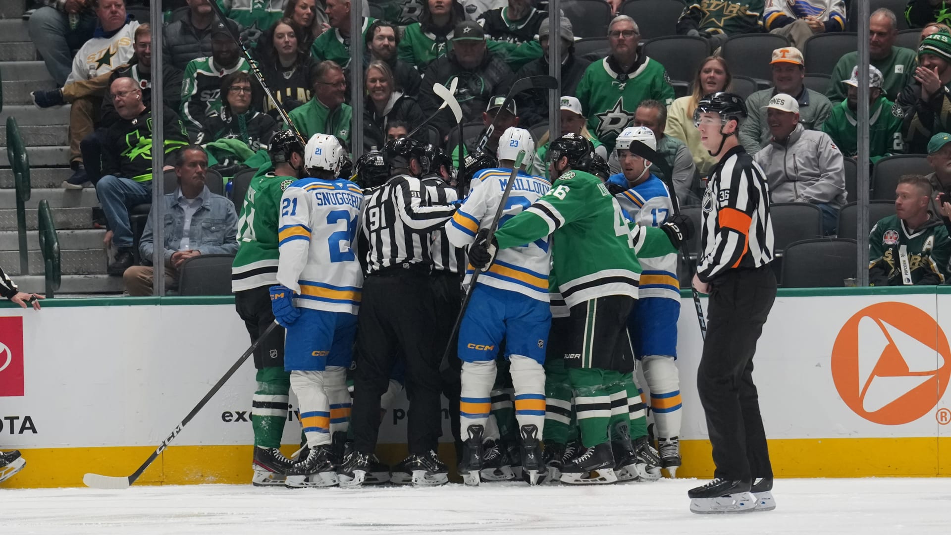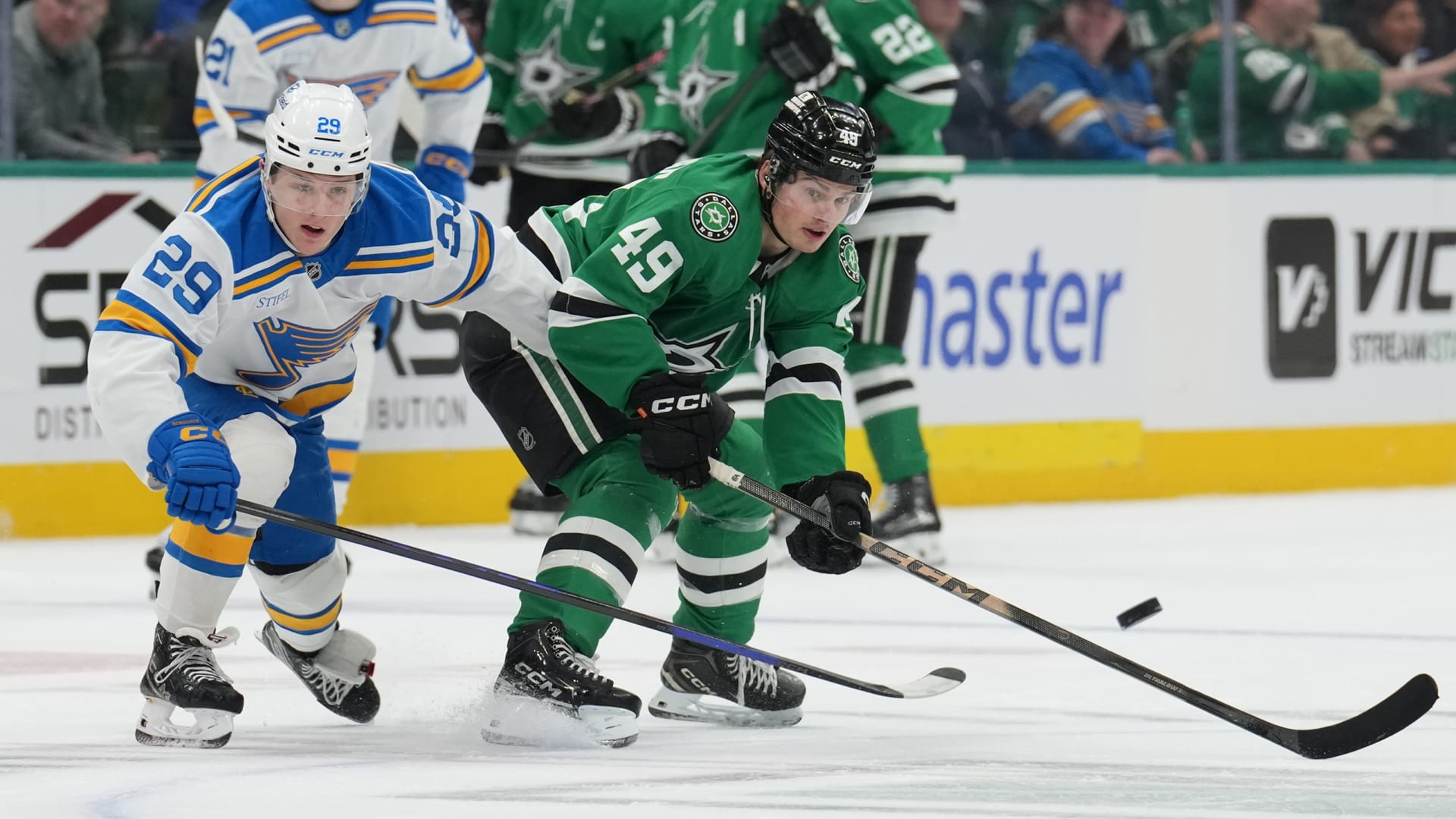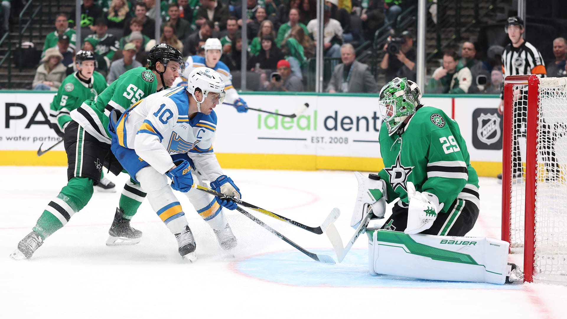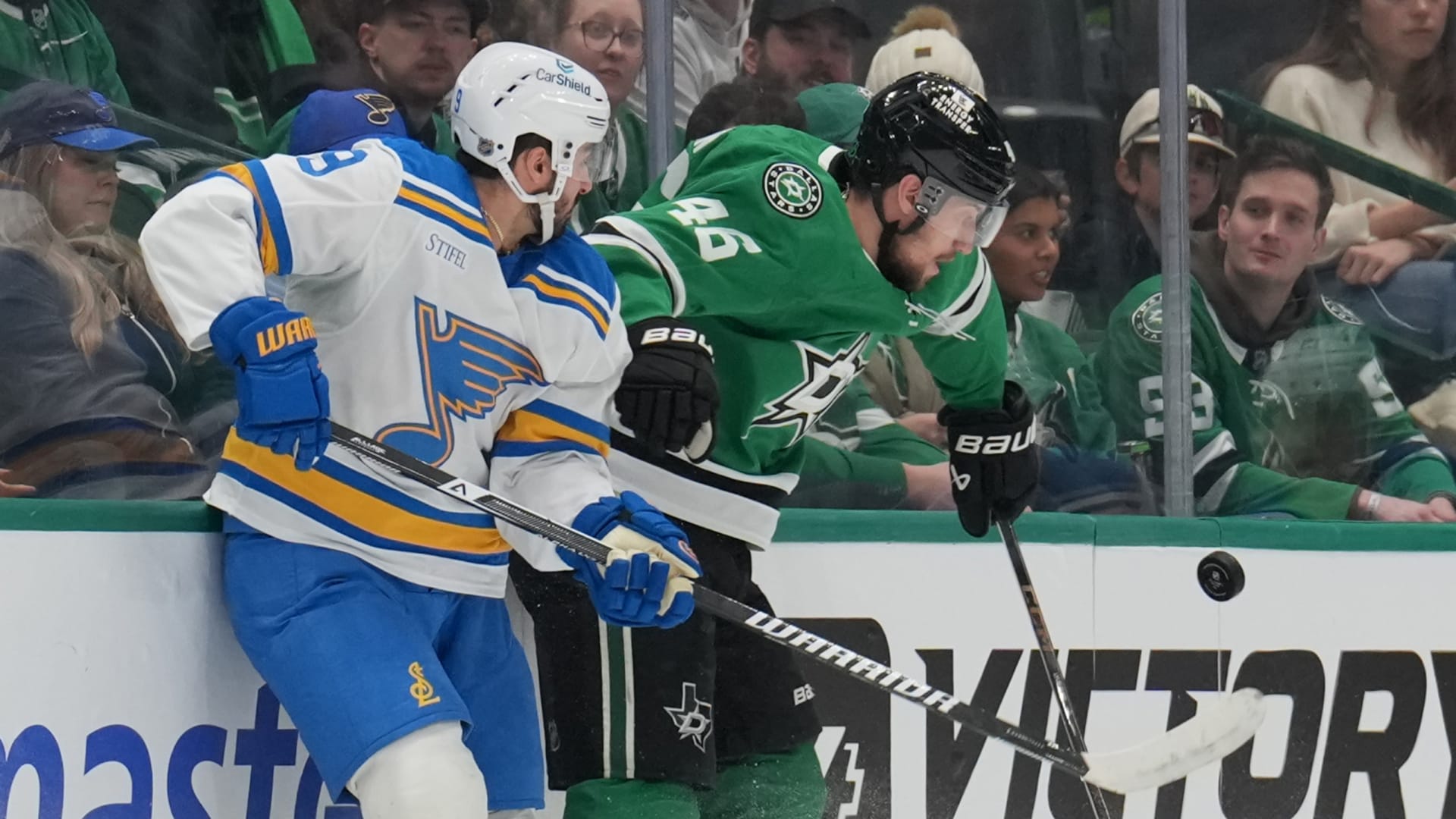 The St. Louis Blues fell 3-2 to the Dallas Stars at American Airlines Center on Jan. 23, 2026. (Photos: Getty Images)