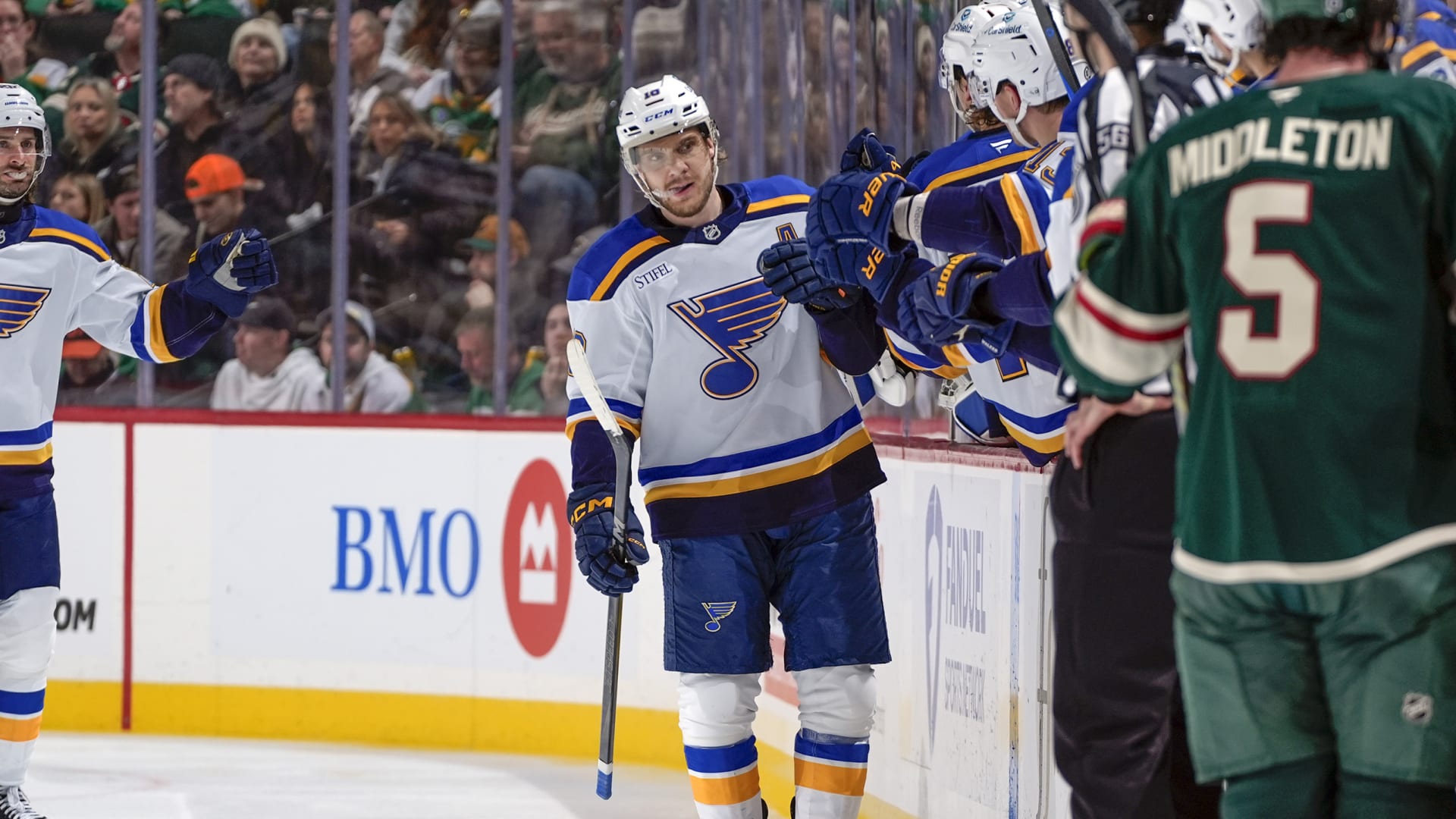 The St. Louis Blues fell to the Minnesota Wild 6-4 at Xcel Energy Center on Jan. 7, 2025. (Photos: Getty Images)