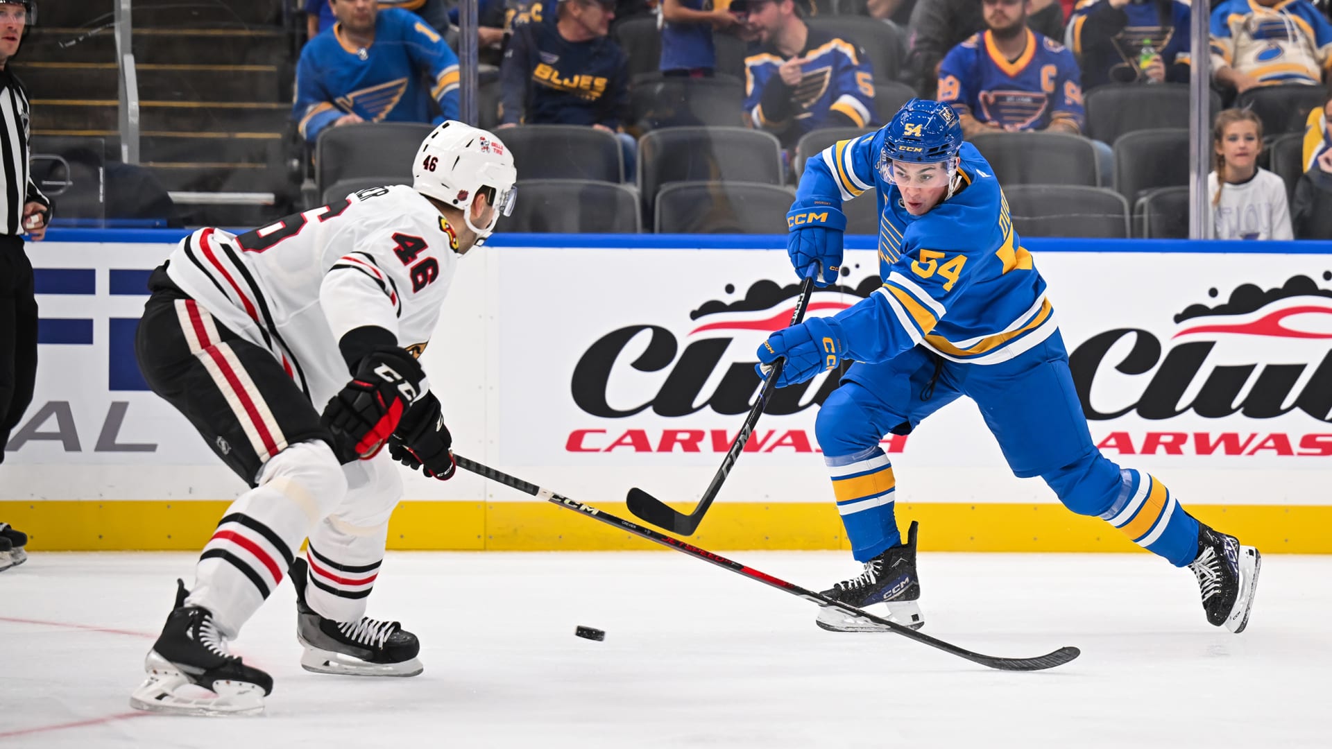 The St. Louis Blues fell to the Chicago Blackhawks 4-2 in preseason action at Enterprise Center on Sept. 27, 2025. (Photos: Scott Rovak, Joe Puetz and Lexie Knight)