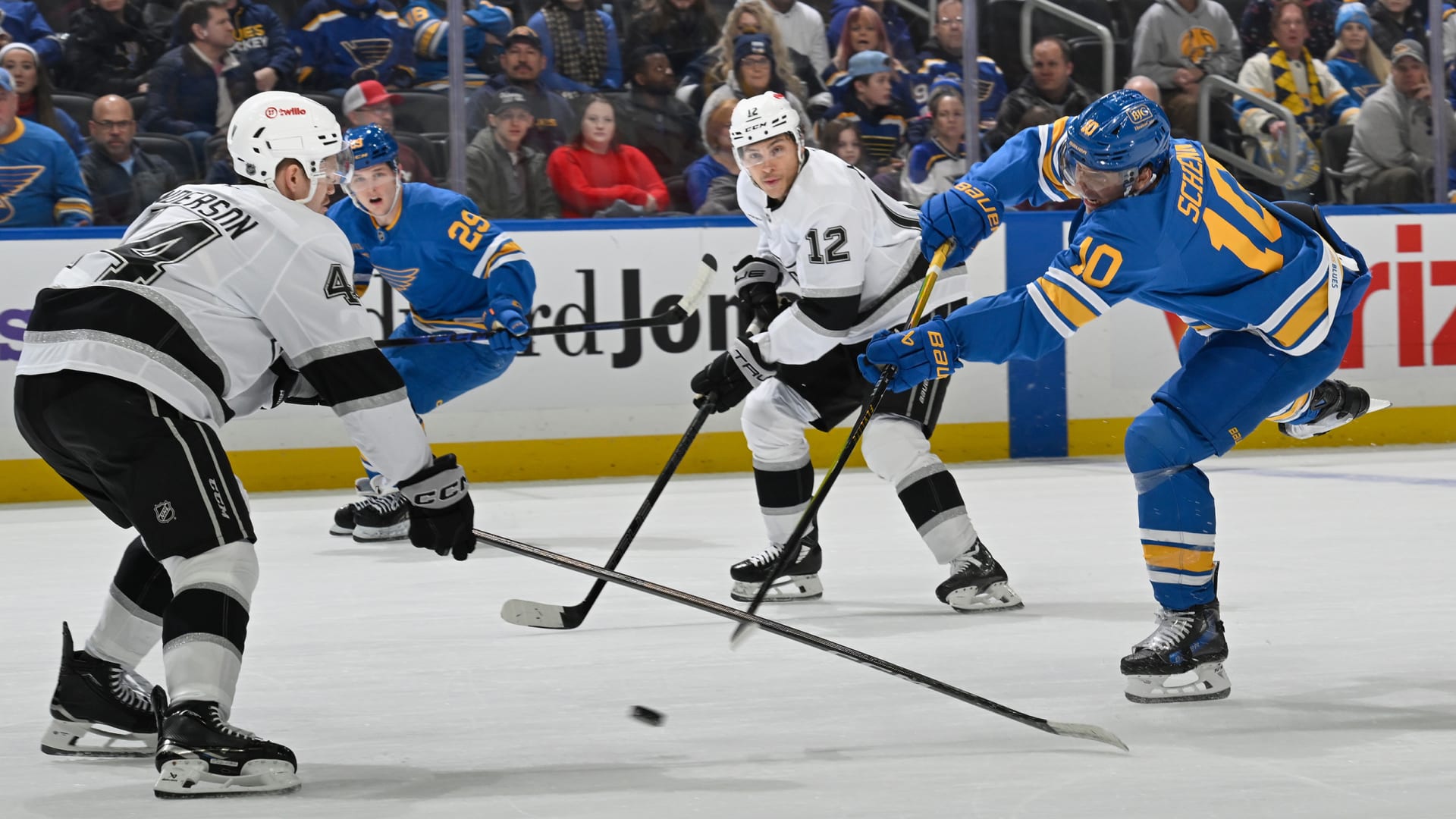 The St. Louis Blues earned a point but fell in the shootout, 5-4, to the Los Angeles Kings at Enterprise Center on Jan. 24, 2026. (Photos: Scott Rovak, Joe Puetz, Lexie Knight, Connor Hamilton)