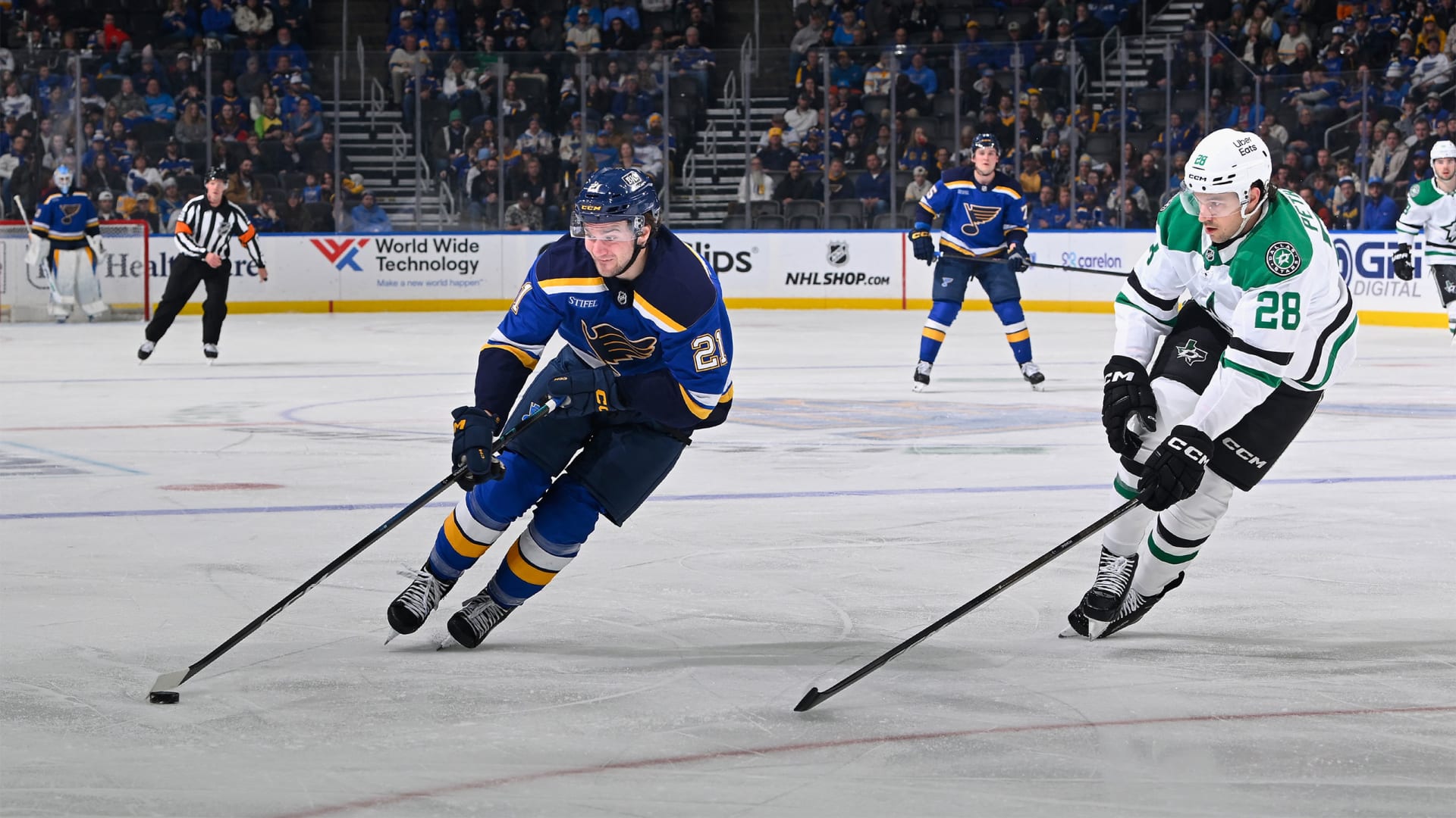 The St. Louis Blues fell to the Dallas Stars 4-3 at Enterprise Center on Jan. 27, 2026. (Photos: Scott Rovak, Joe Puetz, Lexie Knight, Connor Hamilton)