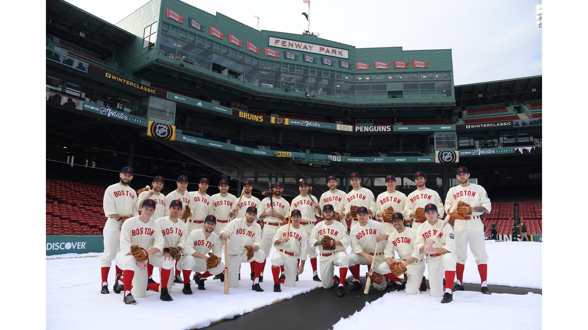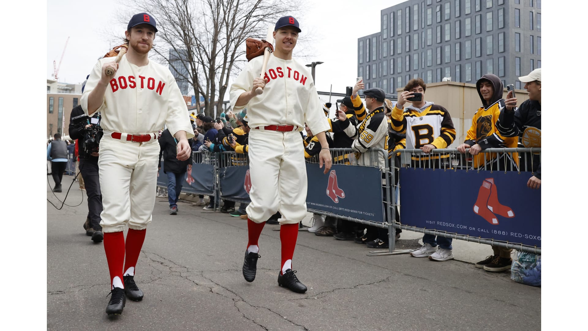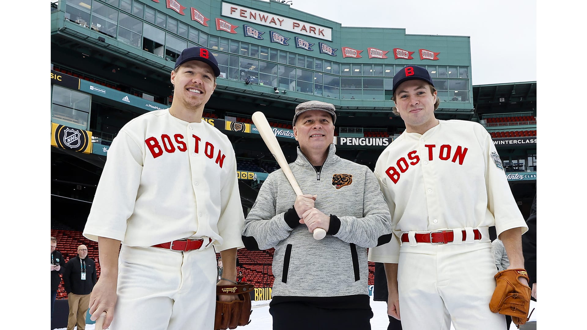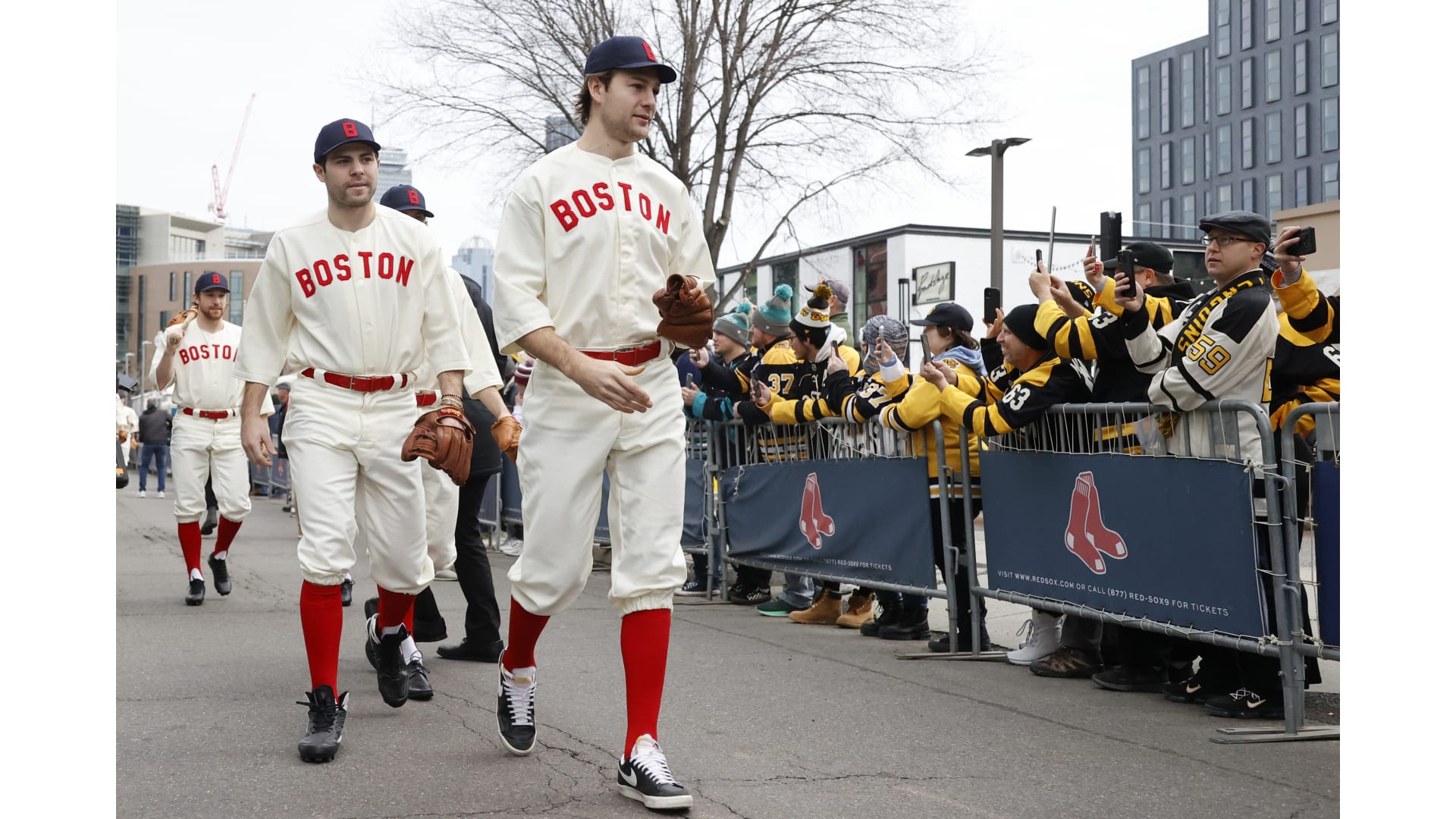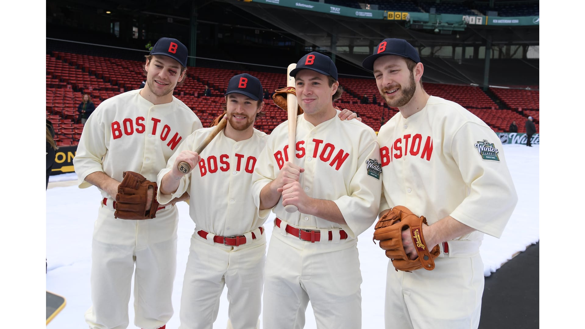 Photos: Bruins Arrive at Fenway in Red Sox Uniforms