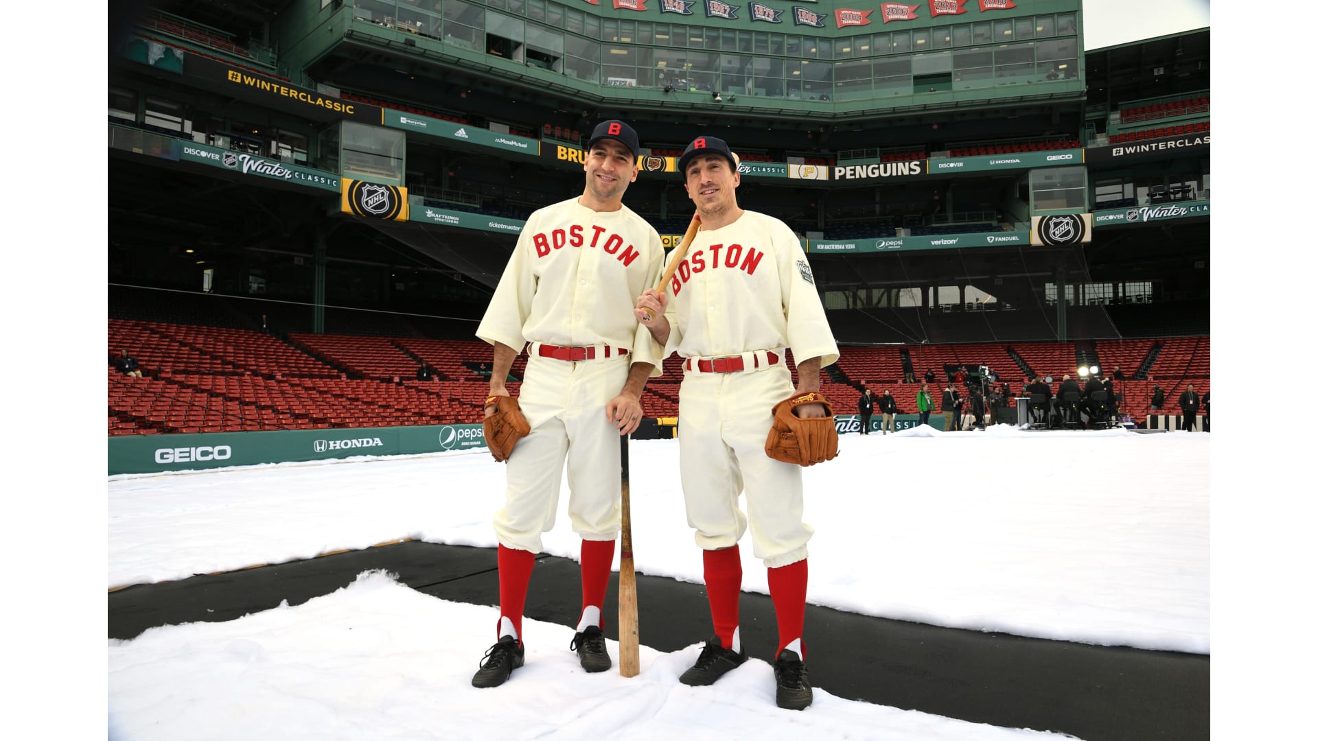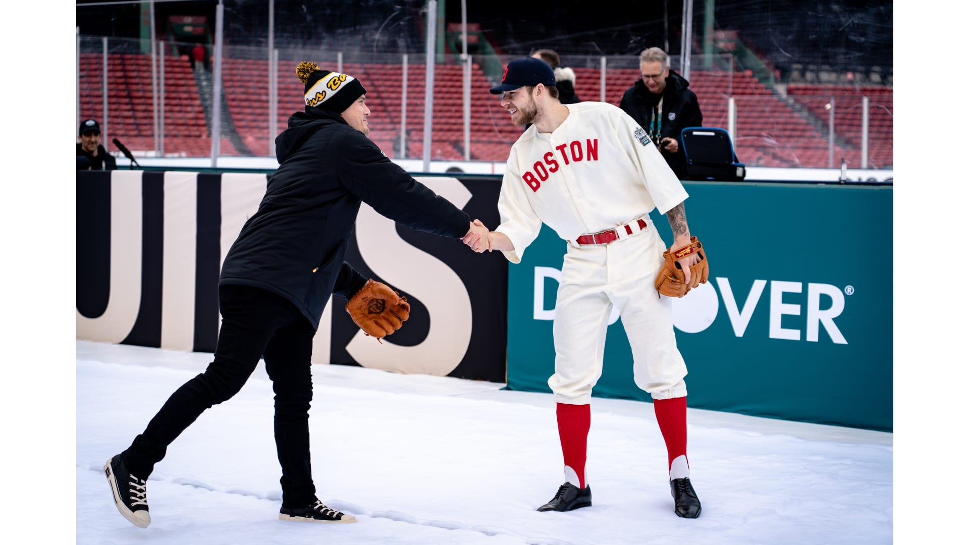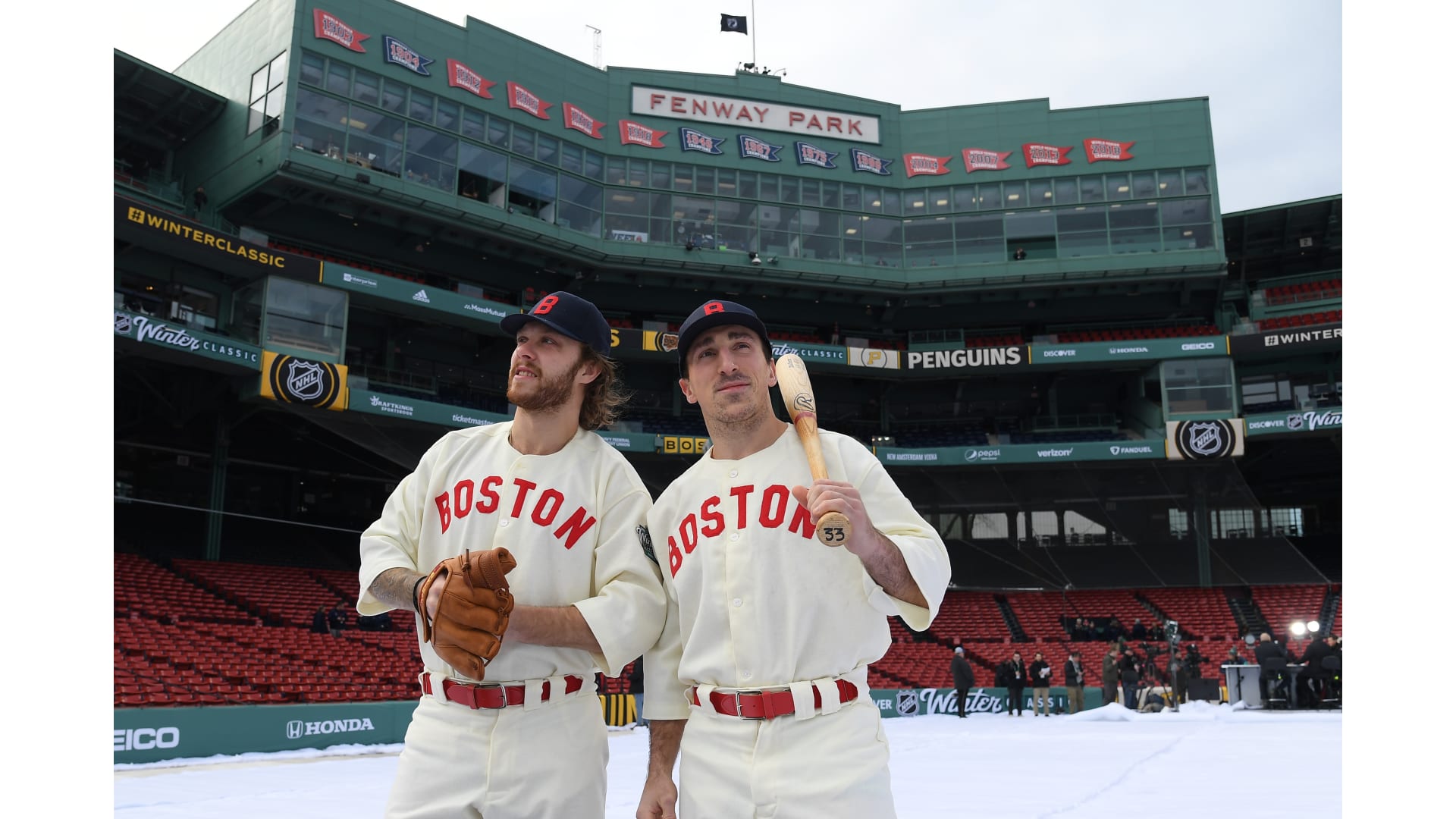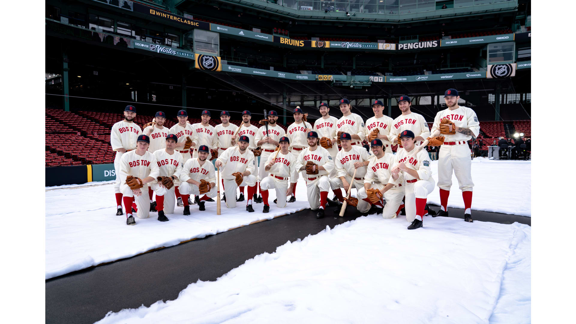 Photos: Bruins Arrive at Fenway in Red Sox Uniforms