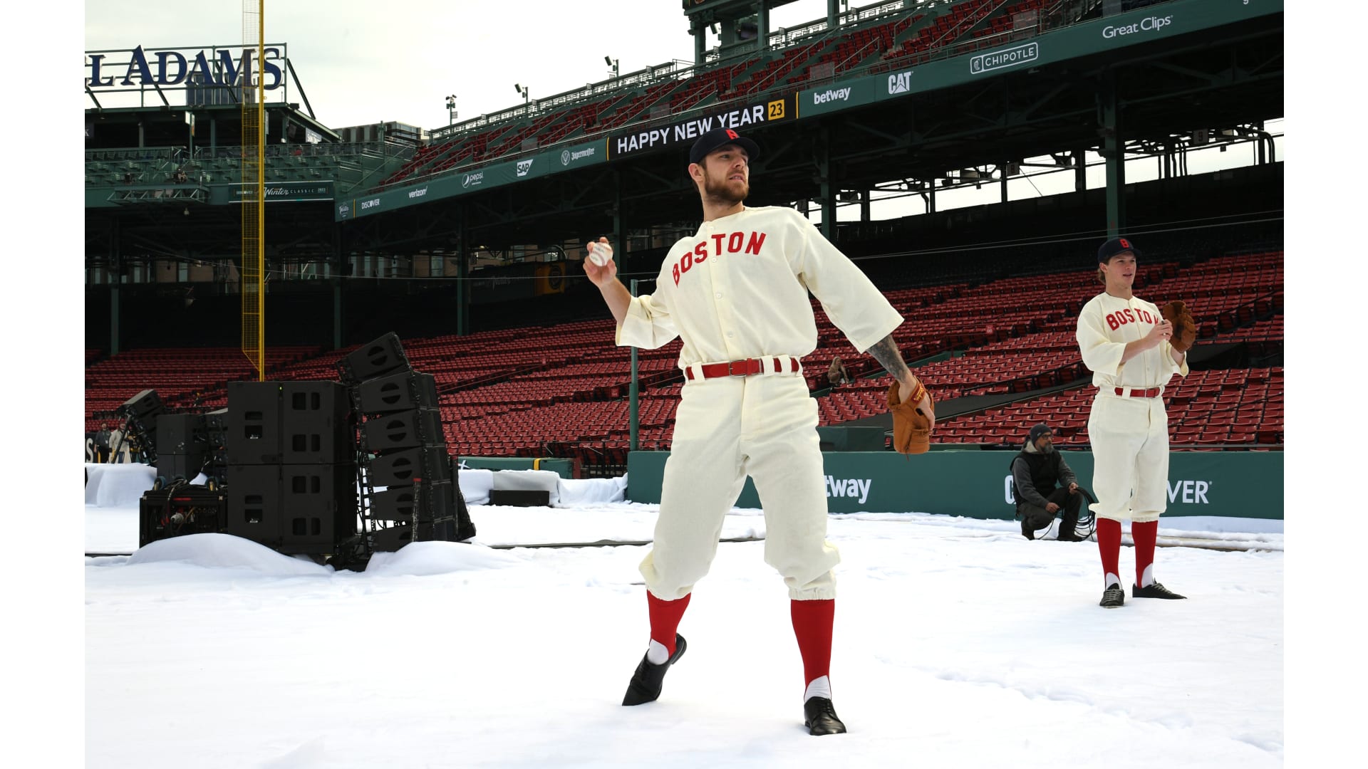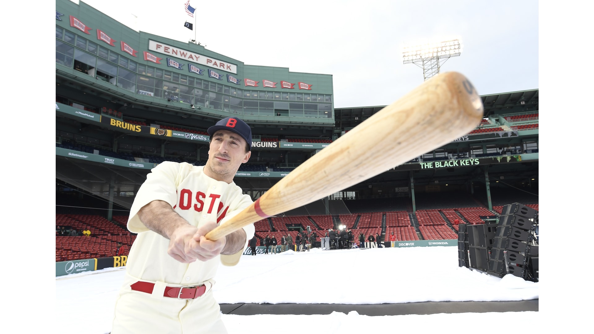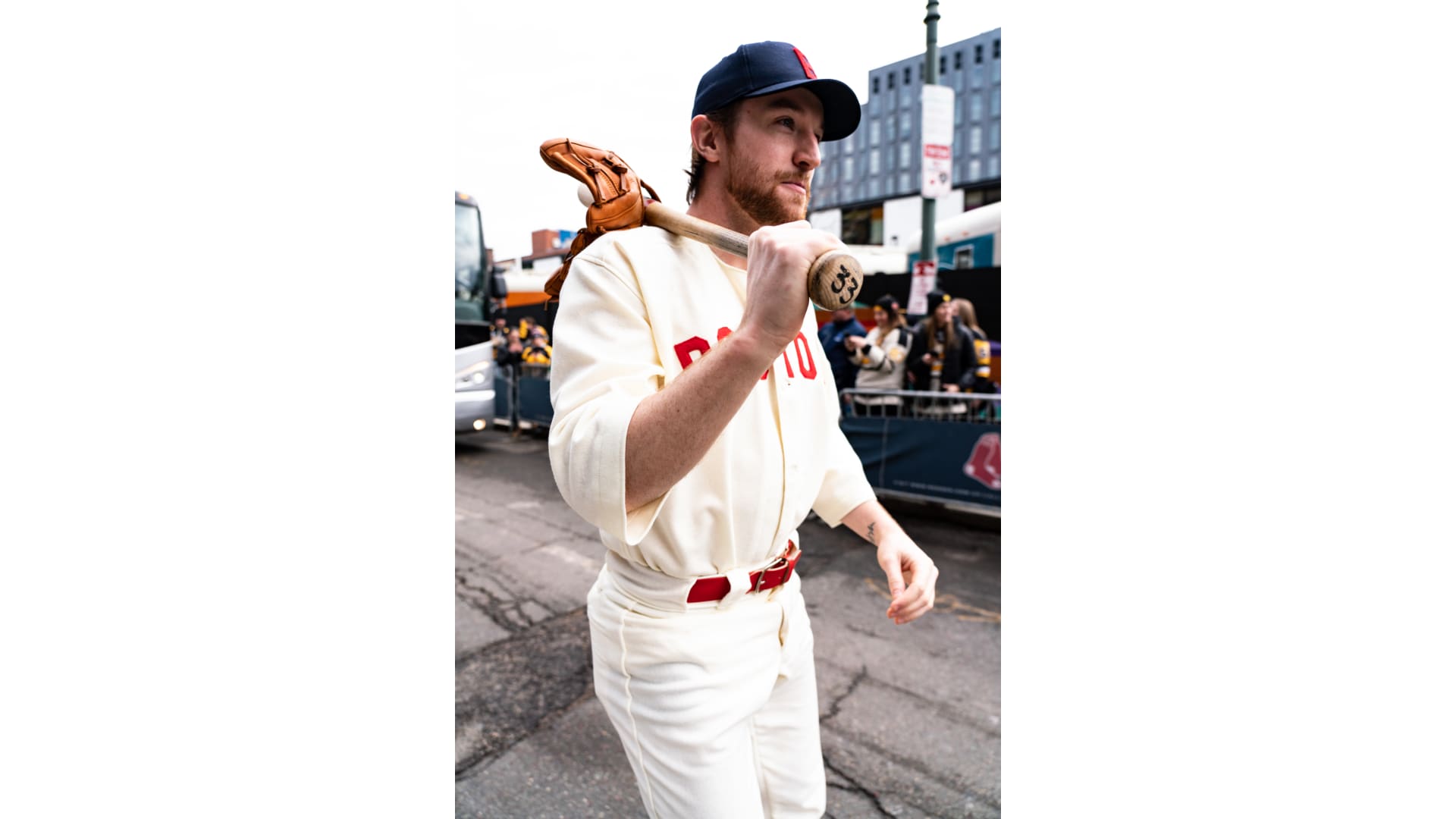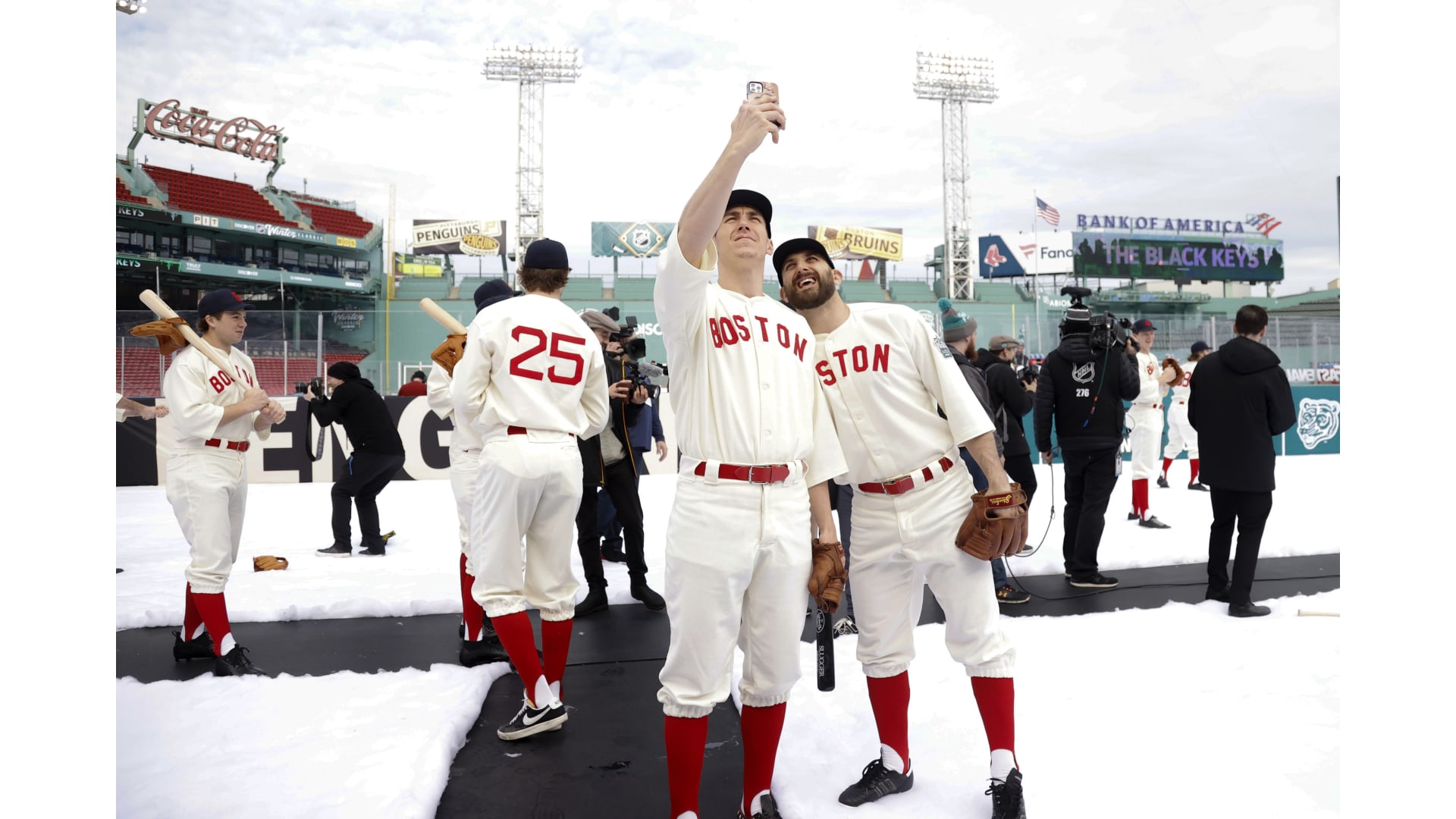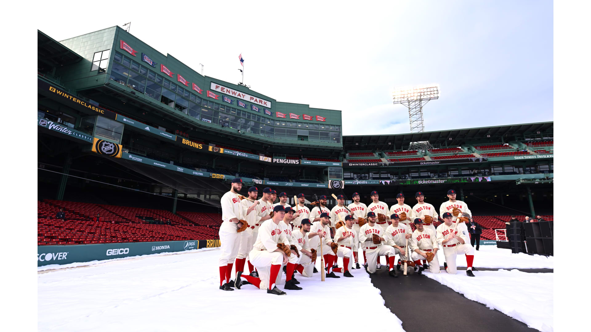Photos: Bruins Arrive at Fenway in Red Sox Uniforms