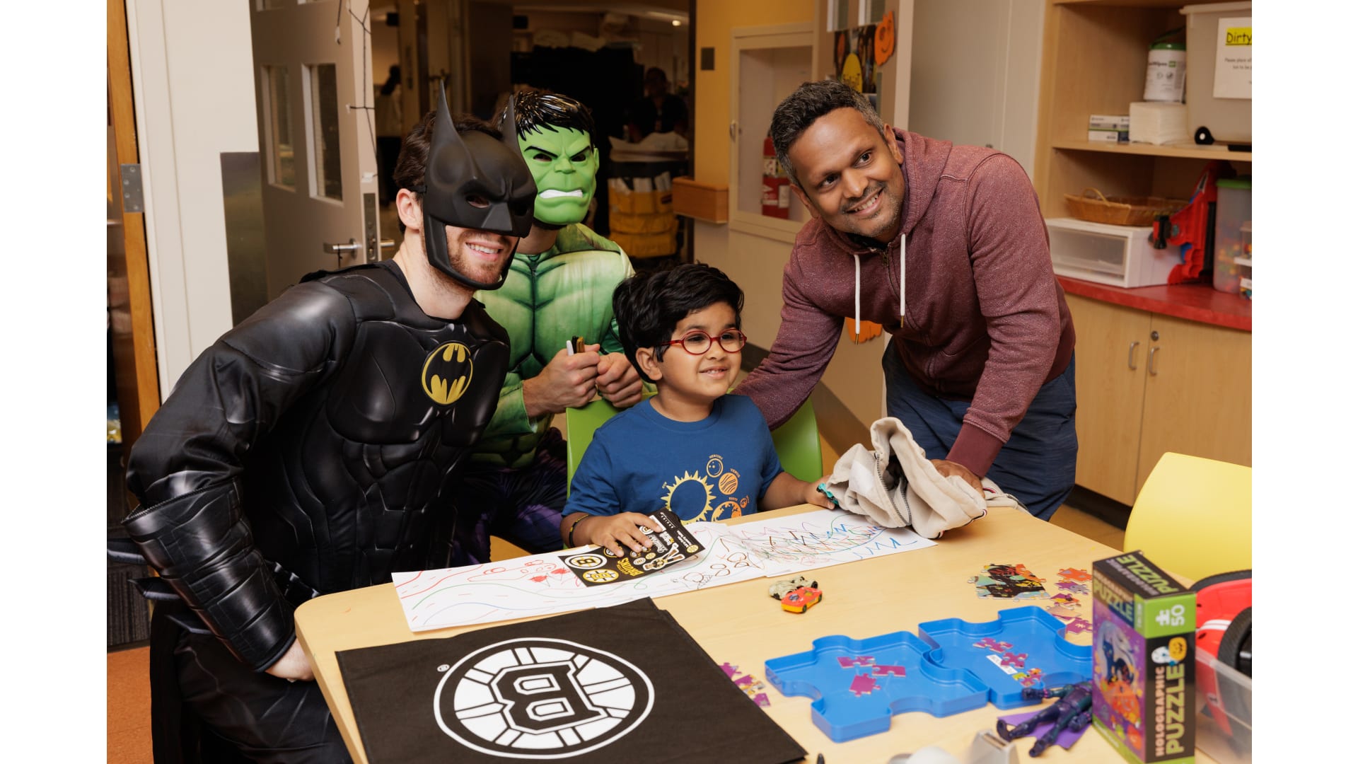 A group of Bruins spent time with patients and staff during the team’s annual Halloween hospital visit on Wednesday at Mass. General Hospital for Children. (Photo Credit: Mass General)