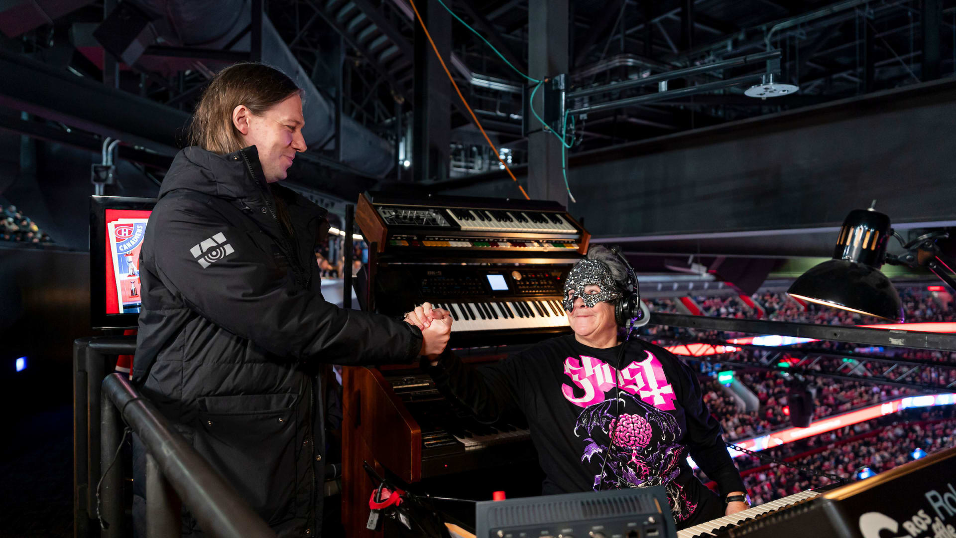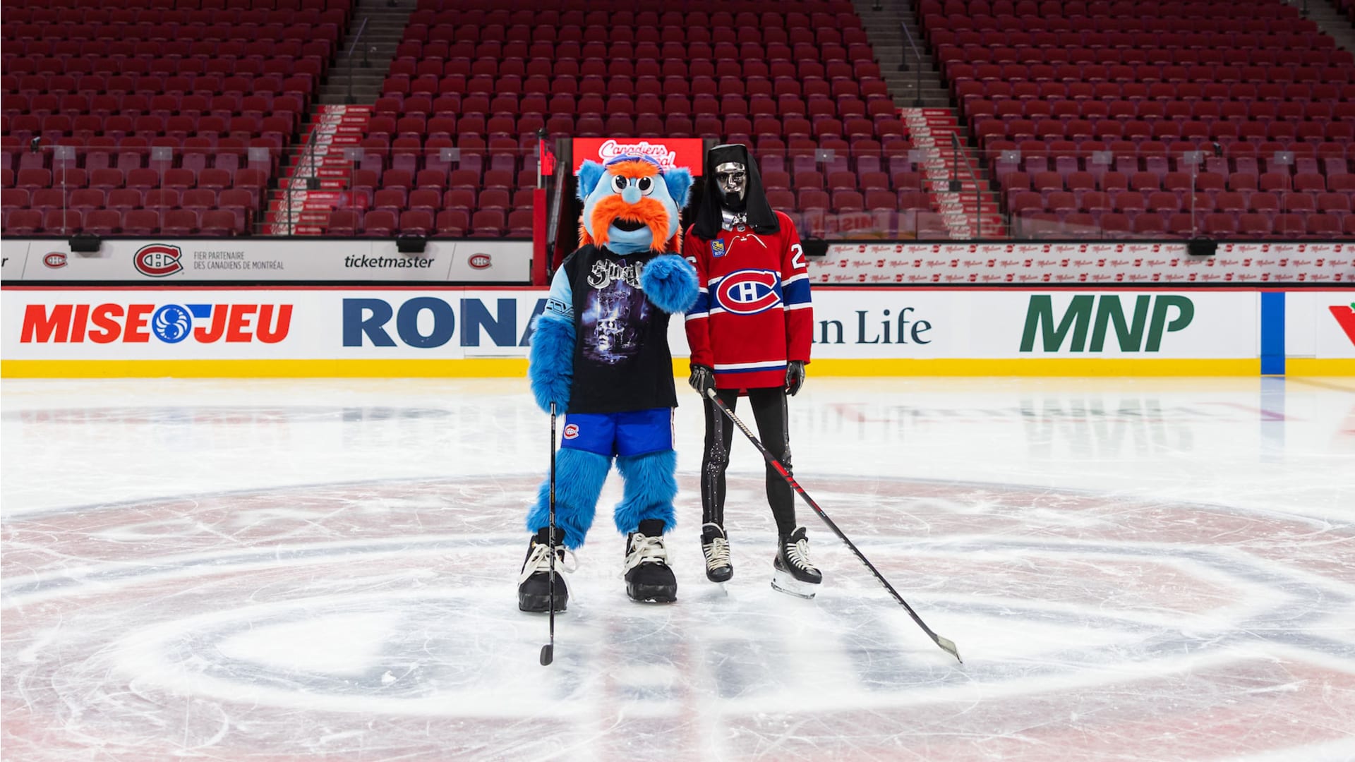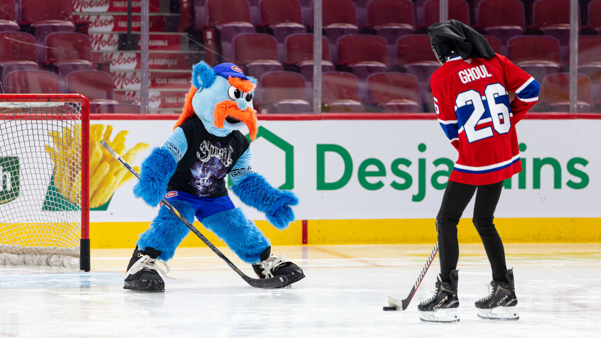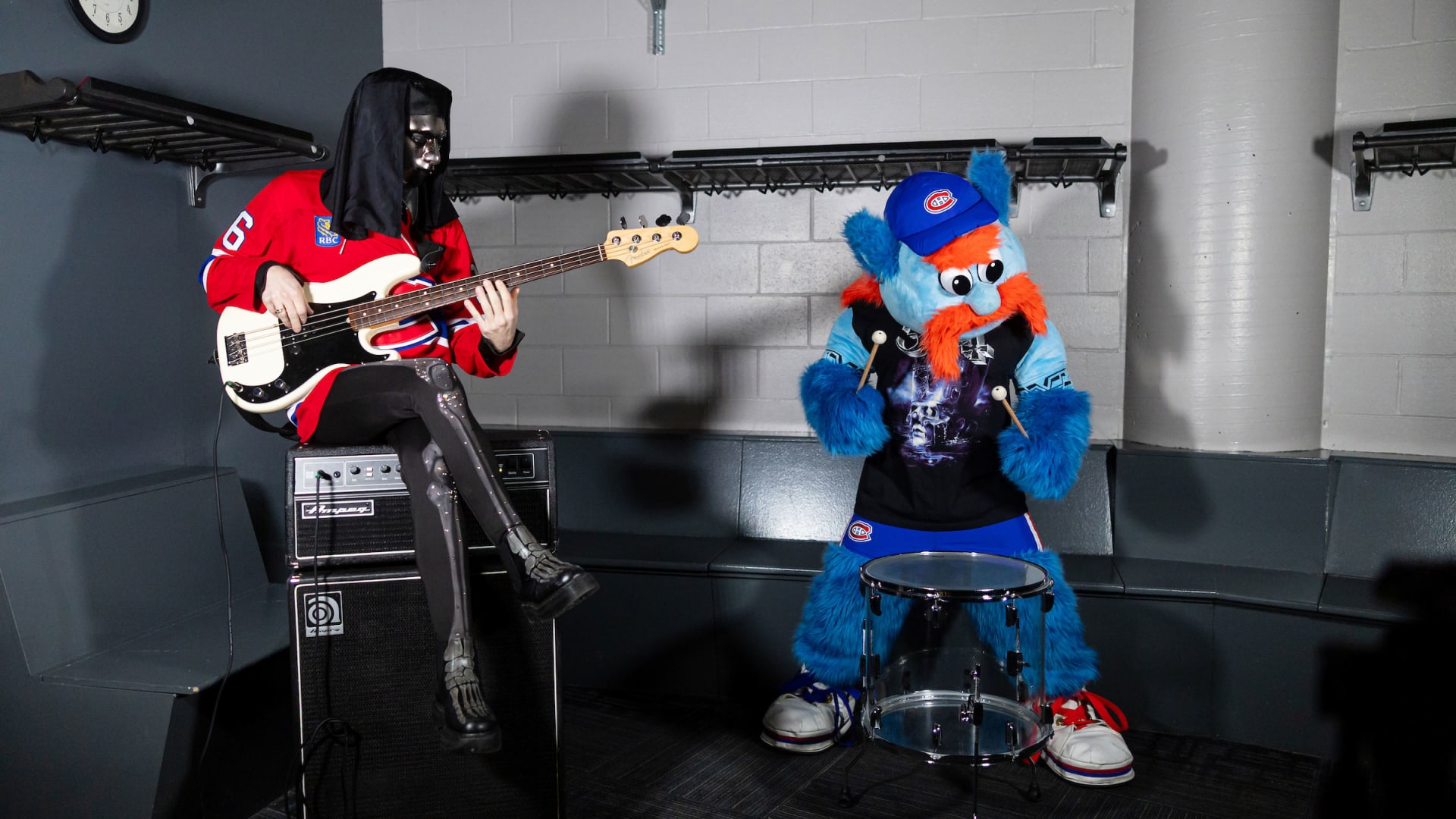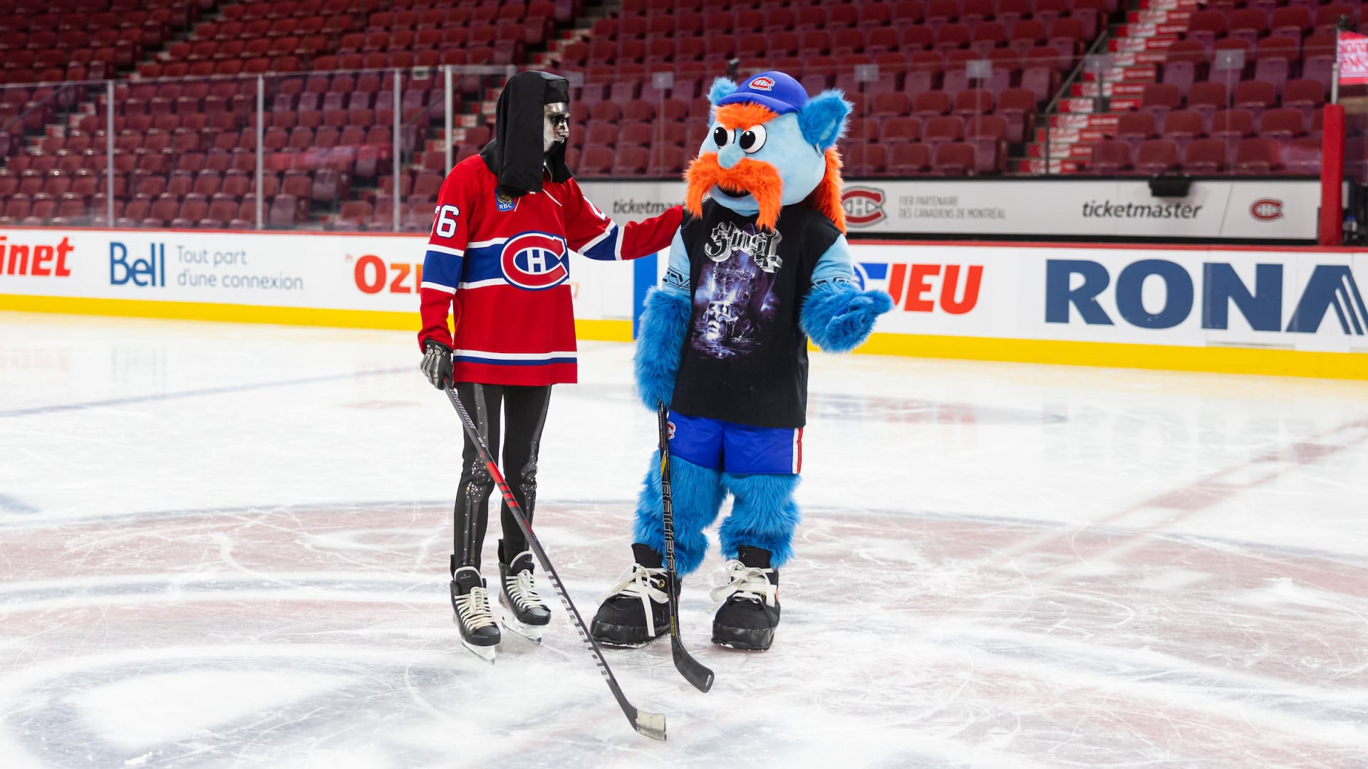 The Canadiens and Ghost team up for an epic crossover with the Swedish rock band in town for the “Skeletour”—from frontman Tobias Forge in the organist booth with Diane Bibaud during a game, to a Nameless Ghoul on the ice with unofficial mascot METAL! for an episode of GTV.