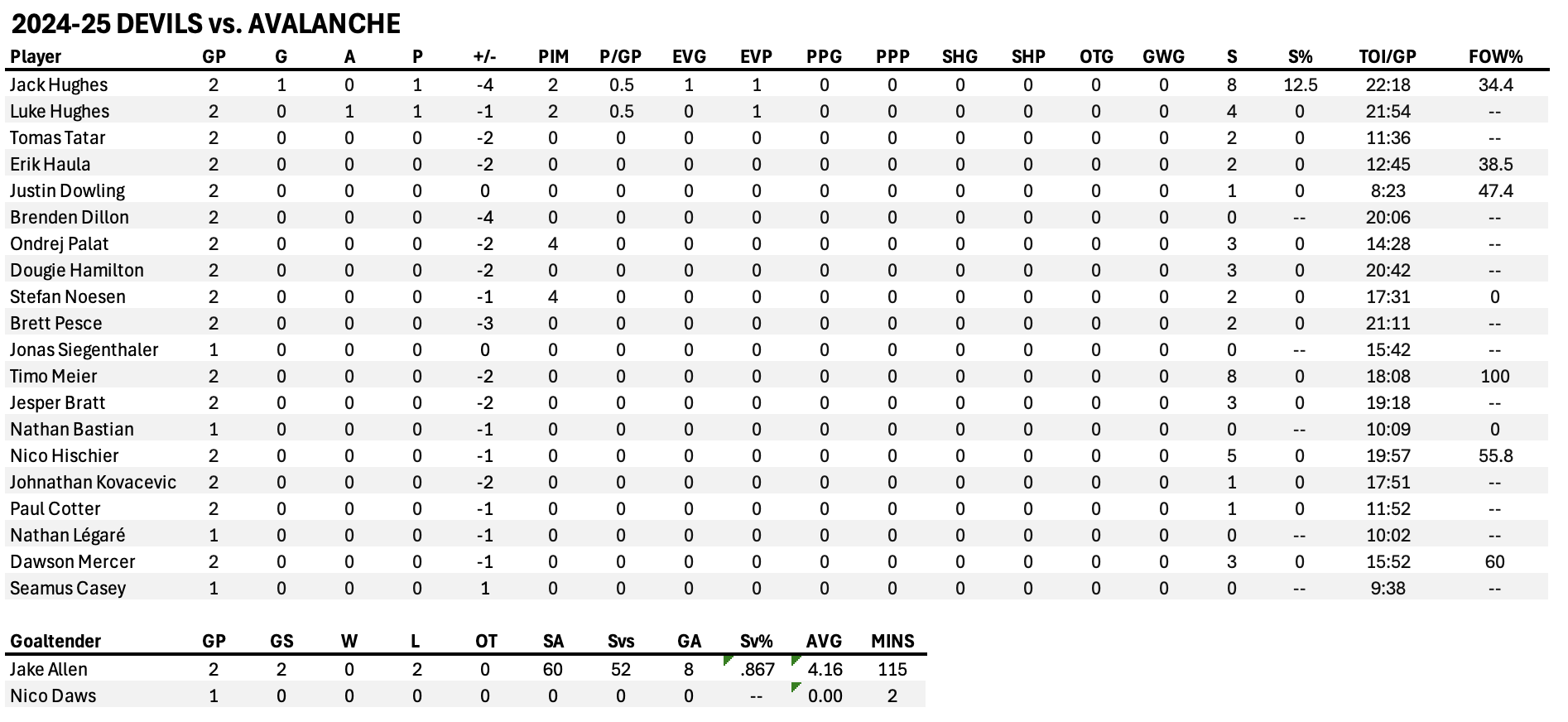 Media Game Notes: Devils vs Avalanche