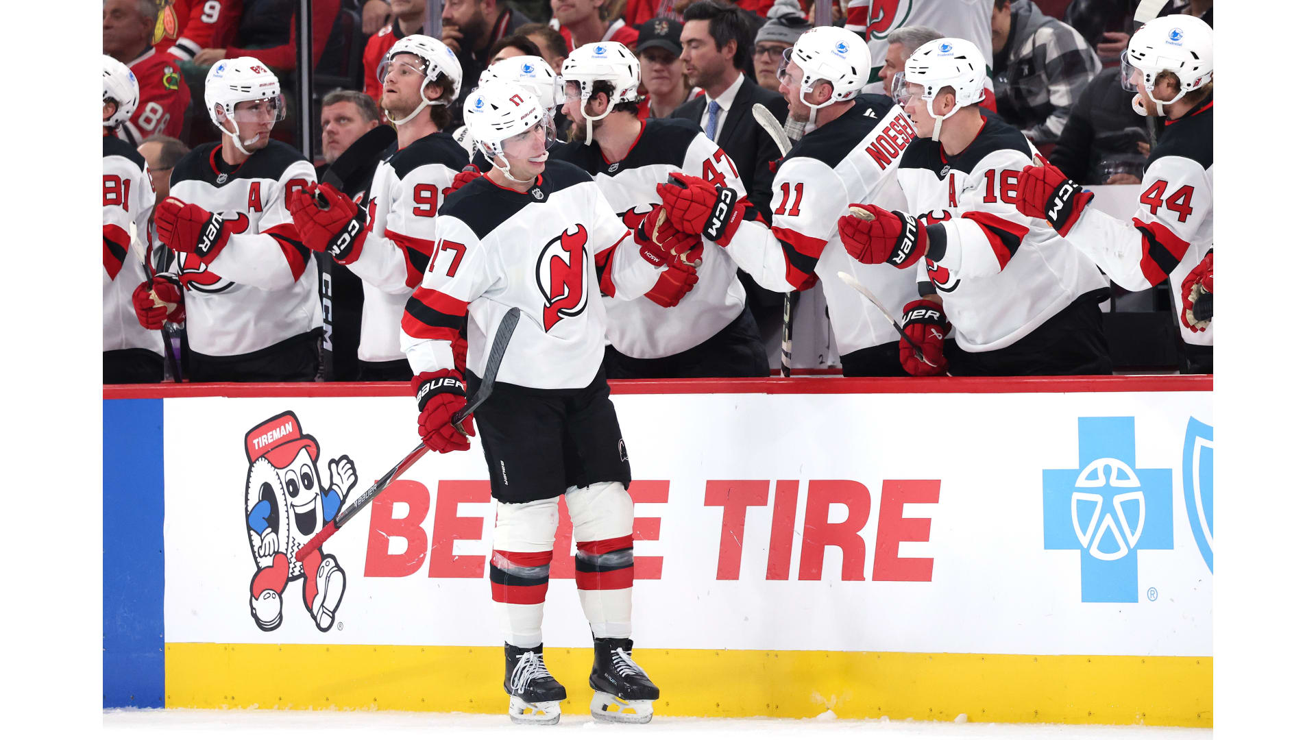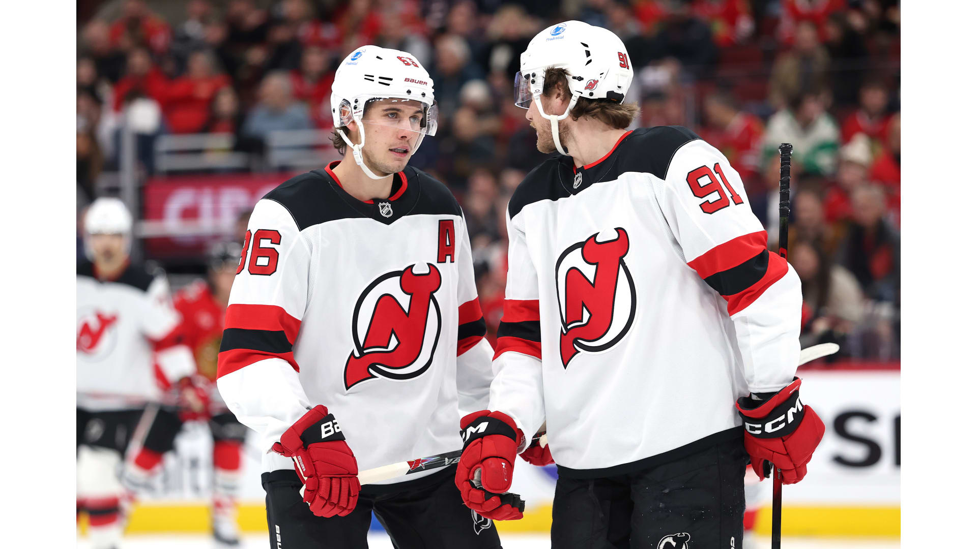 Photos from the game between the Devils and Chicago Blackhawks from Getty Images.