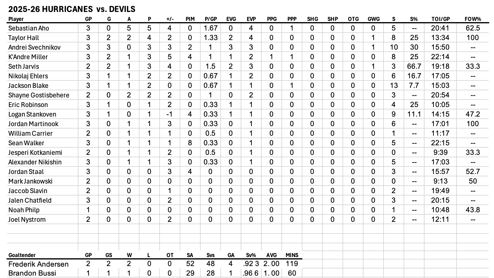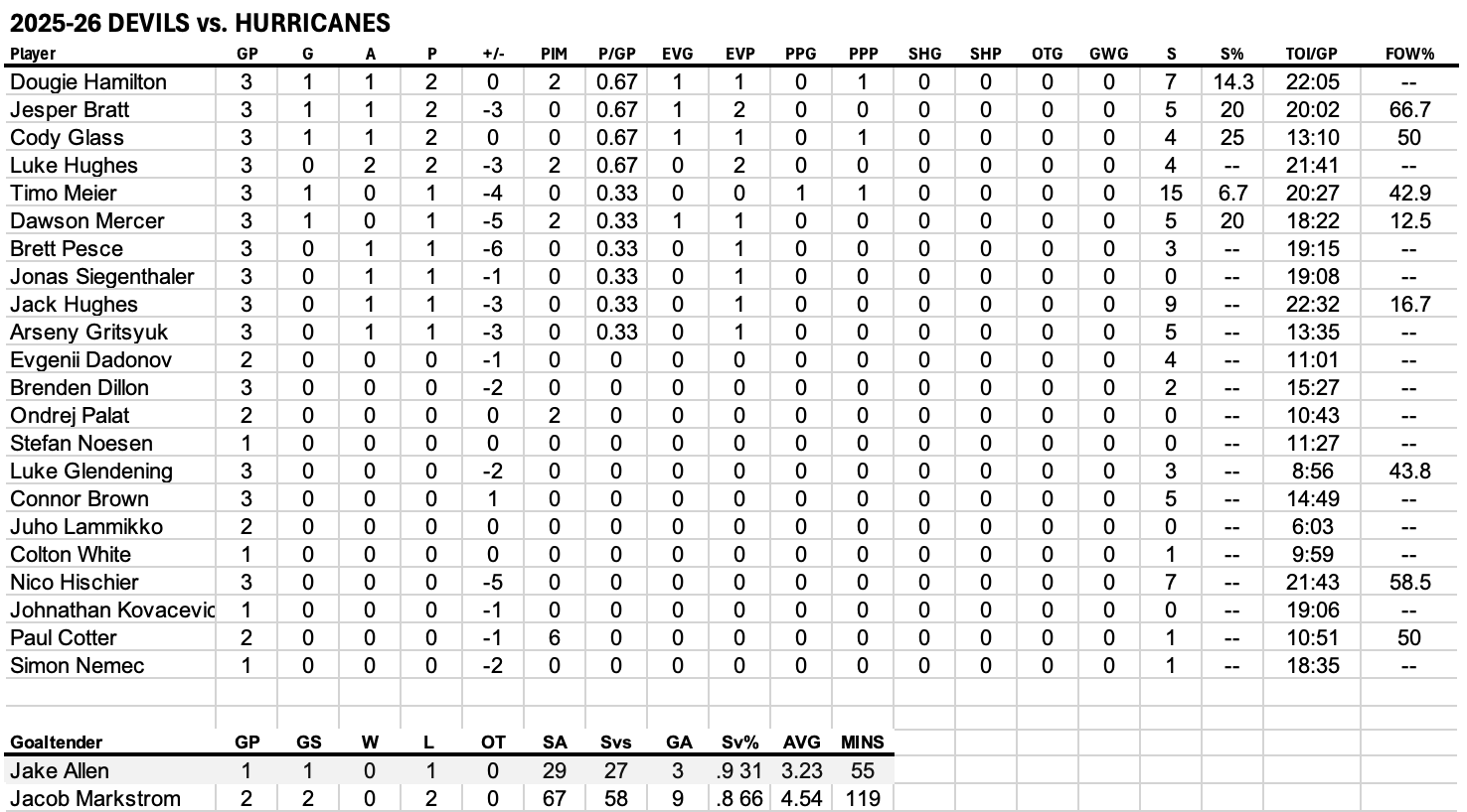 Media Game Notes: Devils at Hurricanes