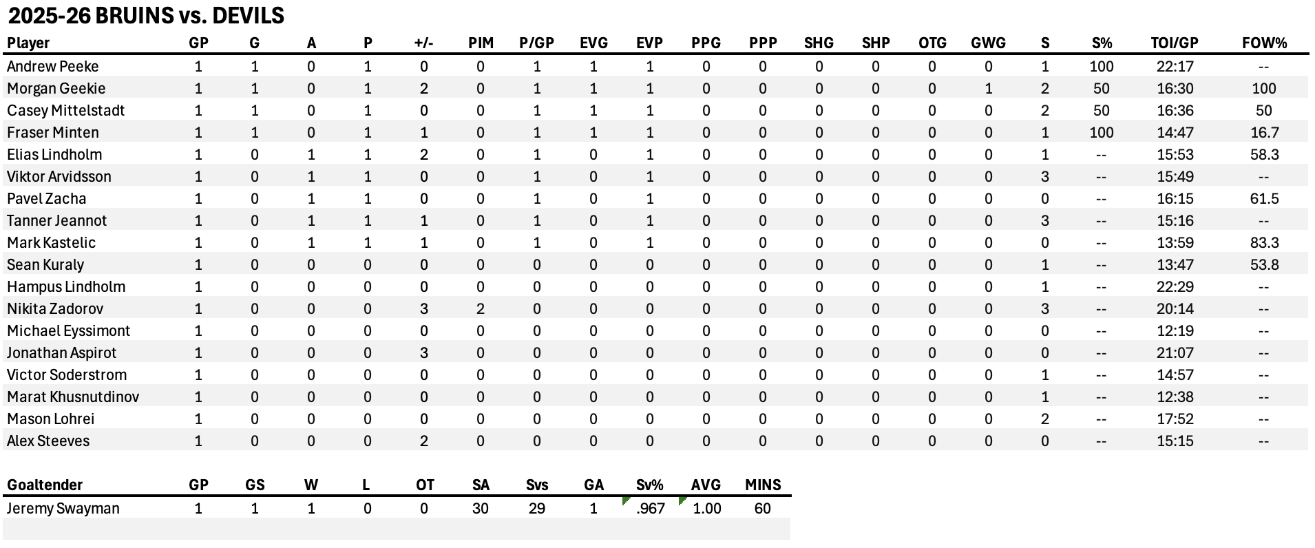 Media Game Notes: Devils vs Bruins