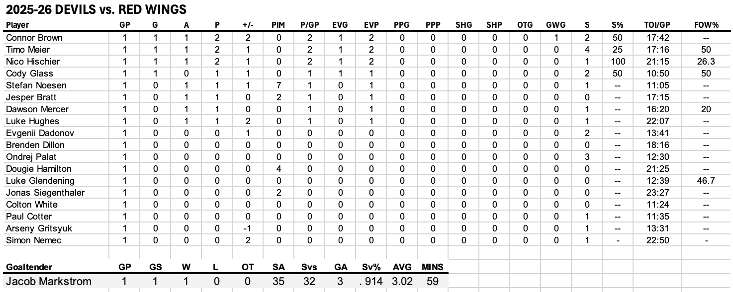 Media Game Notes: Devils vs Red Wings