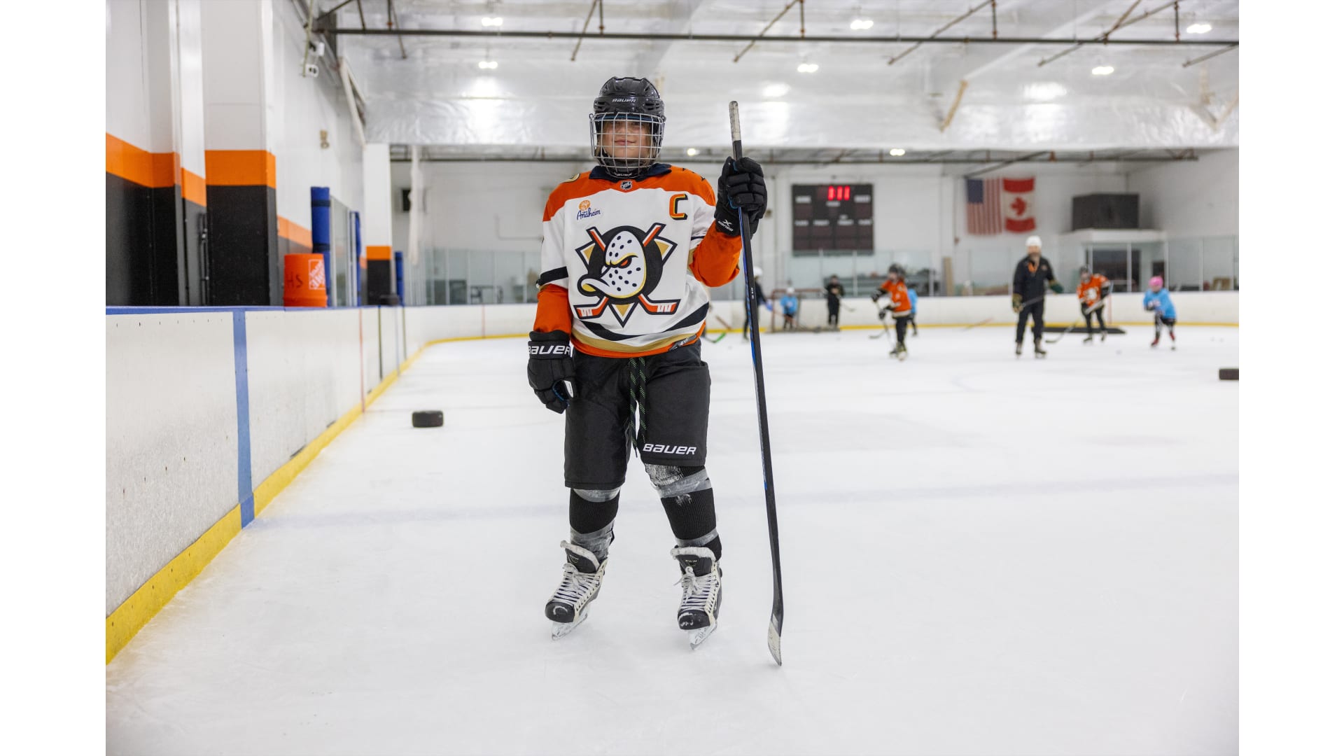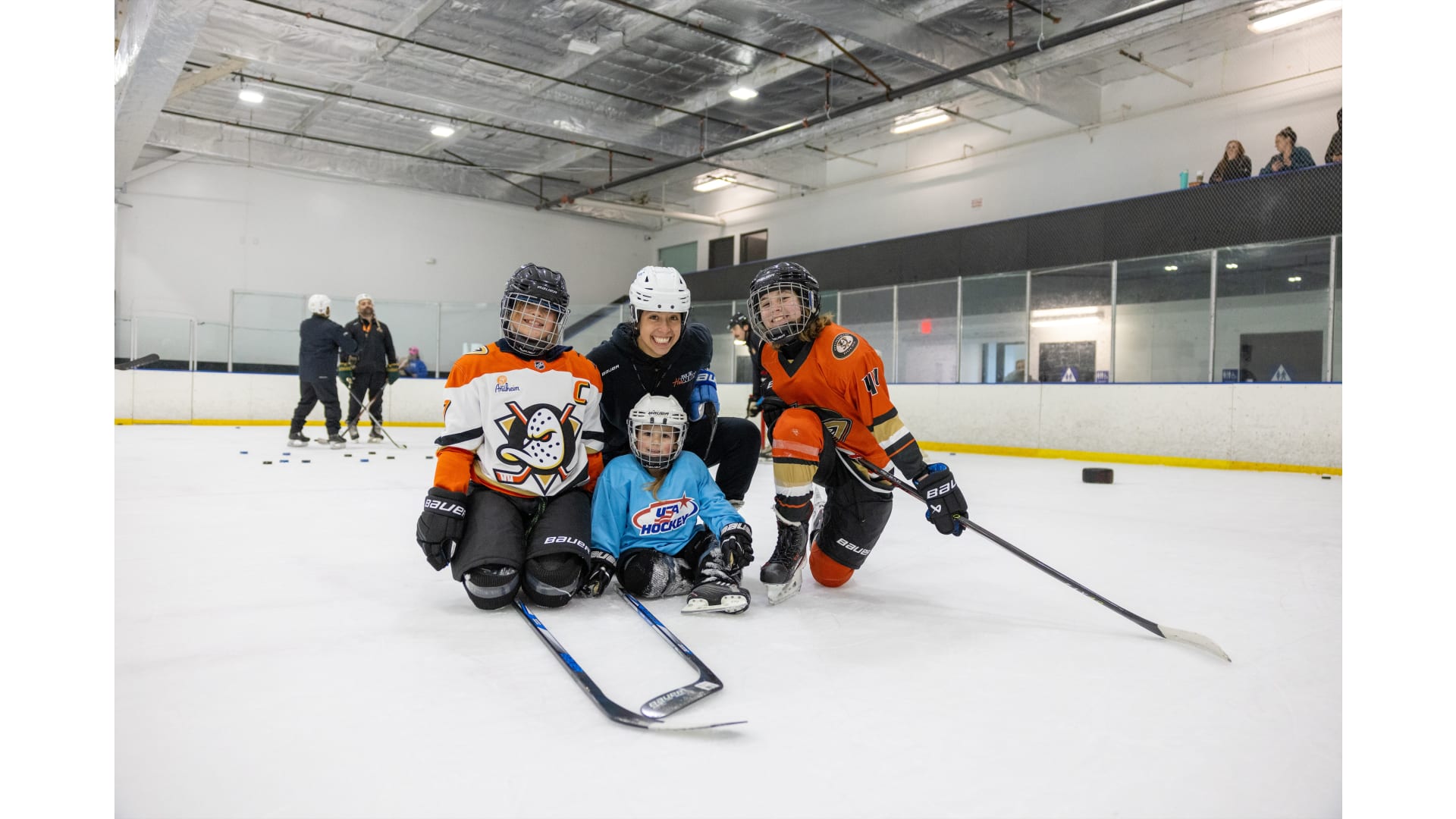 Sunday’s ceremony concluded a full weekend of activities hosted by the Ducks, which included a Women’s Beginner Hockey Camp (coached by Bellamy and Kennedy) and Try Hockey for Free events.