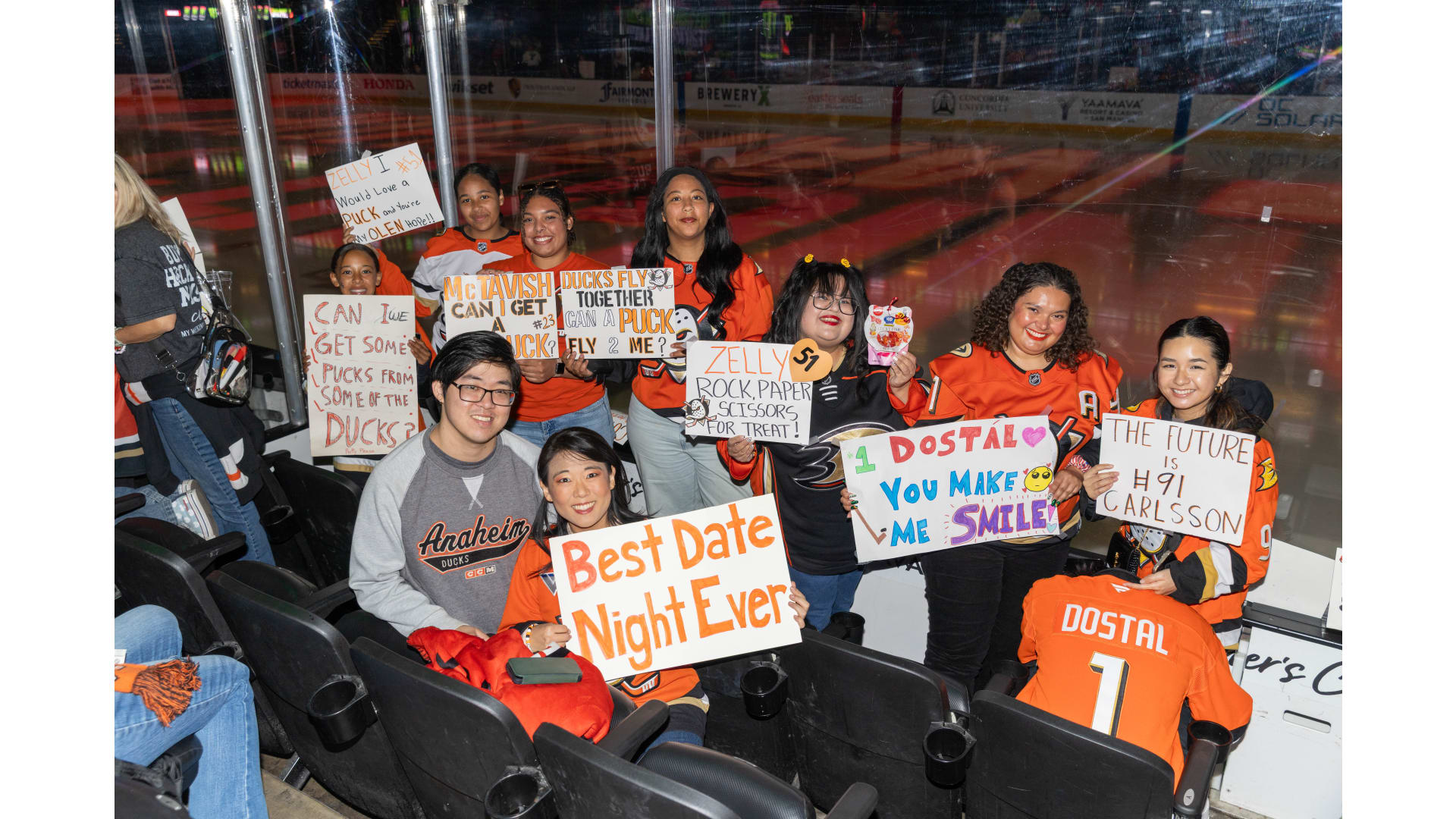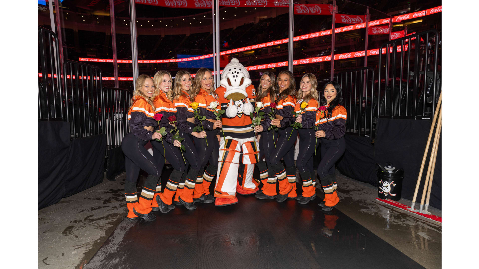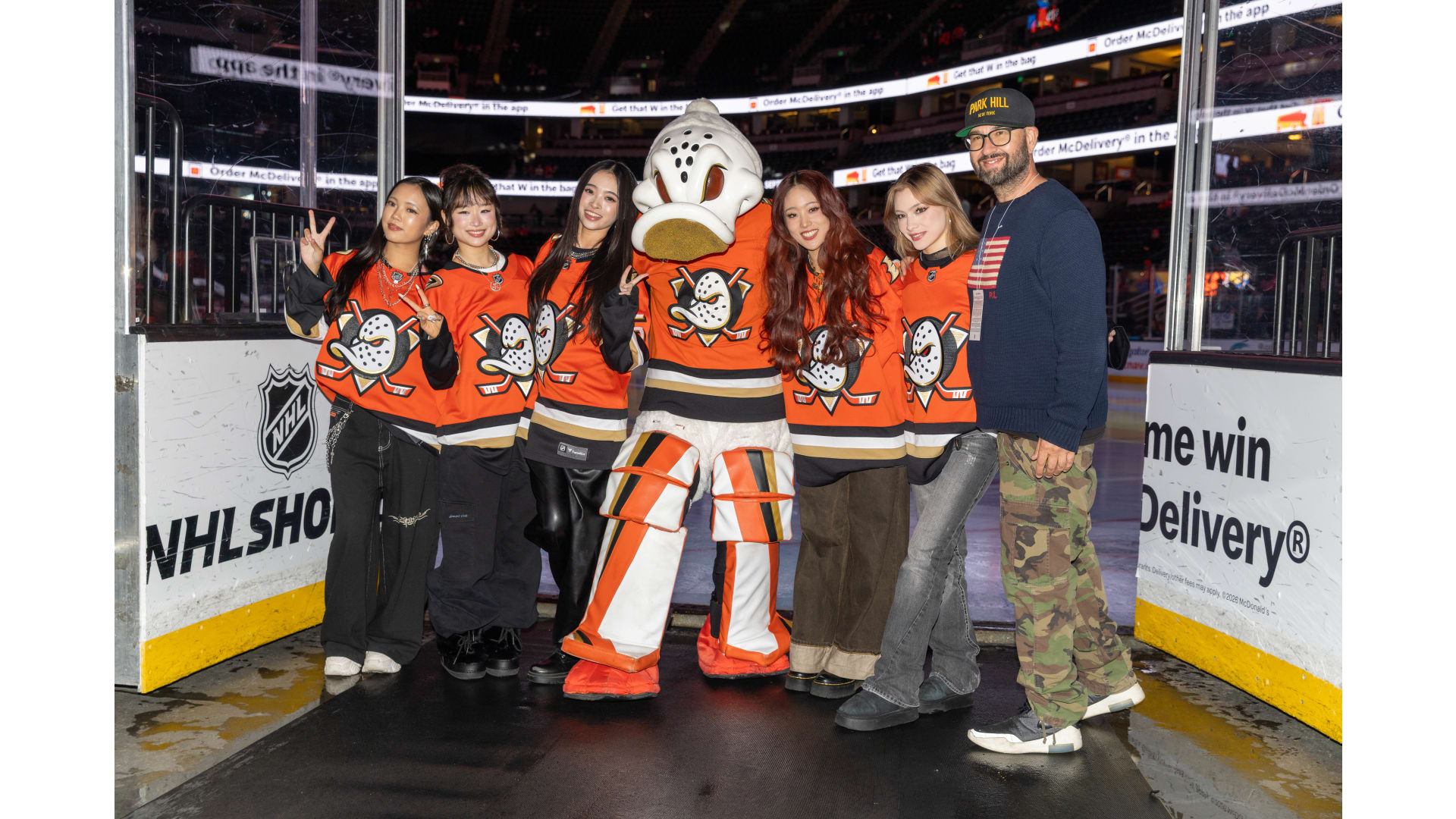 Olympic gold medalist Kacey Bellamy, NHL executive Kim Davis, two-time Olympian and current coach of the U.S. Under-18 Women’s National Team Courtney Kennedy and “Mighty Ducks” actress Marguerite Moreau all joined together at center ice for the ceremonial face-off.