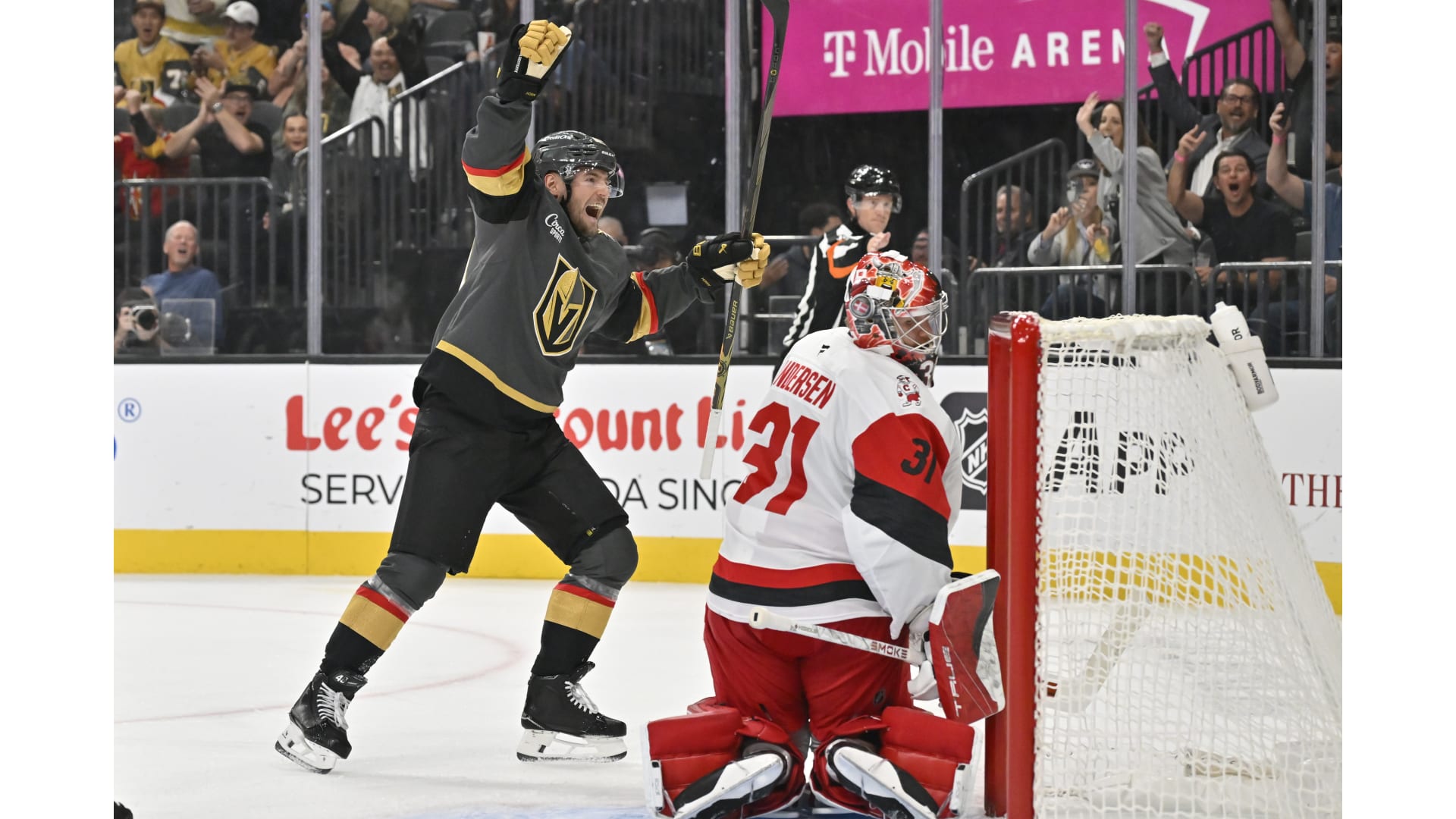 Los Vegas Golden Knights se enfrentaron a los Carolina Hurricanes el 20 de octubre de 2025 en el T-Mobile Arena. Los Golden Knights vencieron a los Hurricanes con un marcador final de 4-1.