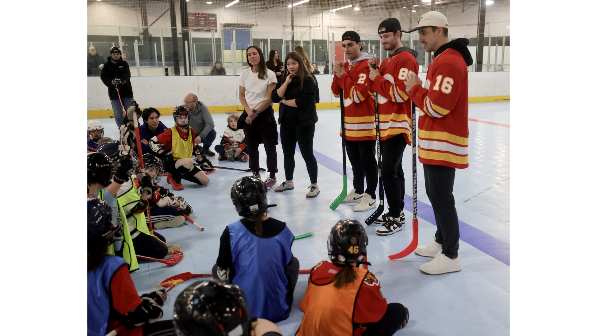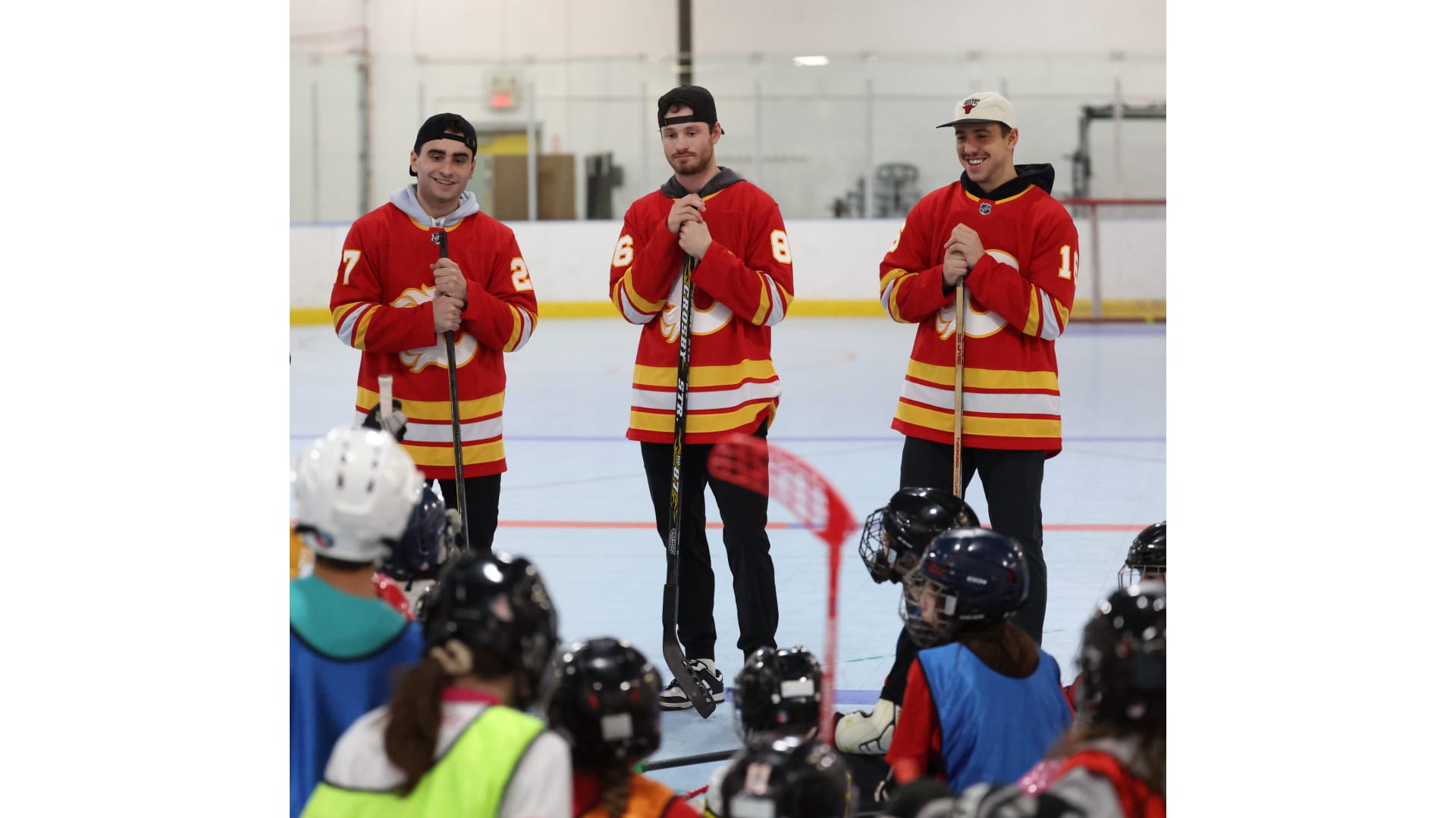 Earlier this month, Flames players MattĀ Coronato, Morgan Frost, and Joel Farabee stopped by a Kids Cancer Care floor hockey practice!