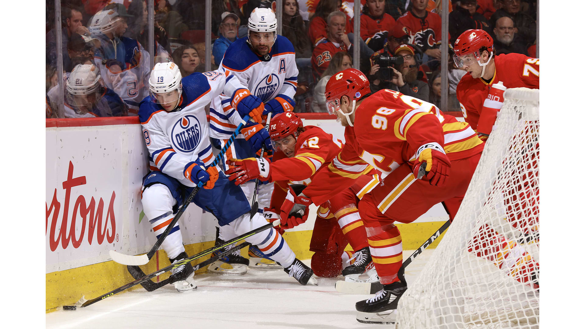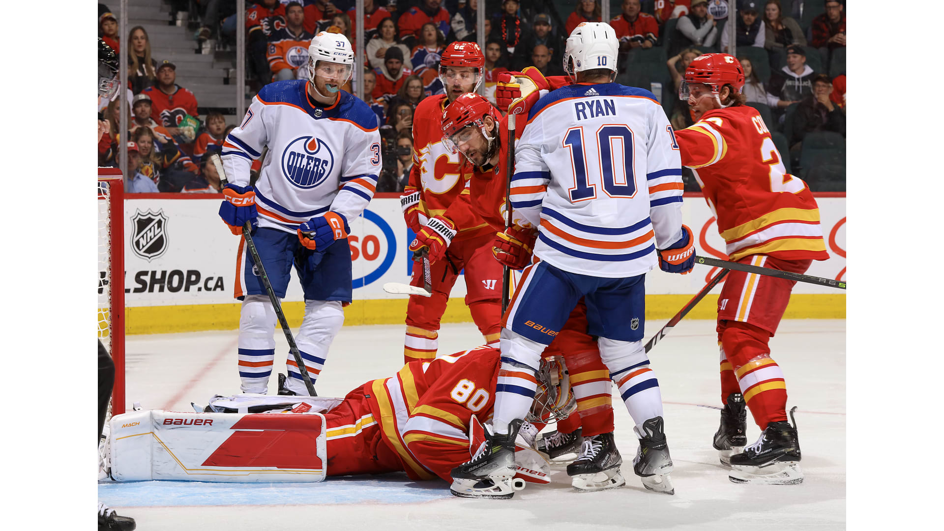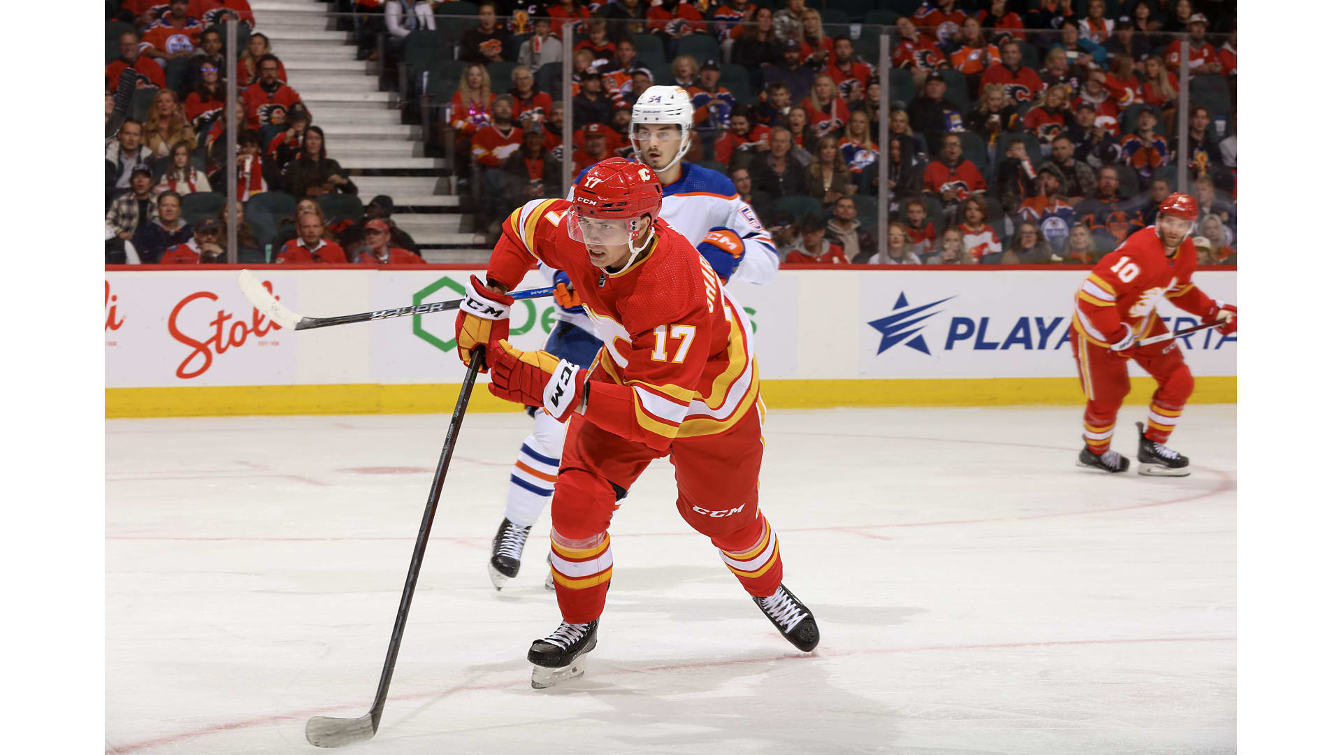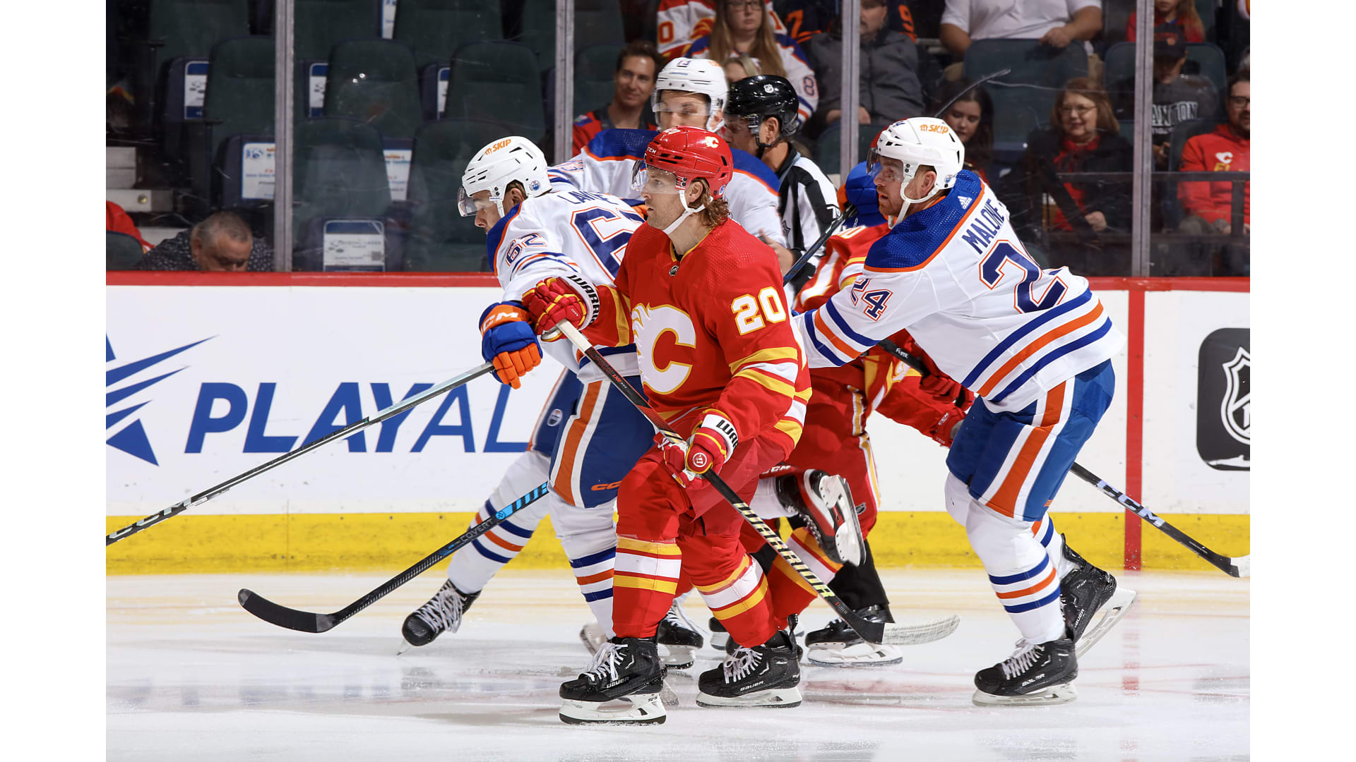 Calgary went a man down after losing the challenge and youngster Dylan Holloway knotted it up with 1:40 to go.