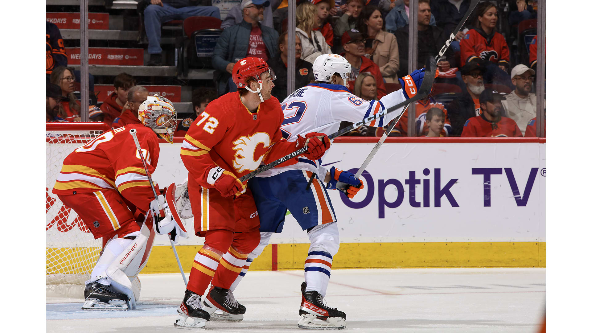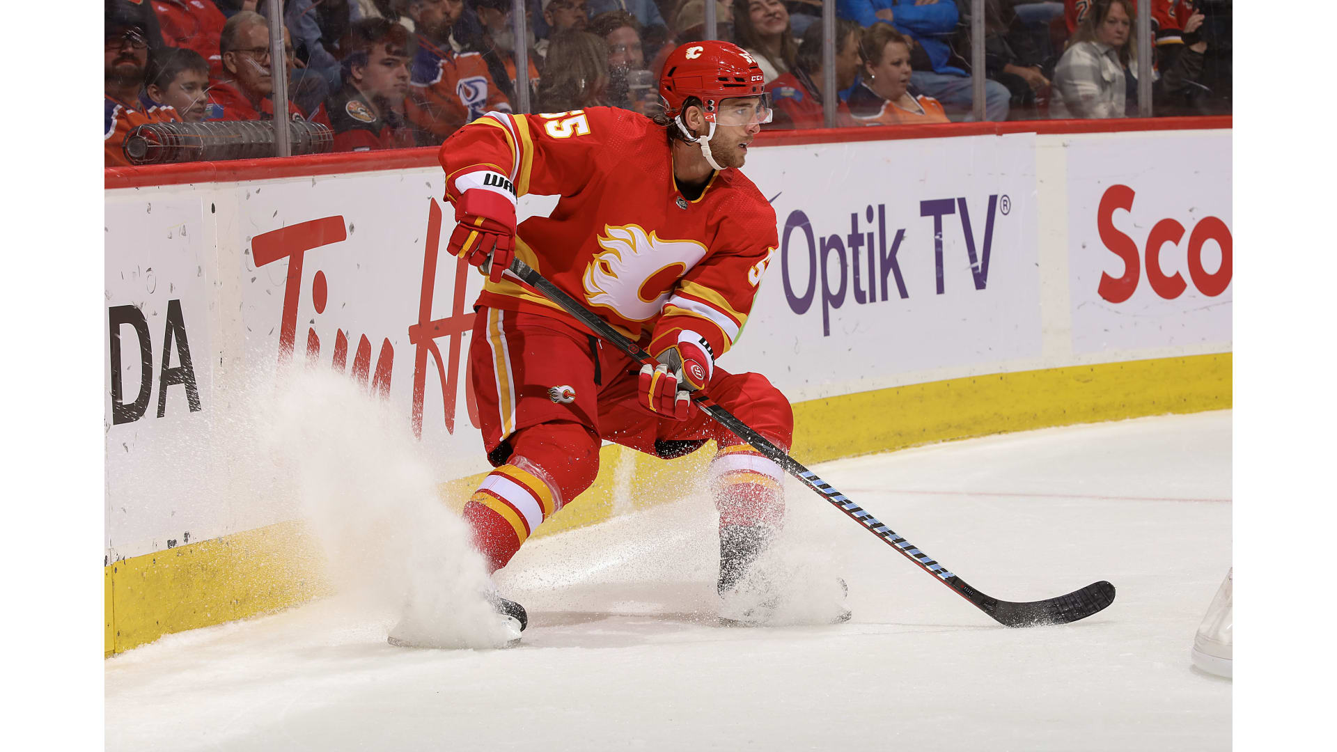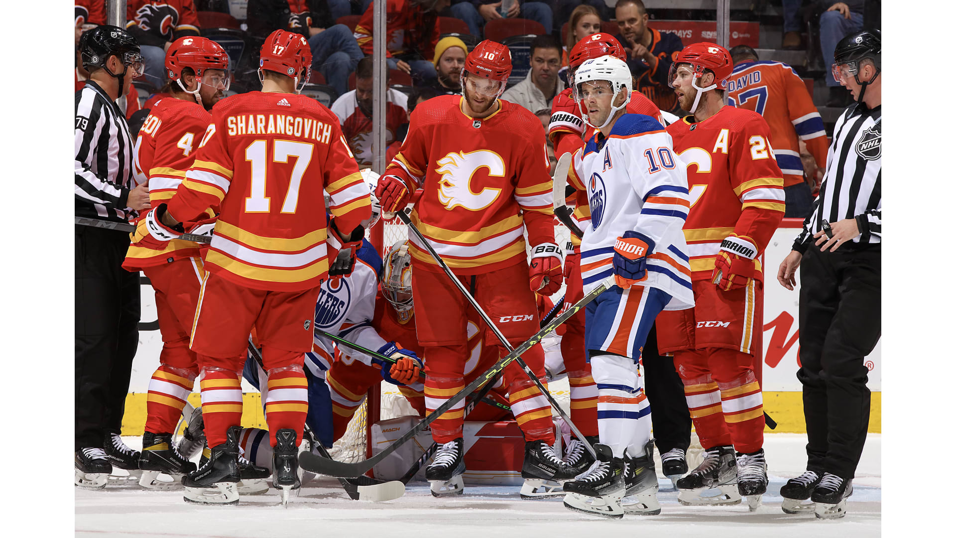Then during the final ticks of the frame, Backlund got a backhand on net and the puck went to Jordan Oesterle, who got a shot and then newcomer Yegor Sharangovich looked to score the winner with .1 of a second left but on second look, the puck had not crossed the line before time expired forcing the OT frame.