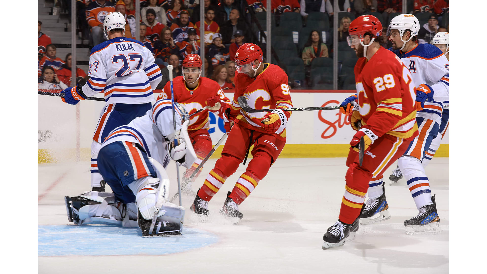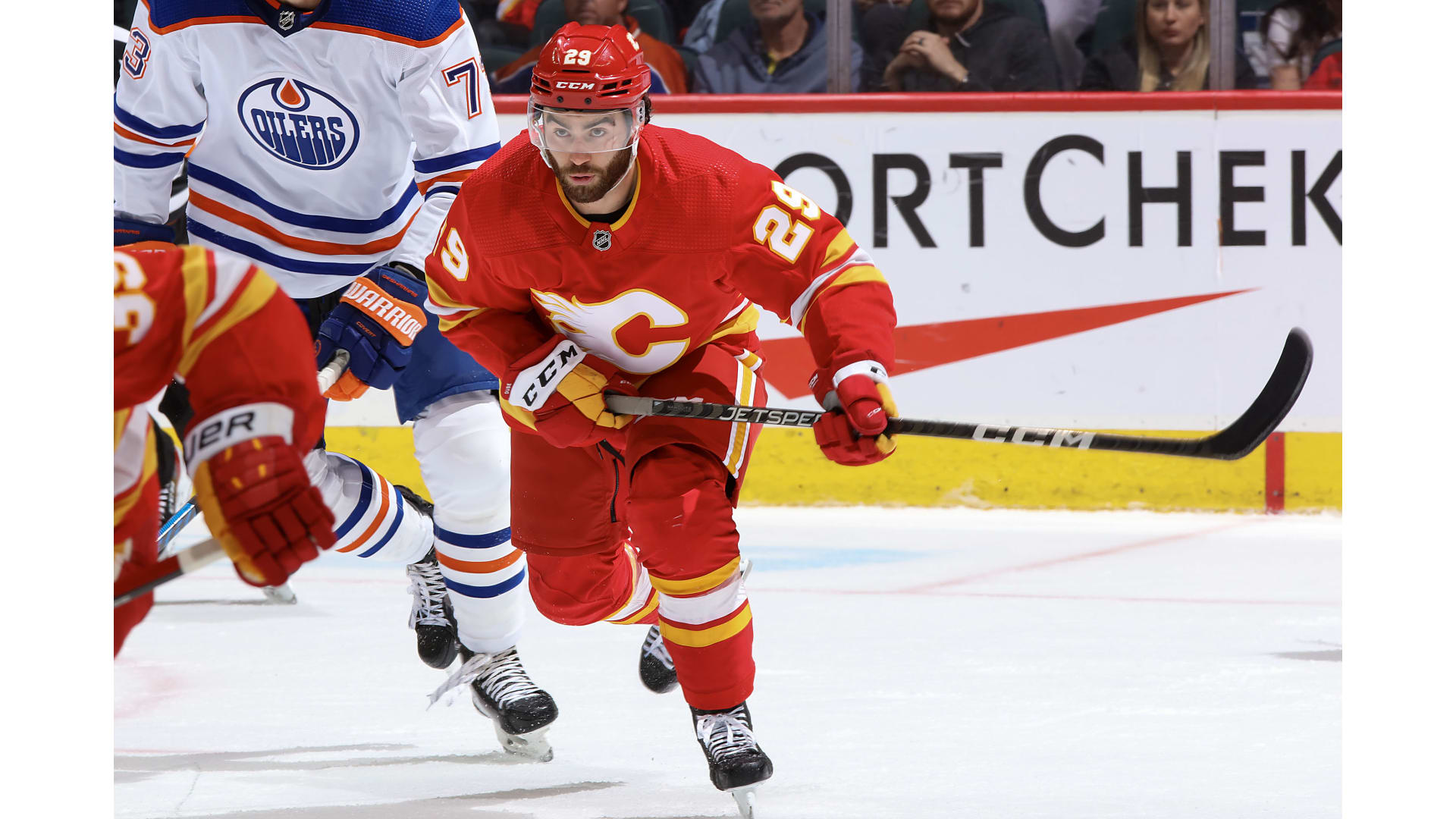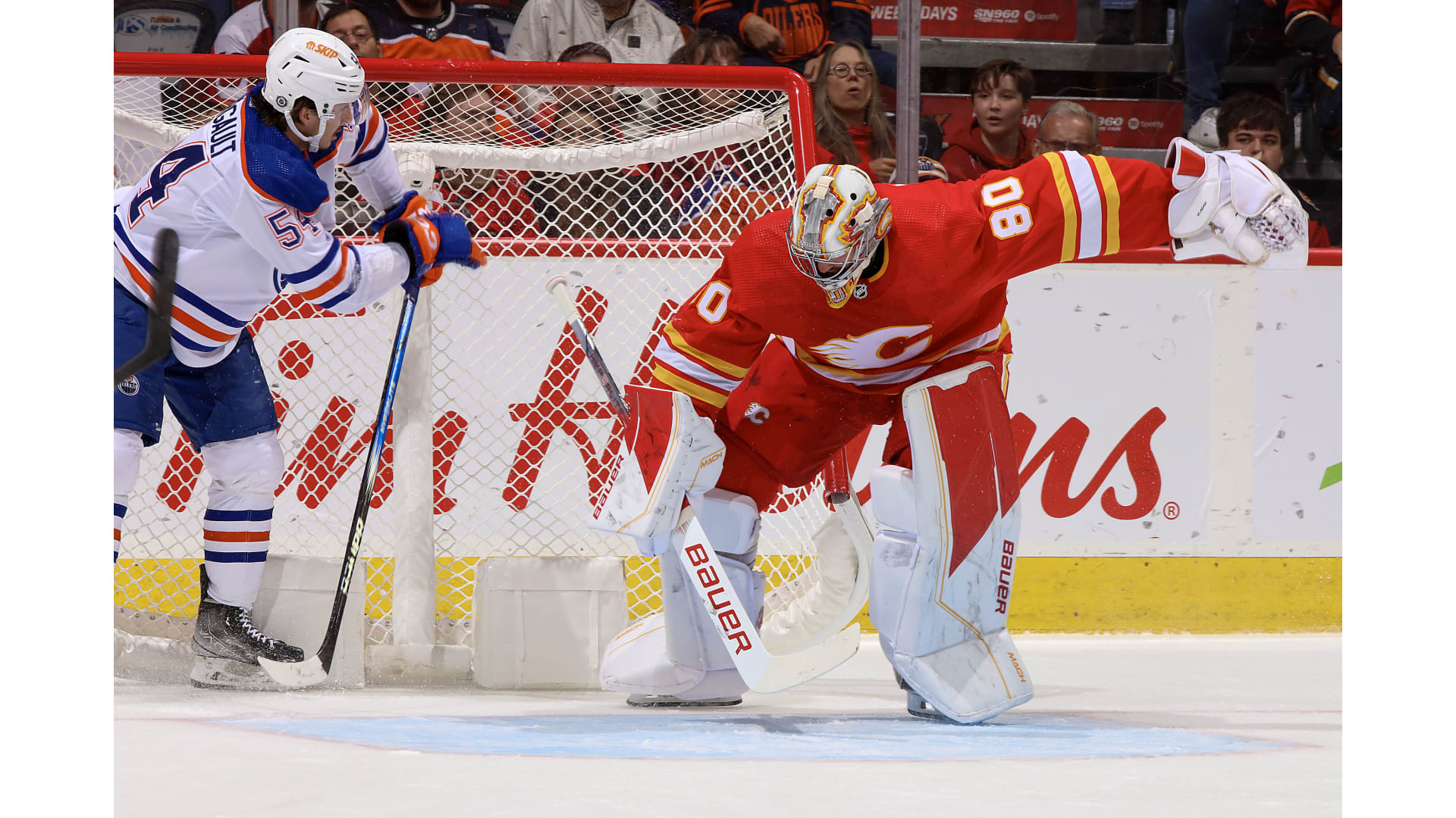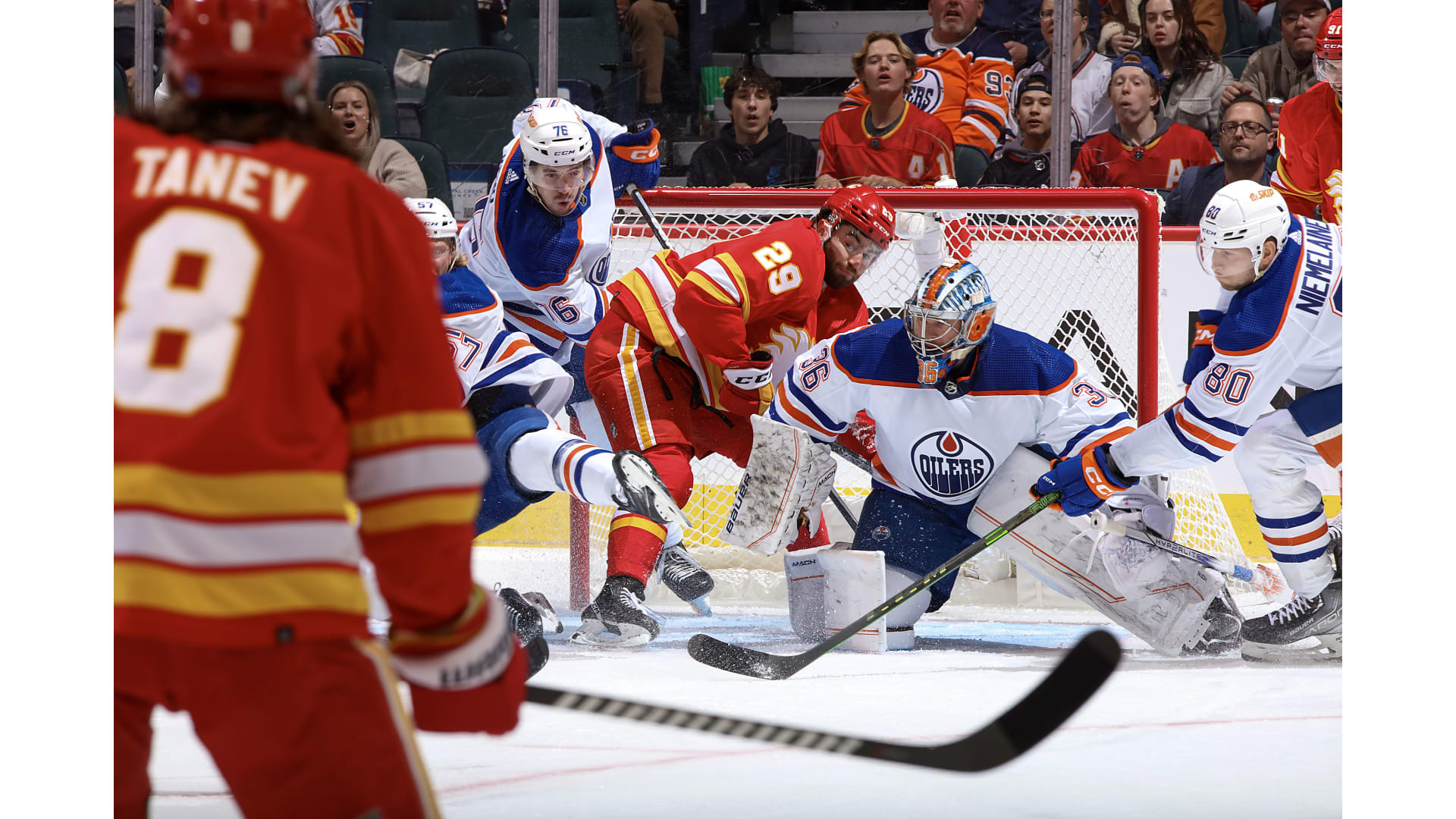 Then during the final ticks of the frame, Backlund got a backhand on net and the puck went to Jordan Oesterle, who got a shot and then newcomer Yegor Sharangovich looked to score the winner with .1 of a second left but on second look, the puck had not crossed the line before time expired forcing the OT frame.