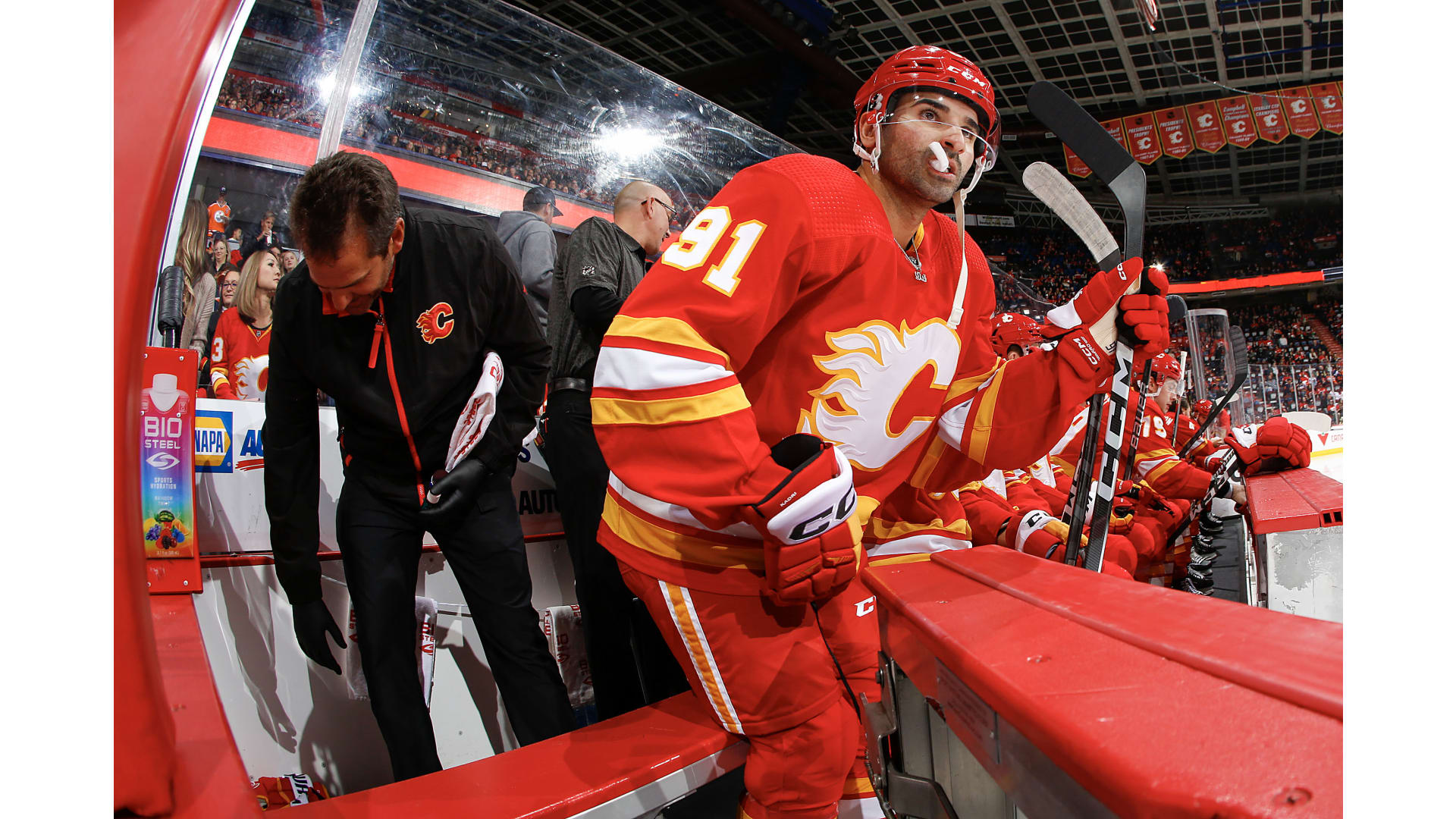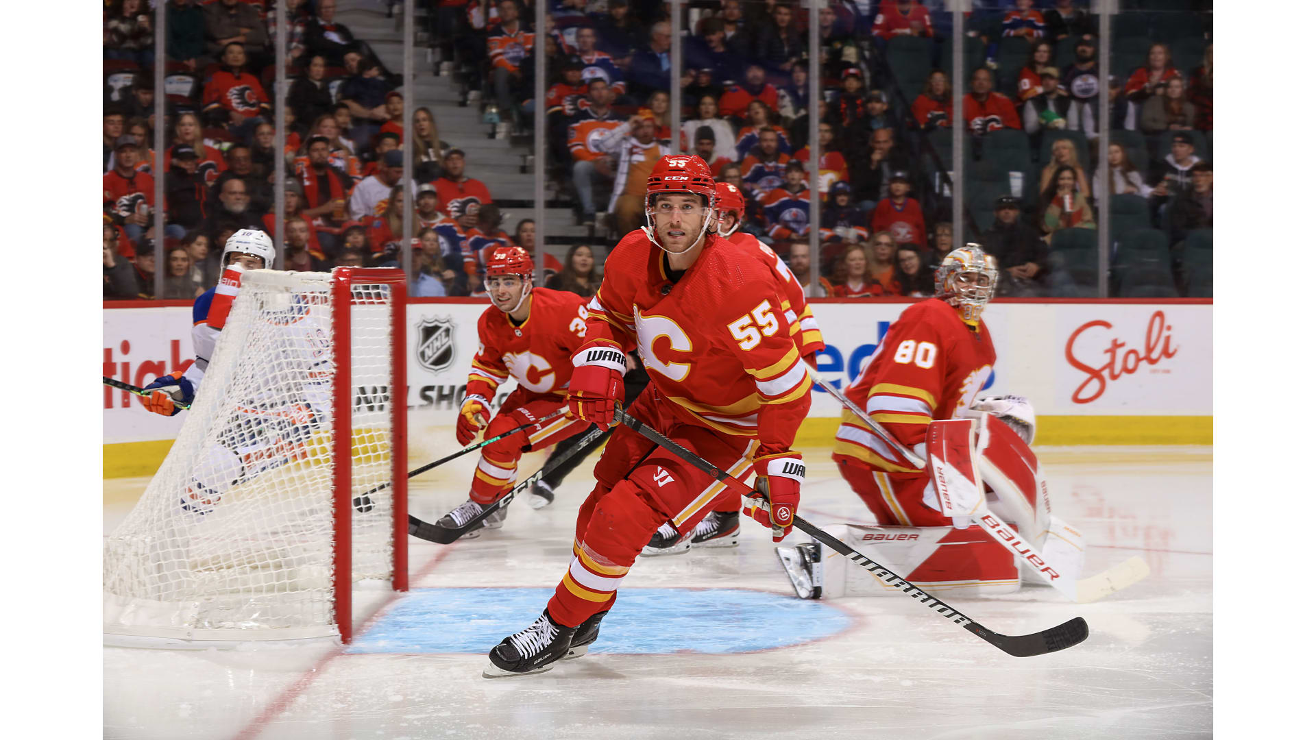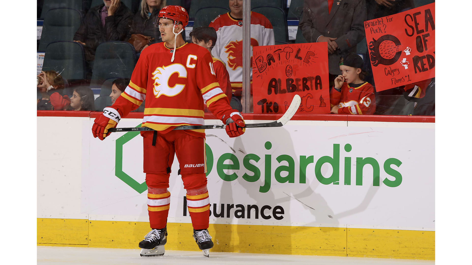 The game marked the debut of Mikael Backlund wearing the 'C' after signing a new two-year deal Wednesday and being named the franchise's 21st captain.
