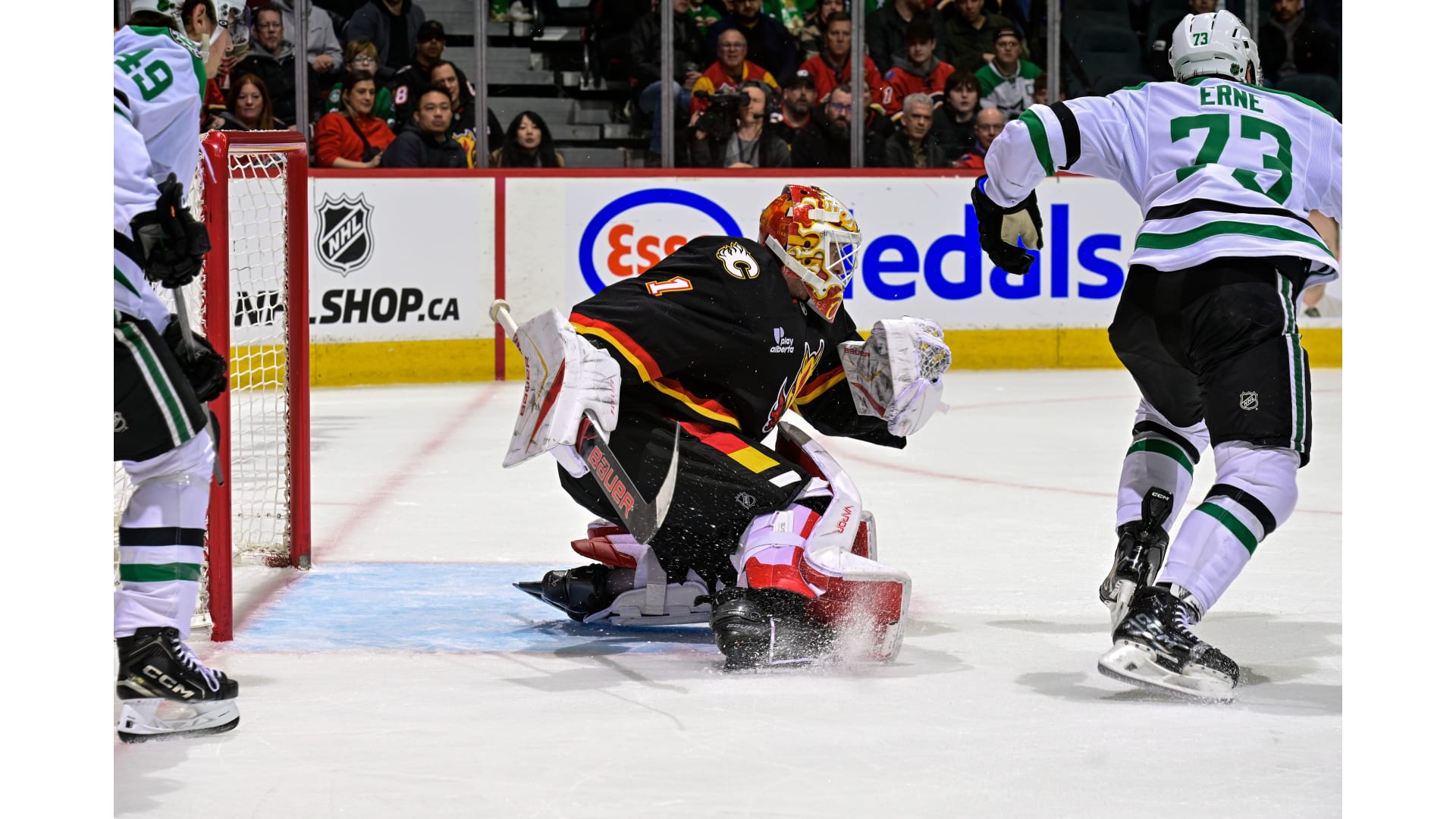 Sam Steel scored twice, while Matt Duchene finished the evening with four assists as the Dallas Stars dealt the Flames a 6-1 defeat Tuesday at the Scotiabank Saddledome.