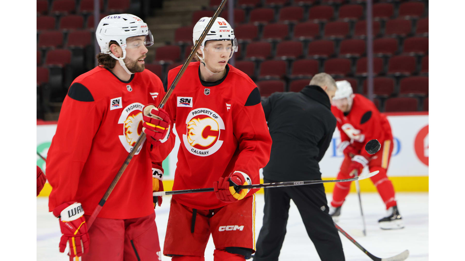 Morgan Frost and Joel Farabee found themselves back on the same line during Tuesday's third period in Columbus, and the duo were back together again at Thursday morning's skate on a line with Jonathan Huberdeau.