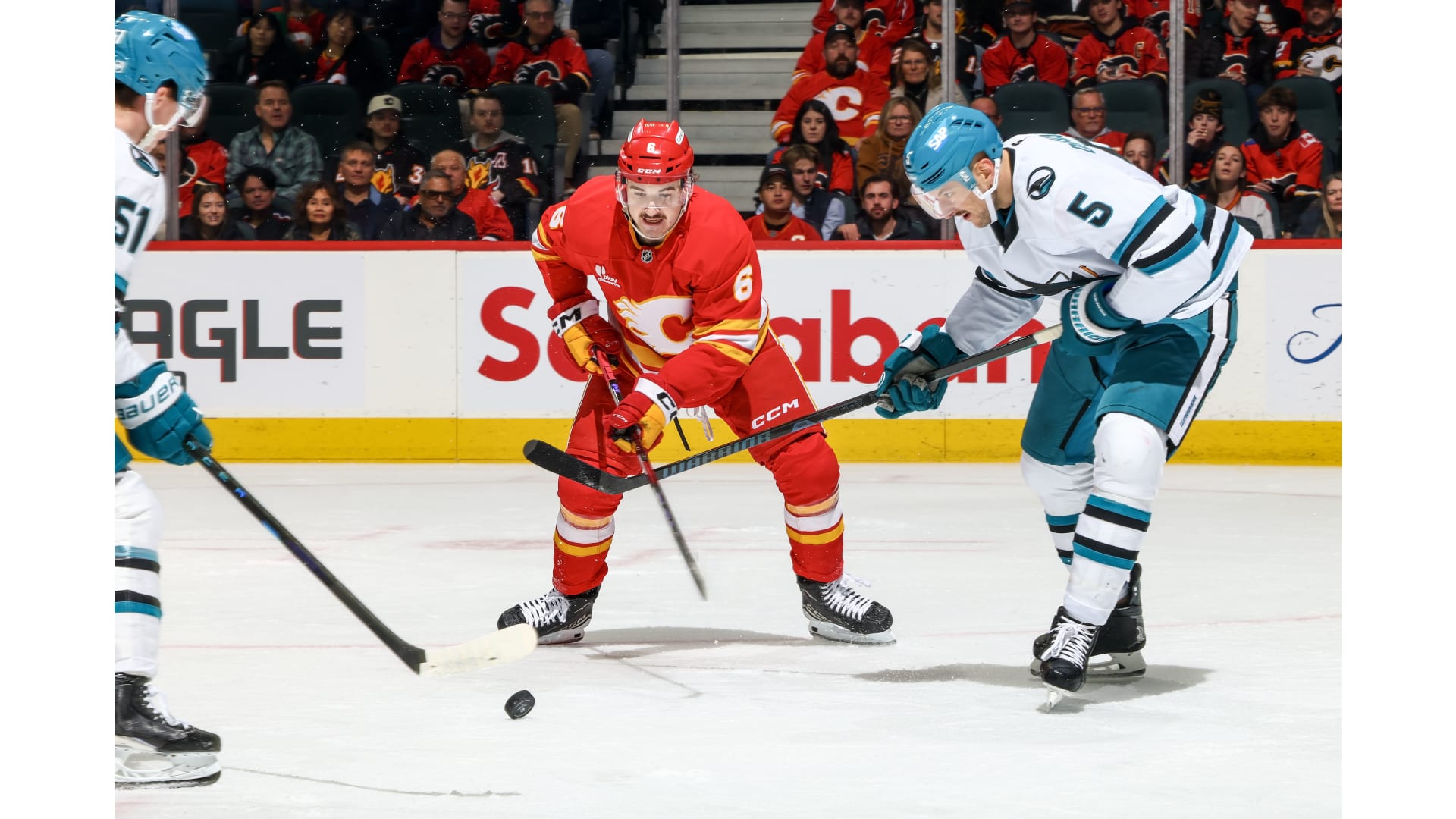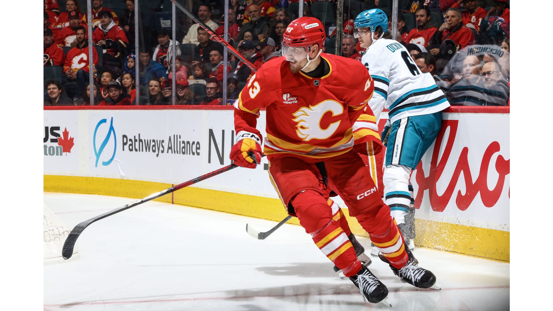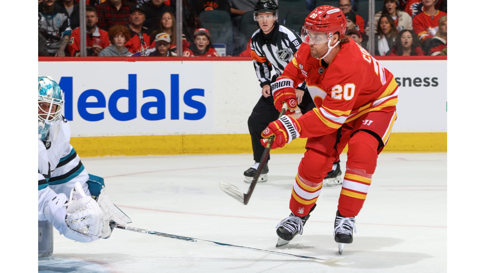 Sam Honzek also scored for Calgary, while Mikael Backlund chipped in with an assist as the Flames outshot the Sharks 36-16 on the night.
