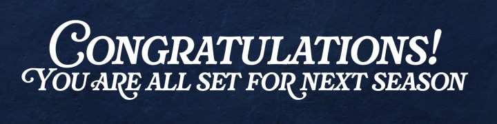 On March 20, 2026, your card on file will be charged a one-time payment for the 2026-27 season.